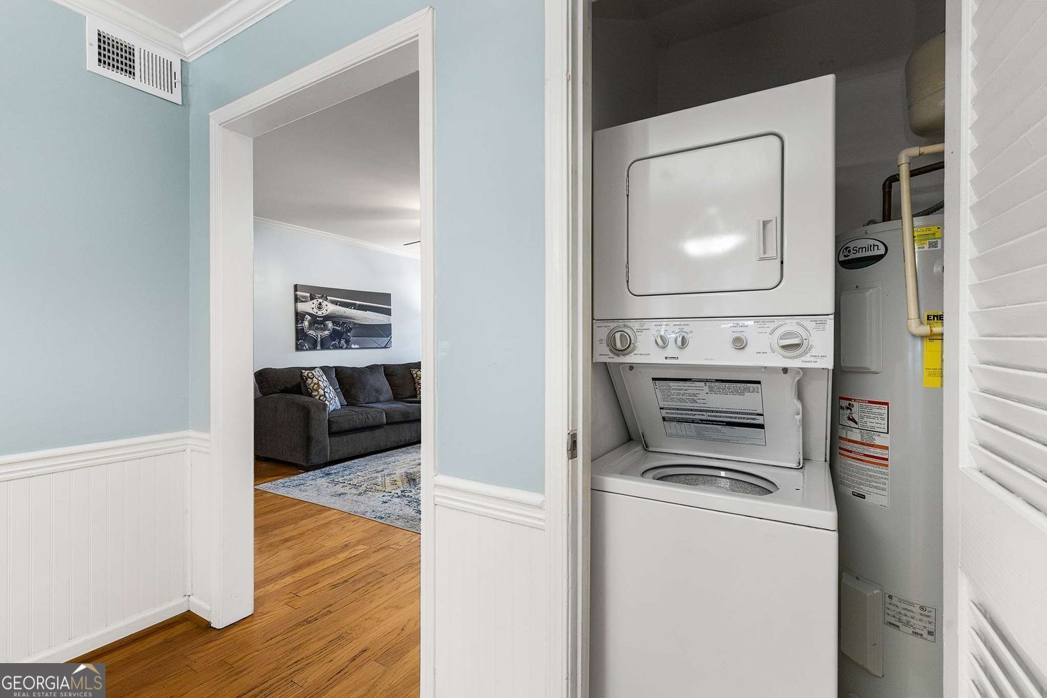 Welcome to Carlyle Square in vibrant West Midtown! This spacious and well-maintained 2 bedroom, 2 bathroom condo offers the ease of one-level living in a gated community with top-notch amenities. Inside, you'll find beautiful hardwood floors throughout, granite countertops, updated bathrooms, and a brand-new dishwasher and stove. The generous primary suite features a large walk-in closet, providing ample storage. A separate laundry closet includes a convenient stacking washer and dryer. Step outside to your oversized screened-in porch-perfect for relaxing or entertaining-with direct, step-less access to the back parking lot. Enjoy access to the community pool and fitness center, all within the secure surroundings of this gated enclave. Walk to local favorites including DAS BBQ, Krave, Patrick's Sub Shop, and Pera Bistro. Just minutes from Howell Mill Village, shopping, and all the excitement of West Midtown. This condo blends comfort, convenience, and location in one of Atlanta's most desirable neighborhoods.