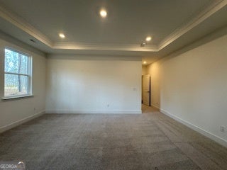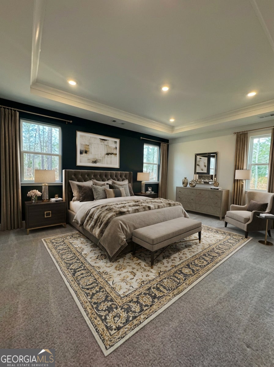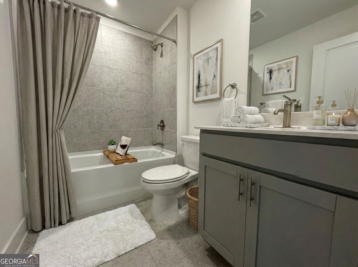 A rare opportunity to own a former model home on a large corner lot in Twelve Parks, a sought-after master-planned community in Sharpsburg, GA. The open-concept main level features a spacious kitchen, great room, and dining area that seamlessly connect and lead to a covered patio, perfect for outdoor enjoyment. Luxury vinyl plank flooring flows throughout the main living areas. Just off the foyer is a private study with French doors, ideal for a home office or flex space. The main level also includes a guest bedroom. The chef's kitchen boasts gray cabinetry, a white tile backsplash, quartz countertops, and stainless-steel appliances. A convenient mud bench with cubbies is located at the garage entry, providing an organized drop zone. The primary suite is privately located on the main level and features a tray ceiling, LED disc lighting, and a luxurious ensuite bath with a tiled shower and bench, dual quartz vanities, and a spacious walk-in closet with direct access to the enlarged tiled laundry room. The upper level offers a flex space and a secondary bedroom with a full bath, ideal for guests or additional living space. Community amenities include a resort-style pool, clubhouse, tennis courts, and pickleball courts. Conveniently located near downtown Peachtree City.