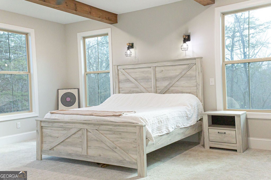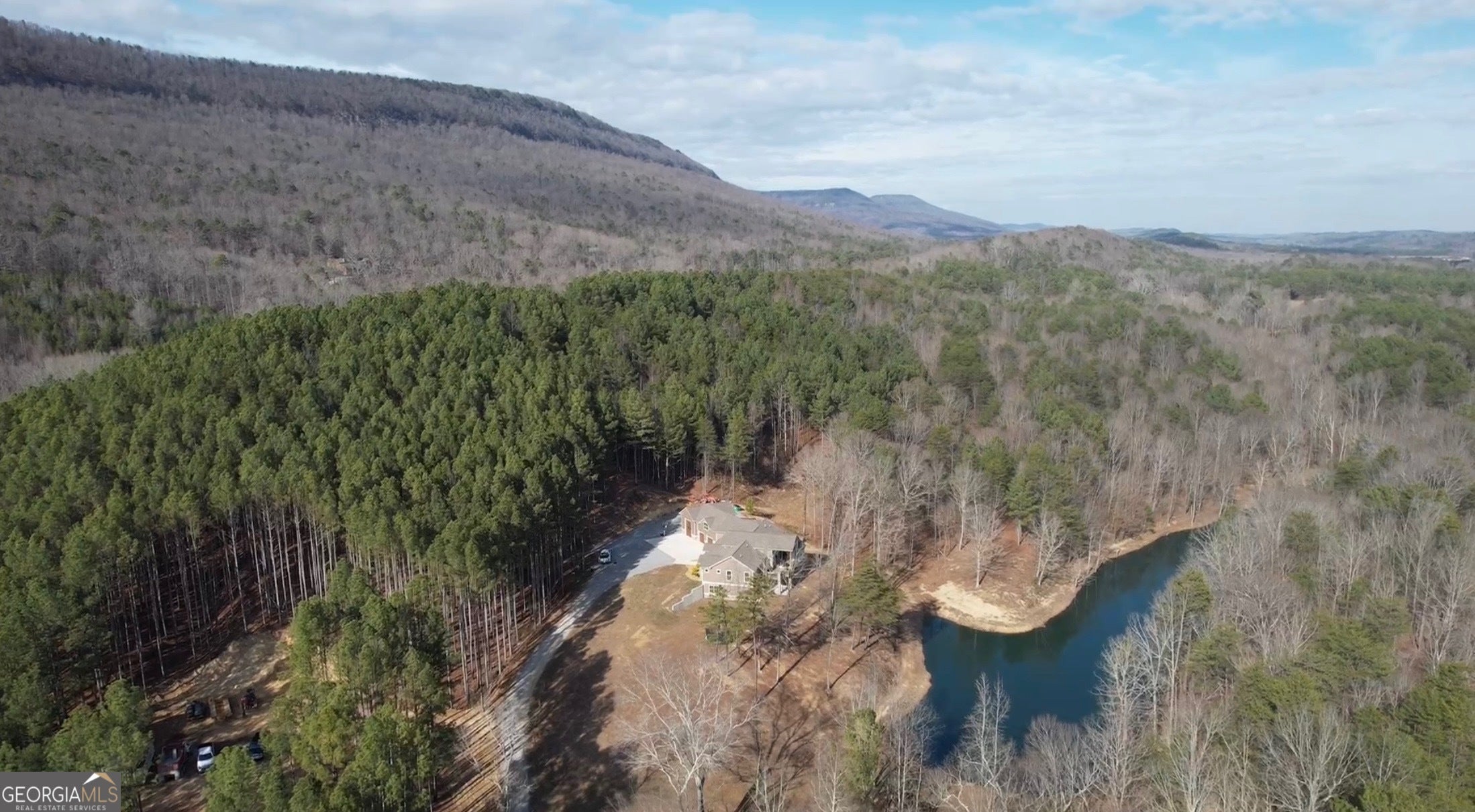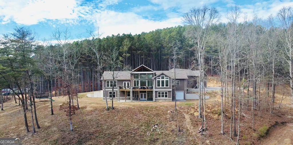 Nestled on nearly 22 acres of ultimate privacy in the North Georgia mountains, this stunning custom-built home offers the perfect blend of craftsmanship, comfort, and scenic beauty. Built in 2021, this 5-bedroom residence features durable vinyl siding and stone accents with an architectural shingle roof and thoughtful upgrades throughout. Inside, you'll find LVP and tile flooring in the main living areas, vaulted ceilings with decorative beams, and a striking gas fireplace with a stone chimney anchoring the living room. Large picture windows in both the kitchen and living room flood the home with natural light and provide peaceful views of the private lake. The custom kitchen is designed for both everyday living and entertaining, offering ample cabinet space, granite countertops, a large pantry, and stainless built-in appliances. The spacious master bedroom is conveniently located on the main level, while an additional main-level office provides the perfect work-from-home setup. With laundry rooms on both floors, a central vacuum system, tankless water heater, and a functional layout, this home is as practical as it is beautiful. The 3-bay garage has ample space for all your vehicles, with an oversized, drive-through bay for parking a camper, or tractor truck. Step outside to enjoy the deck and patio overlooking the serene lake-an ideal setting for fishing, kayaking, relaxing, entertaining, or simply taking in the quiet surroundings. This exceptional property delivers modern comfort, quality construction, and unmatched privacy in a truly picturesque setting. All information deemed accurate but not warranted.