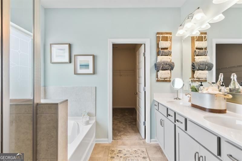 Move in June! The Coleman plan at Glen at Cave Springs in Douglasville by Smith Douglas Homes. Welcome to the newest Smith Douglas community! This thoughtfully designed 4-bedroom, 2.5-bath home blends modern style with functional living spaces, making it ideal for today's lifestyles. A wide, welcoming foyer greets guests and opens to a private study/home office, perfect for remote work or quiet relaxation. The foyer flows seamlessly into a spacious open-concept living, dining, and kitchen area, designed for entertaining and everyday living. The gourmet eat-in kitchen features granite countertops, a tile backsplash, upgraded 42-inch cabinetry with crown molding, a large center island, and stainless steel appliances. Adjacent to the kitchen, the family room offers a stylish linear fireplace, creating a warm and inviting gathering space. Enjoy outdoor living on the large 10' x 20' patio, ideal for grilling, relaxing, or hosting guests. The main level is finished with durable and stylish Luxury Vinyl Plank flooring, and both floors feature 9-foot ceilings, adding to the home's open and airy feel. An open iron staircase leads upstairs to the impressive primary suite, complete with a tray ceiling and a spa-inspired bath featuring marble countertops and a large tiled shower. Three additional generously sized bedrooms, a shared hall bath, and a convenient second-floor laundry room complete the upper level. Large closets throughout the home provide exceptional storage. Residents of Glen at Cave Springs will enjoy planned community amenities, including a pool, poolhouse, walking trails, and more. Photos are representative of the plan and not the actual home. Seller incentives available with use of preferred lender. Don't miss this opportunity to own a brand-new home in one of Douglasville's newest communities-schedule your showing today!