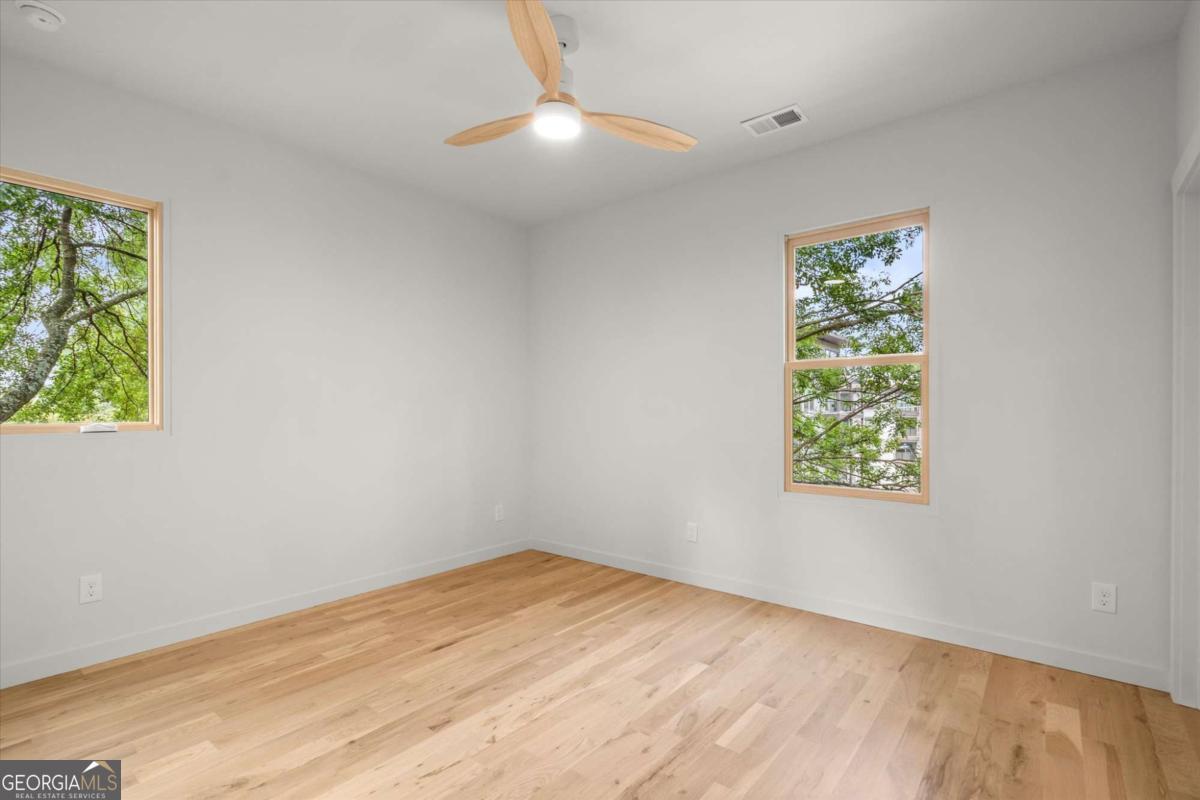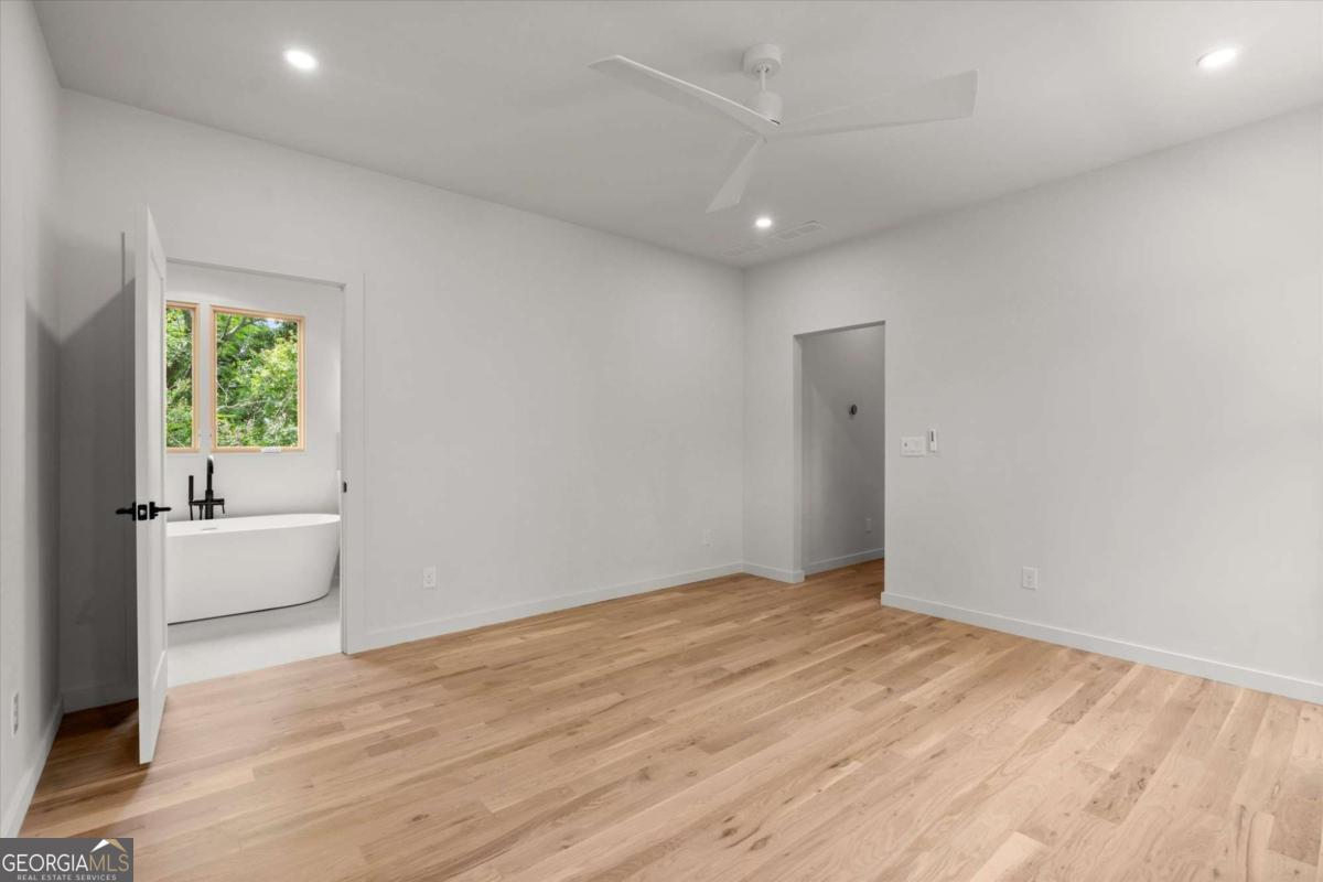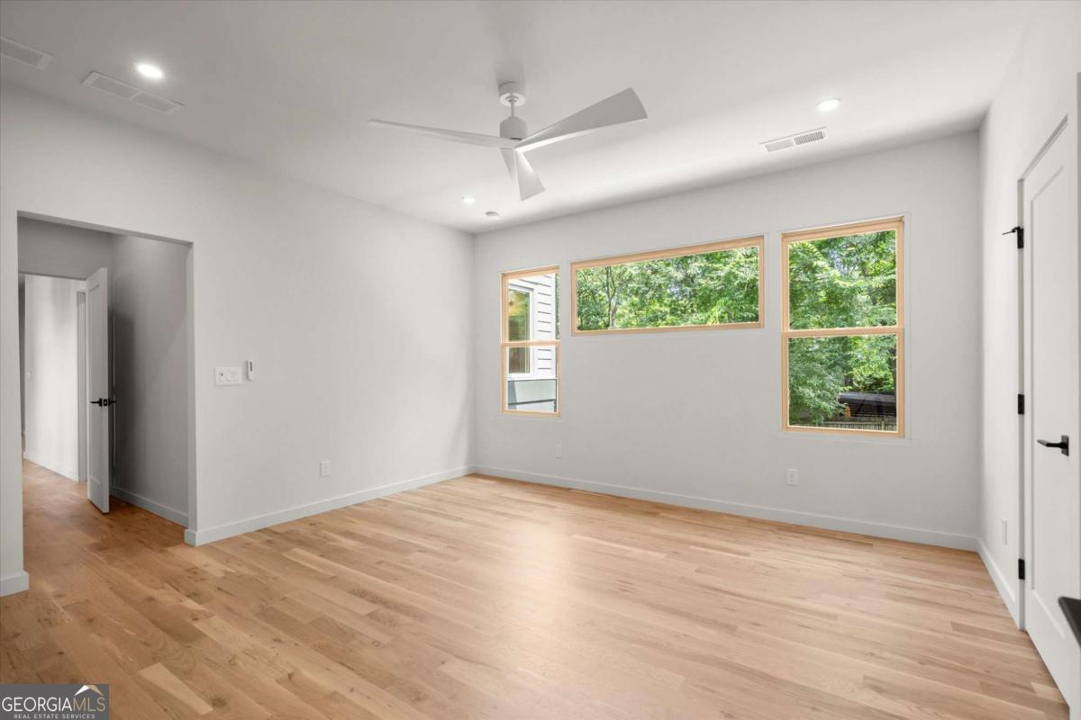 Scandinavian inspired Belt-Line adjacent 5 Bedroom/4 Bath home with white oak floors throughout in Grant Park built by Grit City. EcoChef Certified Kitchen includes Thermador appliances including an induction range, fully custom cabinetry, cambria countertops and large island. The main floor has 10' Ceilings and 8' doors with a large fireplace, open living and dining areas, large walk-in pantry with wine cooler, drop zone, office/bedroom, full bath, covered front porch and fenced in front yard area. The upstairs includes a den, primary suite with two walk-in closets and tiled Primary bath with Large Shower, free-standing tub, two vanities and electronic toilet, 3 additional bedrooms - one ensuite and the other two with a jack-n-jill bath, and laundry room. The two-car garage is EV Car Charger ready. Storage area under the front porch and an encapsulated, climate-controlled crawlspace provides additional storage. This alley accessed home is two doors down from freshly paved Beltline entrance.