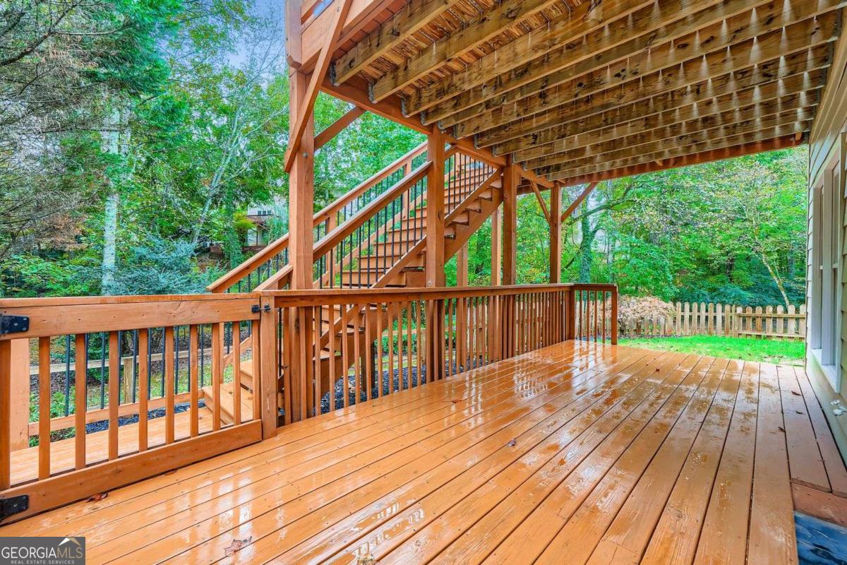 Abbotts Pond in Johns Creek offers a friendly neighborhood with swim and tennis amenities, and this beautifully updated home fits right in. Situated on a quiet cul-de-sac, it offers approximately 3,500 sq ft of bright, open living with 5 bedrooms and 3.5 baths. Hardwood floors flow through much of the main level, leading to a spacious great room with a dramatic stacked-stone fireplace. The renovated kitchen features premium appliances, modern fixtures, and a large island with seating, opening to a sunny breakfast area and flexible dining/family space. Upstairs, the primary suite provides a peaceful retreat with dual vanities, soaking tub, and separate shower, while additional bedrooms adapt easily to offices, guest rooms, or hobby spaces. The finished terrace level includes a private entrance, bedroom, full bath, second fireplace, and built-in coffee bar-perfect for entertaining or work-from-home needs. Outside, a deck and lower patio overlook a fenced backyard and serene creek, offering privacy and a relaxing retreat. Close to shopping, dining, parks, This home is zoned for top-rated schools - Elementary: Abbotts Hill Elementary, Middle school: Taylor Road Middle, and High: Chattahoochee High School - making it an ideal choice for families., this home combines thoughtful updates, flexible spaces, and a private, welcoming setting. Schedule a tour today to see all it offers!