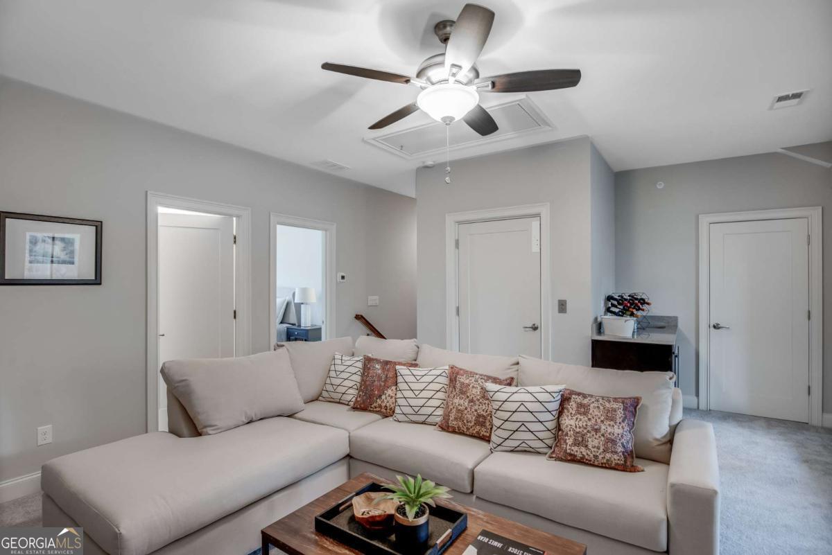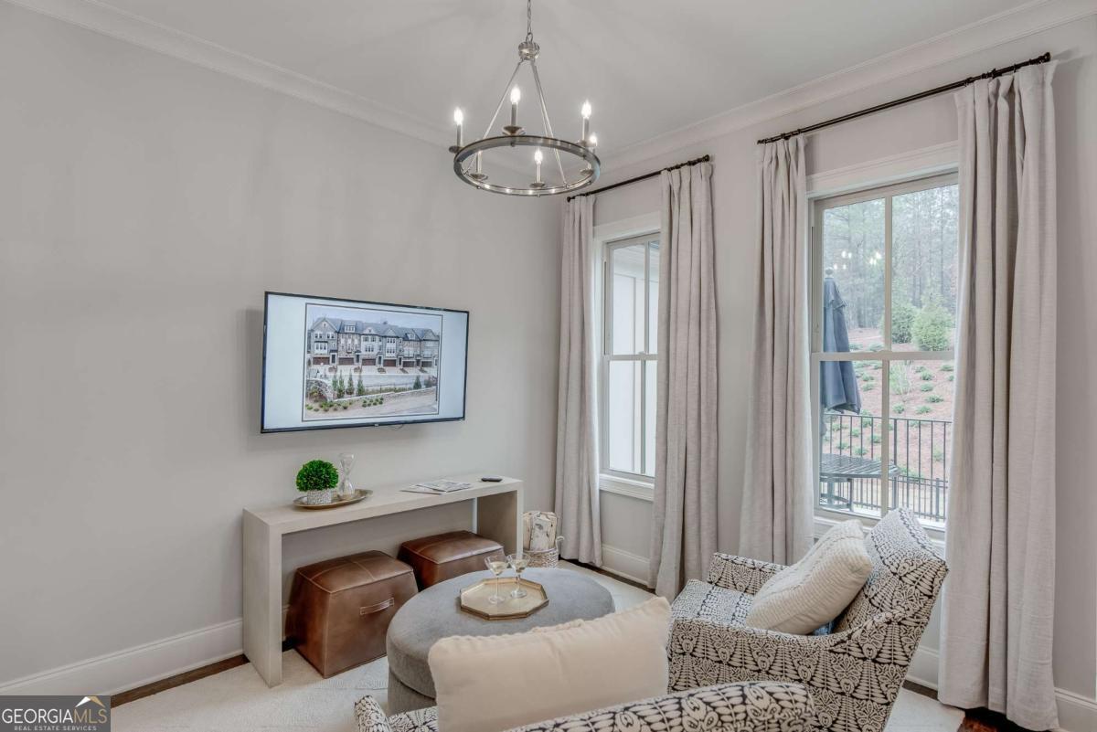 Introducing The Lawrence Plan, an exceptional four-story luxury townhome by JW Collection, founded by acclaimed homebuilder John Wieland. Now pre-selling with exclusive Founder's Pricing, this residence is offered in Laurel View, South Forsyth's newest private, gated luxury community. Designed for sophisticated, low-maintenance living, The Lawrence includes a private elevator (limited Founder's incentive) and a third-car tandem garage. This thoughtfully crafted plan showcases breathtaking views from the expansive fourth-story walk-out sky terrace-creating the ultimate setting for sunset entertaining. The main living level is open, light-filled, and ideal for gatherings, featuring an oversized front porch and covered rear deck with Trex decking for seamless indoor-outdoor living. The designer kitchen is a true centerpiece, with cabinetry extending to 10-foot ceilings, soft-close doors and drawers throughout the entire home, an oversized island with double trash pullout, sink, and dishwasher, and abundant quartz countertop selections. A walk-in pantry with custom wood shelving adds both beauty and function. Buyers will meet with the JW Collection design team to personalize all interior selections. A luxury JennAir appliance package includes a built-in refrigerator and designer wood hood, elevating the culinary experience. The great room offers warmth and elegance with a gas-log fireplace and built-in bookcases. Hardwood flooring extends throughout the main level, owner's suite, and all staircases. The owner's retreat is a private sanctuary featuring dual walk-in closets with closet systems and a spa-inspired bath complete with a freestanding soaking tub, oversized shower with bench and frameless glass, and tile extended to the ceiling. Every bath in the home features quartz countertops, undermount sinks, and full-height tile surrounds. The terrace level offers a private bedroom or bonus suite with a full bath, its own entrance to rear patio pavers, and a fenced backyard-ideal for guests or multi-generational living. Additional highlights include a mudroom with built-in bench, cubbies, and hooks, generous garage storage, and an upper-level bedroom with en-suite bath and bonus room opening directly to the private rooftop terrace. Now accepting pre-sales, this home is to be built with an anticipated Fall 2026 completion. Laurel View offers more than a home-it offers a lifestyle. Residents will enjoy a gated setting with an open-air pavilion, curated greenspace, and a community gathering area with firepit. Ideally positioned in South Forsyth's thriving "SoFo" corridor, the neighborhood provides convenient access to premier shopping, dining, and recreation including Halcyon, Big Creek Greenway, and Suwanee Town Center, as well as everyday conveniences such as Target, Home Depot, and Walmart. Laurel View is also located within a highly regarded school district, offering access to top-rated schools. Founder's Pricing is available for a limited time. This home is a rendering of another JW Collection residence built in a similar community. Features, elevations, and finishes may vary.