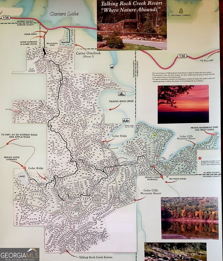 Build your North Georgia cabin escape and keep the door open for rental income potential in Talking Rock Creek Resort. A gated mountain community in Ranger, GA. This 1.71-acre lot features a natural build pad ideal for a future cabin or A-frame, with the remainder of the property sloping into a wooded hillside that adds privacy, elevation, and that true mountain feel. Access is easy with paved and gravel roads throughout the community. Talking Rock Creek Resort offers the lifestyle many buyers want: community pools, tennis courts, a 12 acre lake, and creek access, perfect for weekends in the mountains, a seasonal retreat, or a long-term hold. The HOA allows rentals, creating flexibility for owners who want personal use now and rental use later (buyer to verify any specific rental restrictions, permitting, and county requirements). There are 3 gates for access. This is raw/unimproved land with no soil test currently on file, giving you the freedom to design the septic plan and build layout around your vision. Convenient to Jasper, Ellijay, and Carters Lake. If you've been searching for a property that can be your private cabin getaway while still offering investment upside, this property may check the boxes.