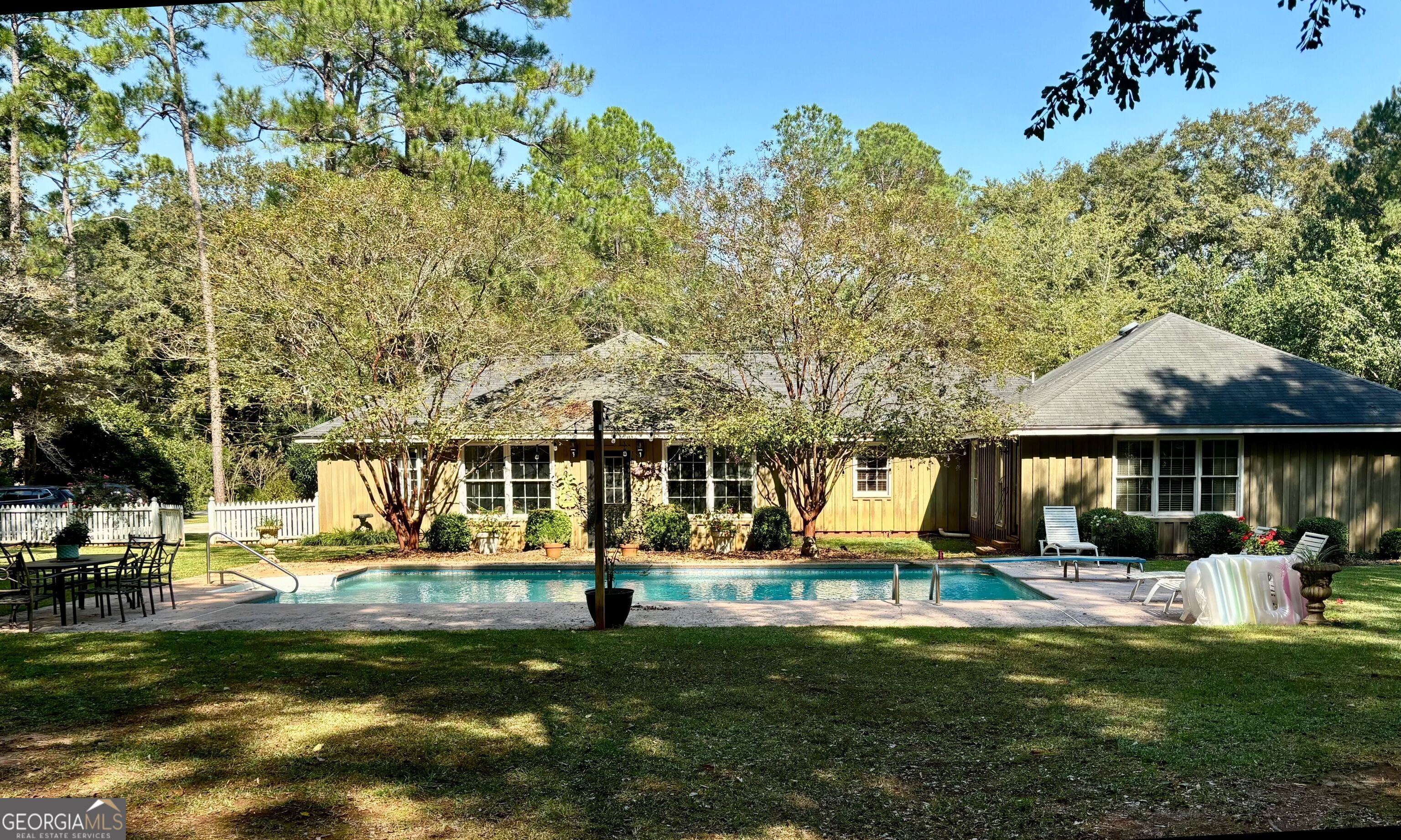 Spacious ranch style home located in the desirable Pearson & Orndorff Subdivision in Dawson, Georgia. This 3 bedroom, 2.5 bath residence offers 2,990 square feet of living space and sits on two combined lots totaling just under two acres. Providing exceptional space and privacy. The home features an open concept kitchen and living area, ideal for everyday living and entertaining, along with a formal dining room and a bonus room, ideal for a play area or home office. Beautiful pine floors run throughout the home, complemented by a cozy gas log fireplace in the main living area. Step outside to your own private retreat featuring a swimming pool, and an outdoor cookhouse, perfect for hosting gatherings year-round. Located in a great neighborhood on the golf course, this property offers both comfort and lifestyle in a sought after setting. A rare opportunity with space, character, and location. Shown by appointment only. Please contact Shannon Willis.