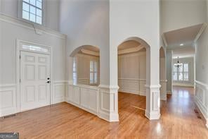 - Interior FeaturesBookcases, Double Vanity, High Ceilings, In-Law Floorplan, Master On Main Level, Tray Ceiling(s), Two Story Foyer, Vaulted Ceiling(s), Walk-In Closet(s)