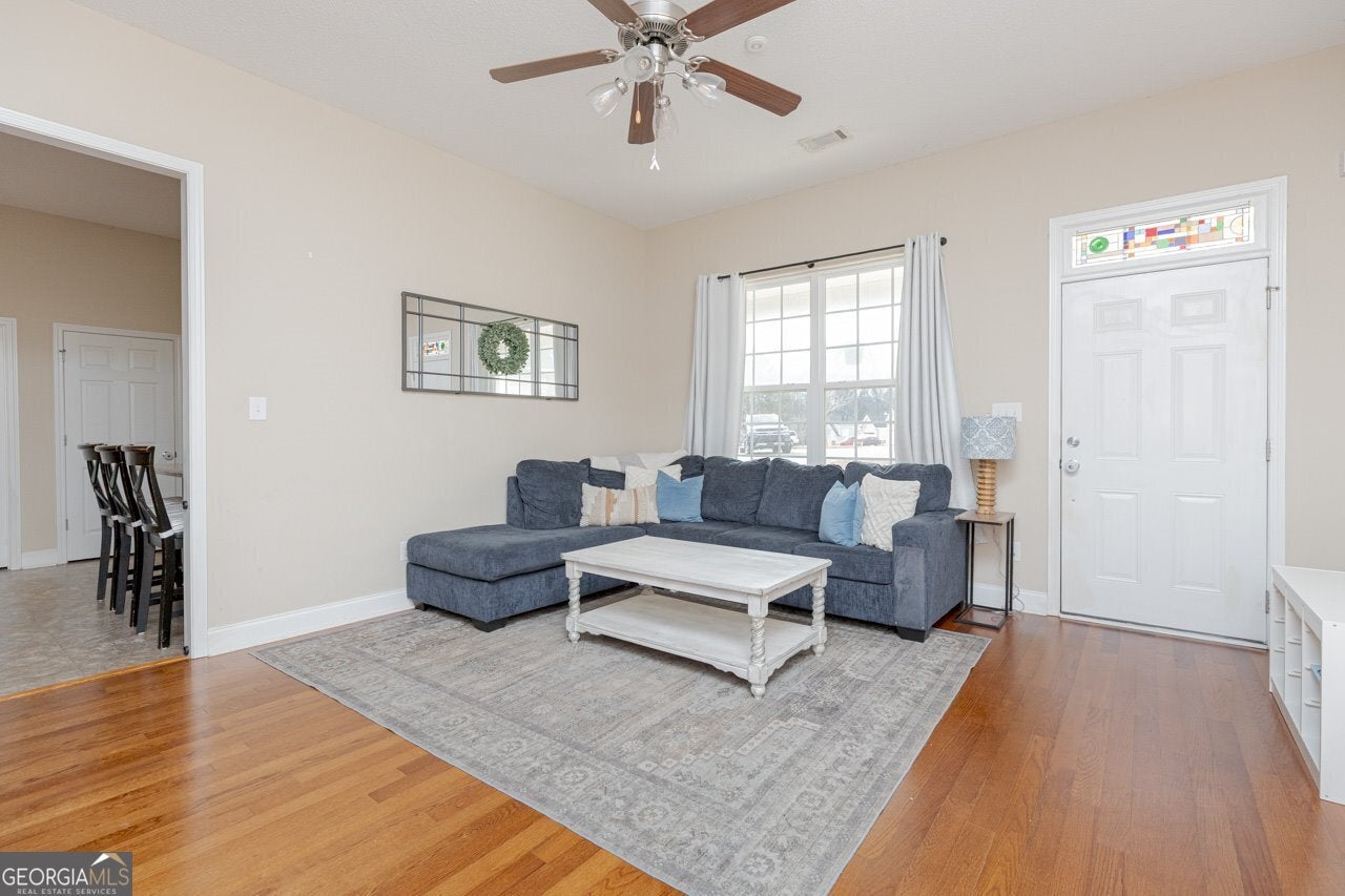 Tucked away on a quiet cul-de-sac, this beautifully updated 3 bedroom, 2 bath home sits on nearly an acre of land and backs up to peaceful woods for added privacy. Inside, you'll love the high ceilings and fresh updates throughout, creating a bright and welcoming feel. Enjoy morning coffee on the charming front porch or unwind on the spacious back deck overlooking the private backyard-perfect for entertaining or relaxing. The generous lot offers room to spread out while still feeling connected to nature. Conveniently located just minutes from town, the base, and easy interstate access, this home offers the ideal balance of privacy and accessibility. Whether you're just starting out, growing your family, or looking to downsize, this home truly fits every stage of life.