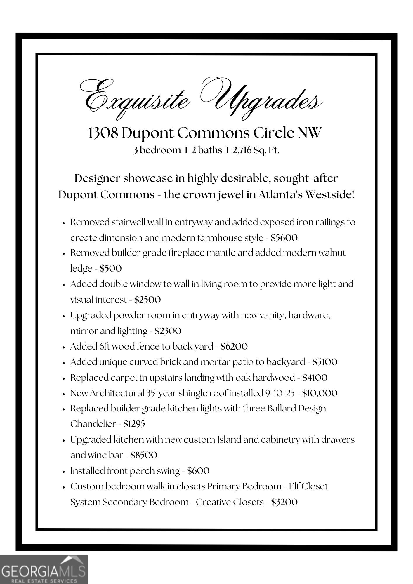 WOW! A Must See! Designer showcase in highly desirable, sought-after Dupont Commons - the crown jewel in Atlanta's Westside! This home is truly special, the largest 3-bedroom floorplan. Bonus - brand new Architectural 35 year shingle roof! The main level has been reimagined and is an entertainer's delight. Featuring an open concept with custom design renovation. The entire home is swathed with abundant natural light. If you love throwing dinner parties or hosting holiday gatherings, this home is for you. Seamless transition to quaint and cozy privacy fenced backyard with custom brick patio - perfect for unwinding, grilling, and your 4-legged friends. Stroll across the yard to a community park-like setting with a pavilion and picnic table, another perfect gathering spot. Hardwoods throughout the main, hardwoods on steps and landing. Upstairs features a large landing with a bookcase and a French door leading to a 2nd-story deck - perfect for alone time, sipping your morning coffee, or possibly enclosed for office space or flex room? The spacious primary suite features a tray ceiling, double vanity, walk-in shower, separate tub, and a huge, custom, fabulous walk-in closet! Two additional bedrooms share a hall bath with double sinks. One of these bedrooms also features a custom walk-in closet. The laundry room completes this spacious upstairs. You will not find a more central location - easy 10 minutes to Downtown Atlanta, Midtown, Vinings, Smyrna, Buckhead, and minutes to I-75. Check out these popular dining and entertainment spots that are minutes away - Star Provisions, Bacchanalia, Nuevo Laredo, Fox Bros, Scofflaw Brewery, Chattahoochee Food Works, Westside Park, and Top Golf. What's not to love - the perfect home, the perfect neighborhood, and the perfect location - come see for yourself!!
