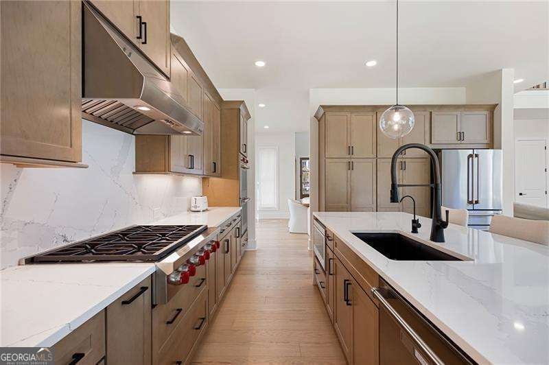 Welcome home to this executive home built by the Toll Brothers. It boasts five bedrooms, five bathrooms and a private backyard. The house features a whole house water filtration system, reverse osmosis water filtration system, high ceilings, upscale Smith & Nobel 3 Day blinds throughout, California closet systems throughout, an upgraded accordion door that opens to the beautiful, private backyard (no rear neighbors), and an enhanced outdoor living space ($38,160). There are too many luxurious appointments to list. The two-story grand foyer will greet your guest with open arms. The chef's kitchen features quartz countertops, a stunning island, quartz backsplash, Wolf appliances, and a hidden pantry. The kitchen opens to the family room with upgraded built ins. The dining room is ready to host your dinner parties. There is a flex space on the main floor that is perfect as an office or a play room. Your guest will enjoy their private elegant ensuite. You will enjoy the thoughtfully designed mudroom for everyday convenience and functionality. The high-end finishes continue to the second floor, which is appointed with engineered wood flooring. The primary suite boasts a tray ceiling, a sitting room, dual vanities, a luxurious shower with double shower heads, a soaking tub, and a walk-in closet that features a California closet system. The laundry room is conveniently located on the second floor. There are two ensuites with walk-in closets and one more ensuite. All the bedrooms boast a California closet system. Enjoy your evenings on your patio overlooking your private, fenced-in backyard. There are no rear neighbors. You will enjoy scenic lake walks, a resort-style pool with luxury fireplace, pool cabana, fire pit, and pickleball courts. All just minutes from downtown Alpharetta, Halcyon, Crabapple, Avalon, Canton Street, three premier golf courses, shopping, dining, and entertainment options. Don't miss this rare opportunity to own this exquisitely upgraded luxury home in one of the area's most desirable neighborhoods. Luxury, comfort, and convenience await. Schedule your private showing today. This is more than a home; it's your forever destination!