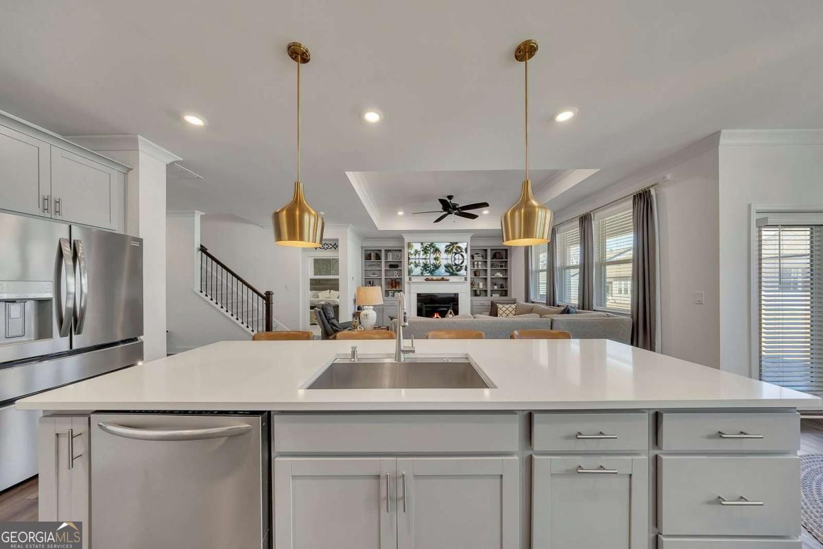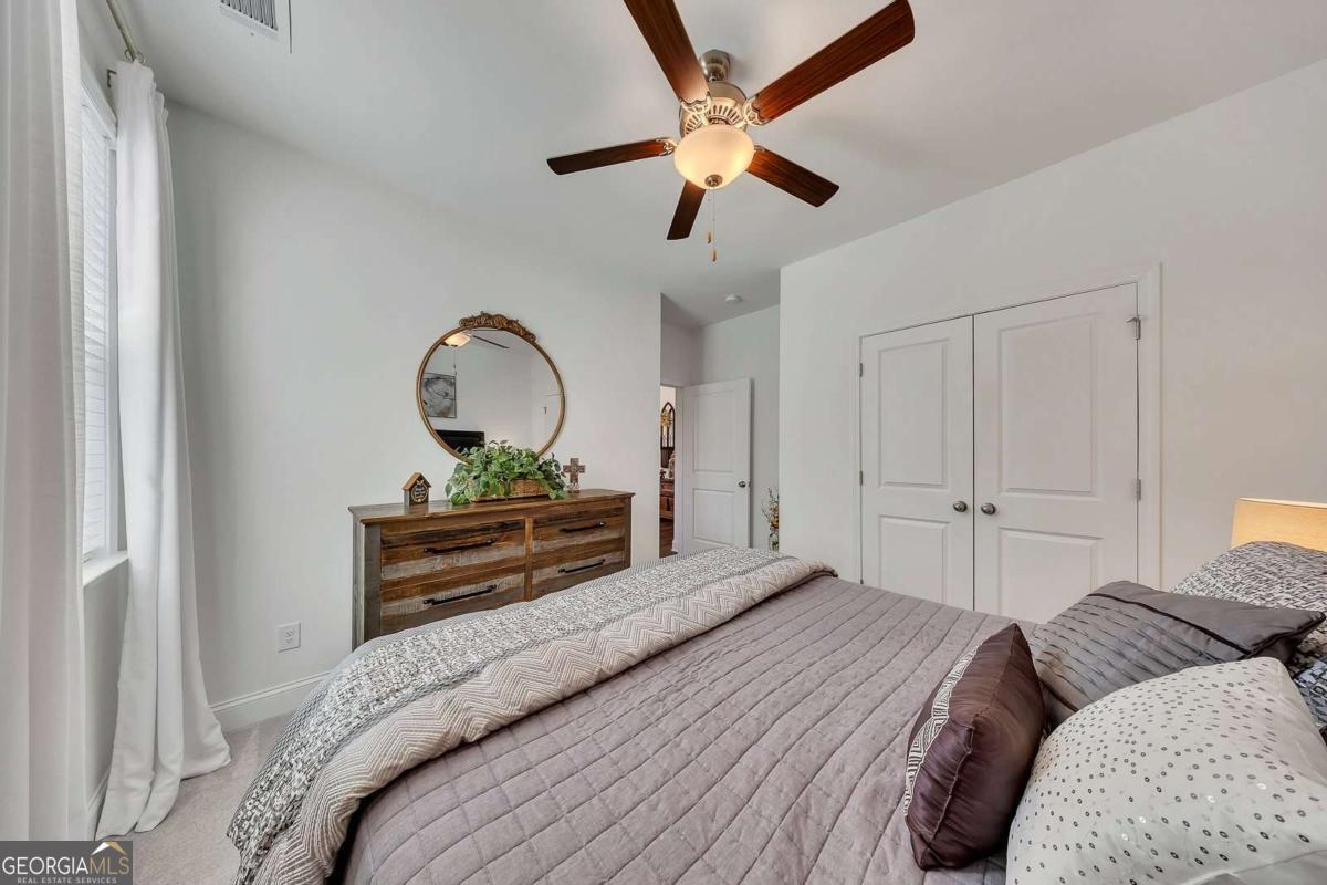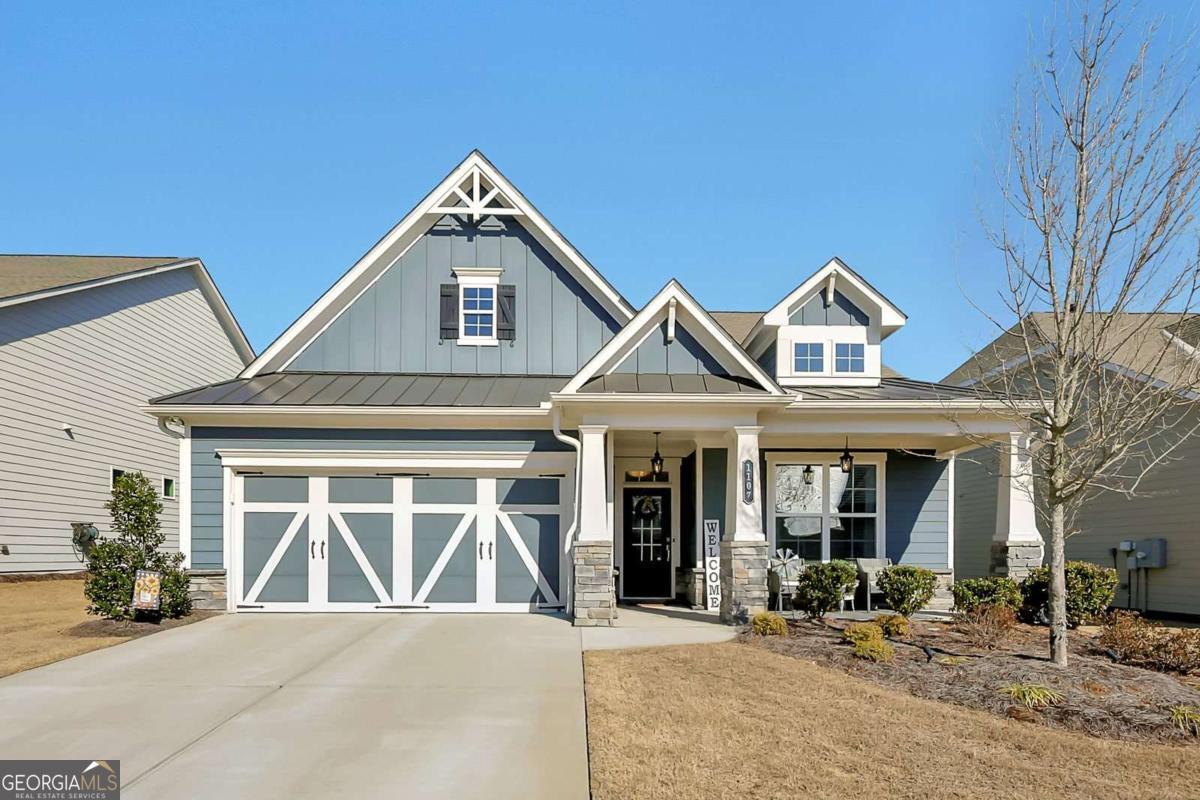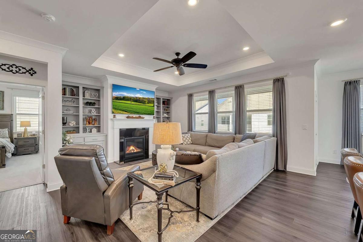 Welcome to the lifestyle you deserve at Hickory Bluffs, Canton's premier 55+ community! This immaculate 4-bedroom, 3-bath home shines with over $50K in premium upgrades. Curb appeal abounds with stone accents, metal roof detailing, and low-maintenance landscaping. Inside, the sun-drenched open-concept floor plan features LVP flooring and a cozy fireplace flanked by custom built-in bookcases. The chef's kitchen is an entertainer's dream, boasting a spacious island with seating for four, beautiful quartz countertops and a newly upgraded single bowl stainless steel sink with countertop garbage disposal air switch, while the separate dining room is perfect for holiday gatherings. The primary suite is a true retreat, featuring a private sitting area, a custom barn door, and a spa-inspired bath with a zero-entry tiled shower. The primary closet features high-end, custom built, soft-close cabinetry and a seamless transition from the primary closet to the laundry room make daily living a breeze. Upstairs, finished loft, fourth bedroom, and full bath offer the perfect space for guests or a hobby room. Life here is a permanent vacation! Enjoy resort-style amenities including a clubhouse with pool table, shuffleboard table, 2 full kitchens, conversation rooms, space for card games, crafts, and a fully equipped workout facility. Enjoy the Olympic-sized swimming pool, 7 pickleball courts and 2 tennis courts. Located minutes from the North Georgia Mountains and Atlanta, this is more than a home-it's a community.