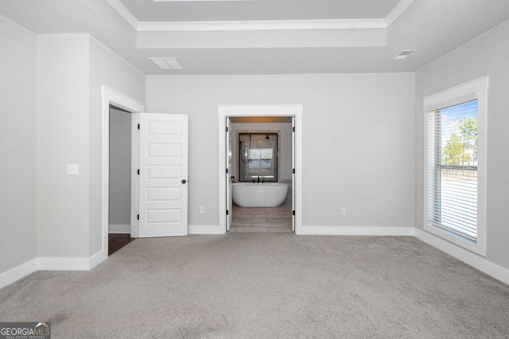 - Interior FeaturesDouble Vanity, Master On Main Level, Pulldown Attic Stairs, Separate Shower, Soaking Tub, Tile Bath, Tray Ceiling(s), Walk-In Closet(s)