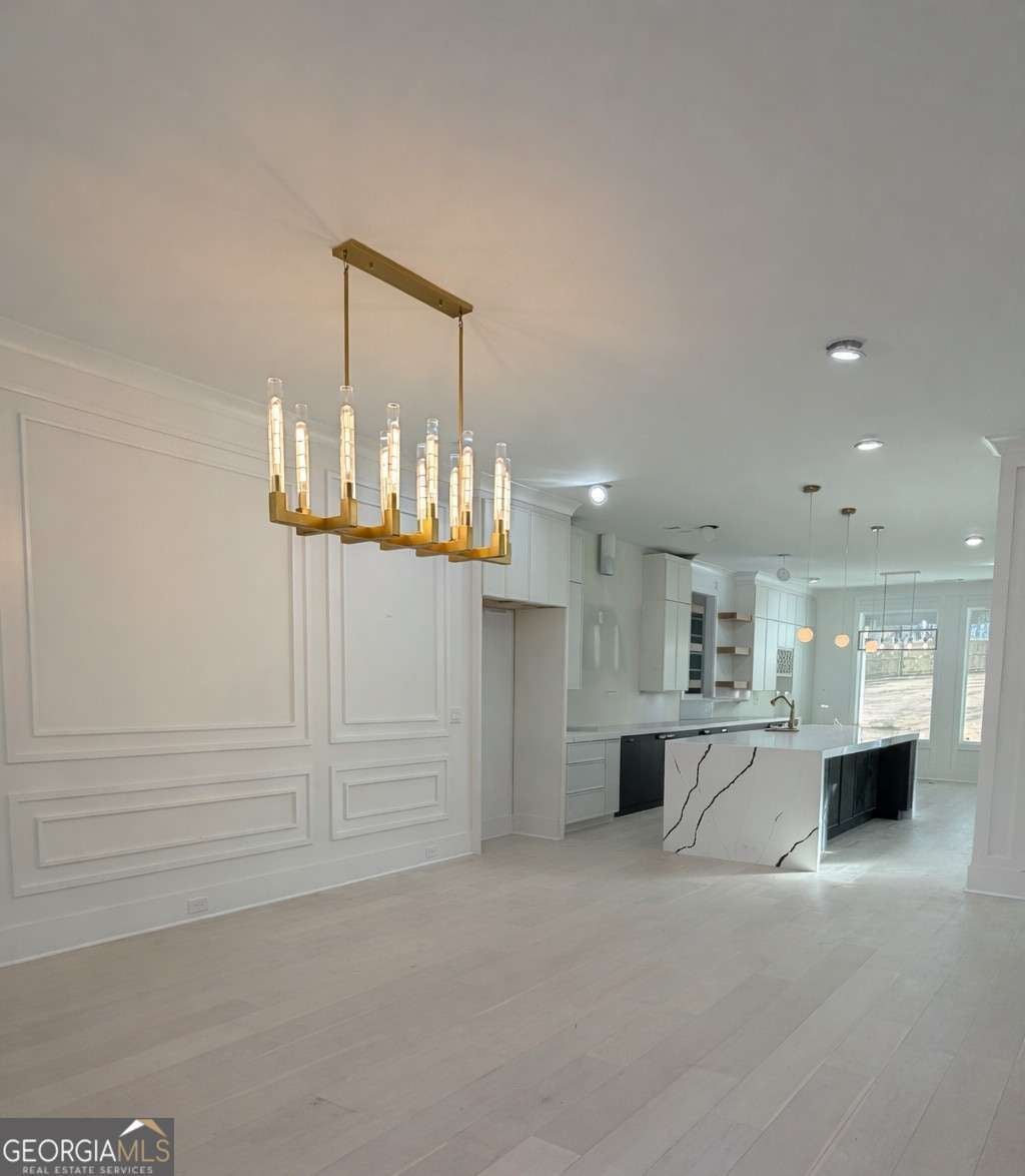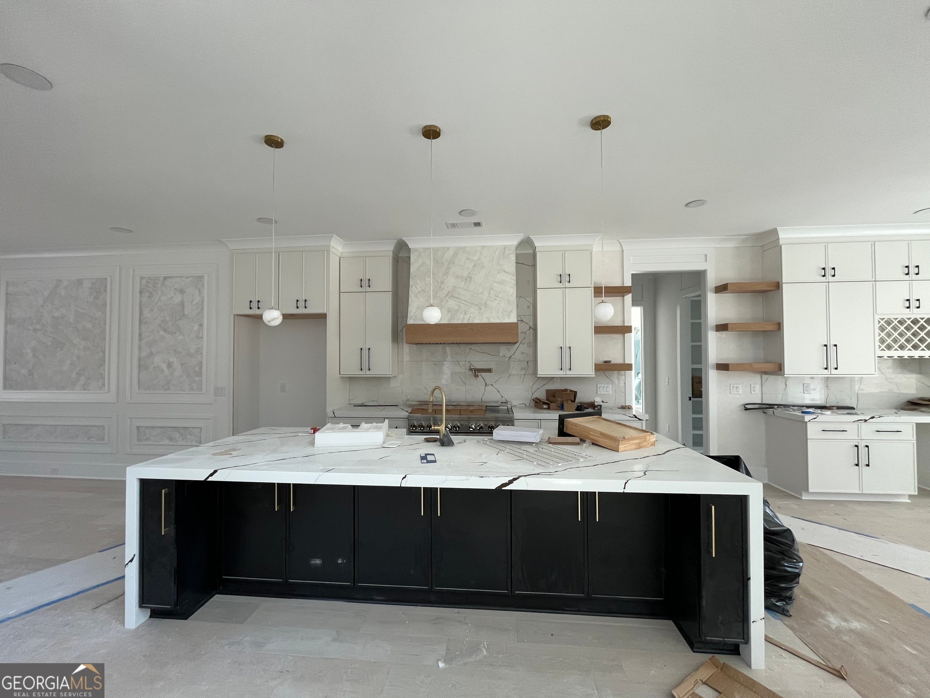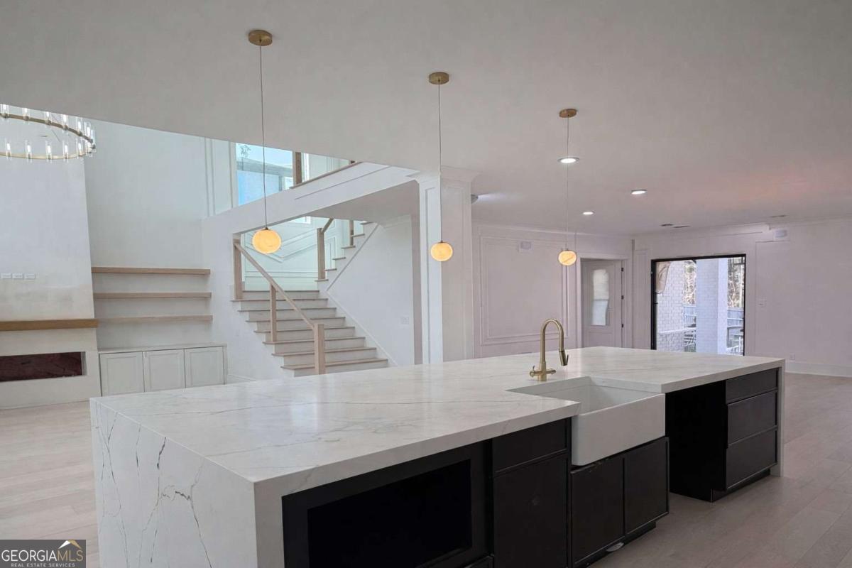 This architecturally refined residence, now nearing completion, presents a thoughtfully designed luxury floorplan that blends modern functionality with timeless craftsmanship. The home features a private in-law suite on the main level with its own ensuite bath and laundry area, while the primary suite is positioned upstairs to create a balanced layout ideal for everyday living and hosting extended family or guests. From the moment you enter, the home reveals a bright open-concept design filled with natural light, soaring ceilings, wide-plank hardwood flooring, curated designer lighting, and custom millwork that showcase exceptional craftsmanship throughout. The spacious living room is anchored by a striking fireplace and flows seamlessly into the chef's kitchen, creating an inviting environment for both entertaining and daily living. The gourmet kitchen is centered around an oversized island and features premium cabinetry, porcelain countertops, designer backsplash, and a spacious walk-in pantry. A sunlit breakfast area overlooks the covered patio, while the formal dining room provides an elegant setting for gatherings and special occasions. The main-level guest suite offers privacy and flexibility with its own ensuite bath and walk-in closet, making it ideal for visitors or multigenerational living. A dedicated home office, stylish half bath, mudroom, and access to both the two-car garage and separate third-car garage complete the main level. Upstairs, the expansive primary suite serves as a private retreat featuring its own fireplace, a spa-inspired bath with dual vanities, freestanding soaking tub, oversized frameless glass shower, and a custom walk-in closet. A large media room and loft with fireplace and wet bar provide a comfortable gathering space for movie nights or entertaining. Three additional secondary suites include walk-in closets and either private ensuite baths or a Jack-and-Jill bath, while a second laundry room adds everyday convenience. Outdoor living is equally inviting with a covered rear patio designed for entertaining or quiet evenings, overlooking a level backyard with space for a future enhancements. Additional highlights include four-sided brick construction, professional landscaping, irrigation system, foam-insulated attic, zoned HVAC systems, tankless water heater, and energy-efficient windows. Ideally located near Braselton Highway, Sugarloaf Parkway, and I-85, residents enjoy convenient access to shopping, dining, parks, and top-rated Gwinnett County schools. Professional photography will be added as construction reaches completion.