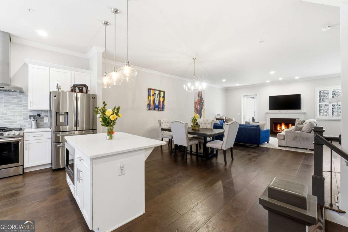 Welcome to this beautifully maintained contemporary townhome in the desirable Northridge Commons community. Built in 2020, this spacious residence offers 3 bedrooms, 3.5 bathrooms, and approximately 2,392 sq ft of thoughtfully designed living space. The open-concept main level showcases hardwood floors, high ceilings, and a bright, inviting living room complete with a cozy fireplace. The modern kitchen features white cabinetry, stone countertops, stainless steel appliances, and a large island-perfect for entertaining or everyday living. Upstairs, the oversized primary suite offers a true retreat with a spa-like bathroom, including double vanities, a soaking tub, and a separate shower. Additional features include a finished lower level ideal for a home office, media room, or guest space, a private deck for outdoor relaxation, and a 2-car attached garage. Conveniently located near GA-400, with easy access to shopping, dining, parks, and all the amenities Sandy Springs has to offer, this home blends comfort, style, and unbeatable convenience.