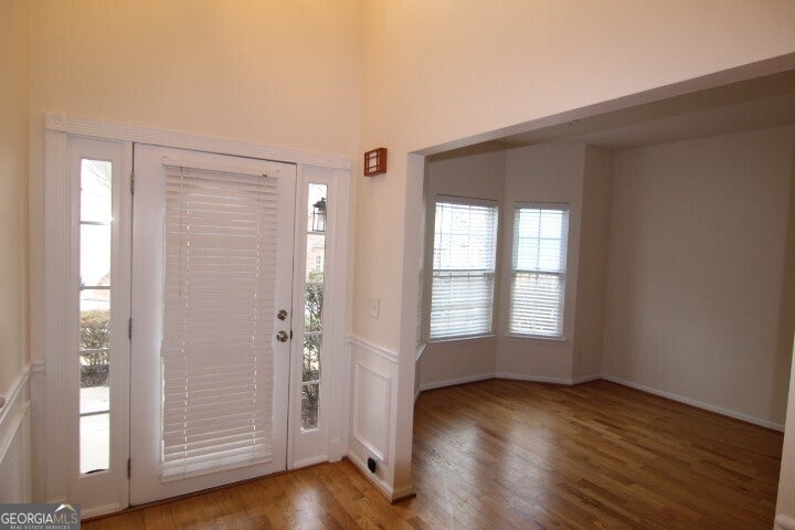 Charming two-story home. Can't beat this location! Close proximity to restaurants and shops. Highly desired schools: Settles Bridge Elementary, Riverwatch Middle, and Lambert High School. New paint. New Flooring. High ceiling family and bedrooms. New Stainless-steel appliances. Fabulous home with open floor plan, high ceilings, hardwood floors, and amazing amounts of natural light. Spacious master suite with a tray ceiling, a garden tub, a generously-sized walk-in closet, and a cozy sitting area. The open floor plan features a separate living room and dining room, while the family room, adorned with a stunning stone fireplace, seamlessly connects to the kitchen. Large back yard. Active community with lighted Tennis Courts, Junior Olympic-Sized Pool, Playground, and Trail. Relax on the front porch as neighbors stroll by, enjoy coffee in the sunroom, or sip a glass of wine on the back deck. This won't last long!
