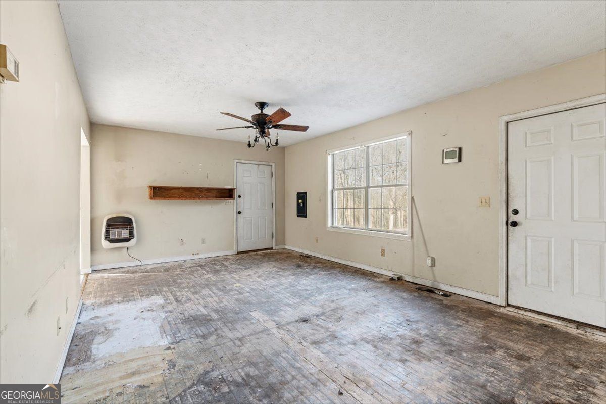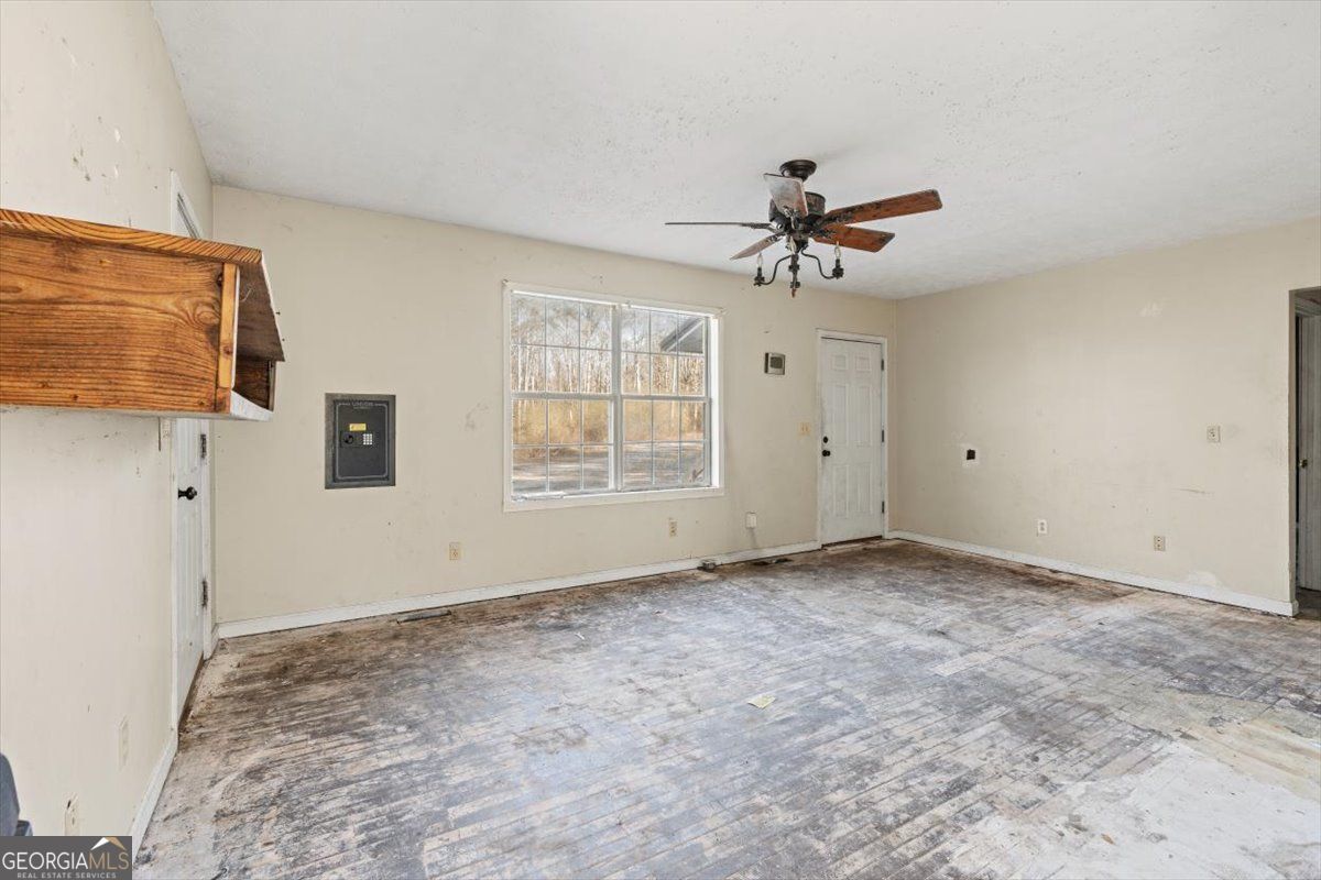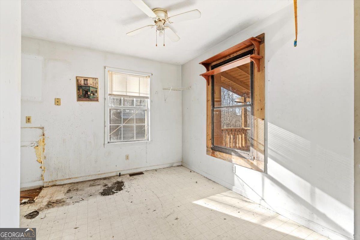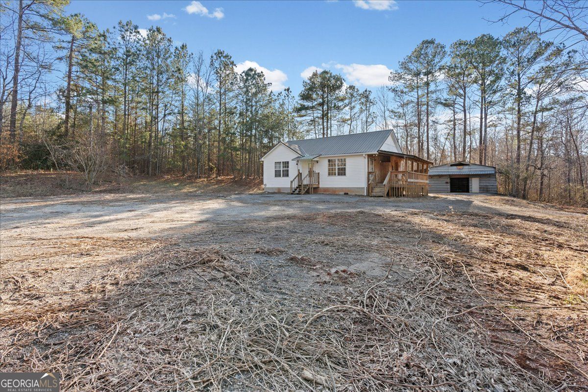 Calling all investors and renovation loan buyers! Built in 1997, this extremely private home sits on over 5 acres and offers a rare opportunity to create value in a peaceful setting. The property is currently configured as a 2 bedroom, 1 bath, though tax records reflect a 3 bedroom home. The interior has been fully gutted and is ready for renovation, making it an ideal blank canvas for your vision. The home features a metal roof, and the exterior appears to be in solid condition. Enjoy tranquil views from the large covered deck, overlooking open fields, while a winding creek flows along the back of the property, adding to the natural beauty and privacy. A large detached shop is located behind the home, perfect for storage, hobbies, or future workspace. Cash or renovation loans only and property sold as-is. A rare chance to renovate and customize in a secluded, acreage setting.