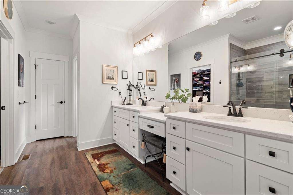 - Interior FeaturesBookcases, Double Vanity, High Ceilings, Master On Main Level, Pulldown Attic Stairs, Walk-In Closet(s)