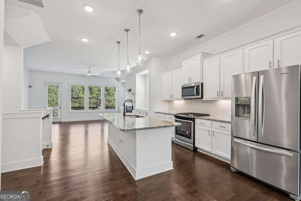 End-unit townhome that perfectly blends style, space, and an unbeatable location-just minutes from Downtown Atlanta, Smyrna, and the Cobb Galleria! Designed for modern living, the bright open-concept layout is filled with natural light and enhanced by hardwood floors and recessed lighting throughout. The spacious family room features a gas fireplace and opens seamlessly to a lovely kitchen complete with granite countertops, stainless steel appliances, convection cooking, and a large center island ideal for entertaining. Upstairs, the spacious primary suite features a generous walk-in closet and an en-suite bath highlighted by an oversized double shower. The upper-level laundry adds everyday convenience with easy access to all bedrooms. As an end unit, this home offers enhanced privacy along with a back deck-perfect for outdoor dining or unwinding. Residents enjoy community amenities, including a pool, tennis courts, clubhouse with fitness center, playground, and a walking path with direct access to Whittier Mill Park. A rare opportunity to own in one of Atlanta's most connected and desirable locations!