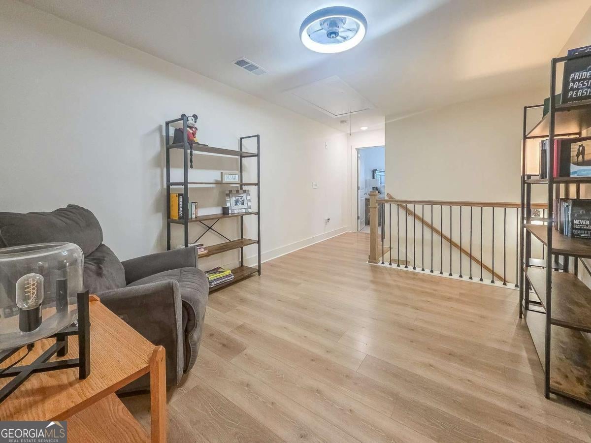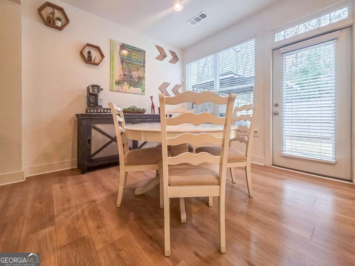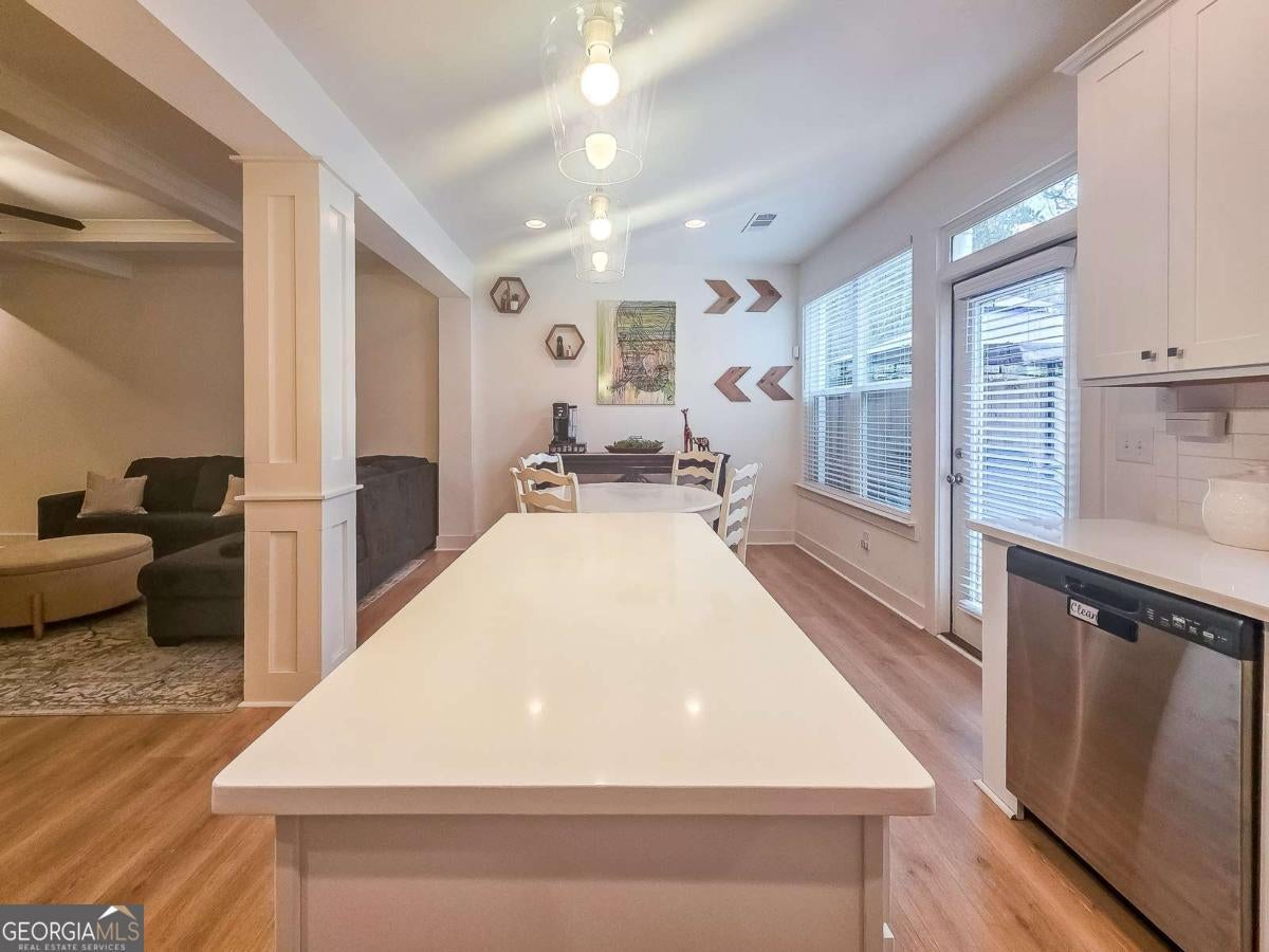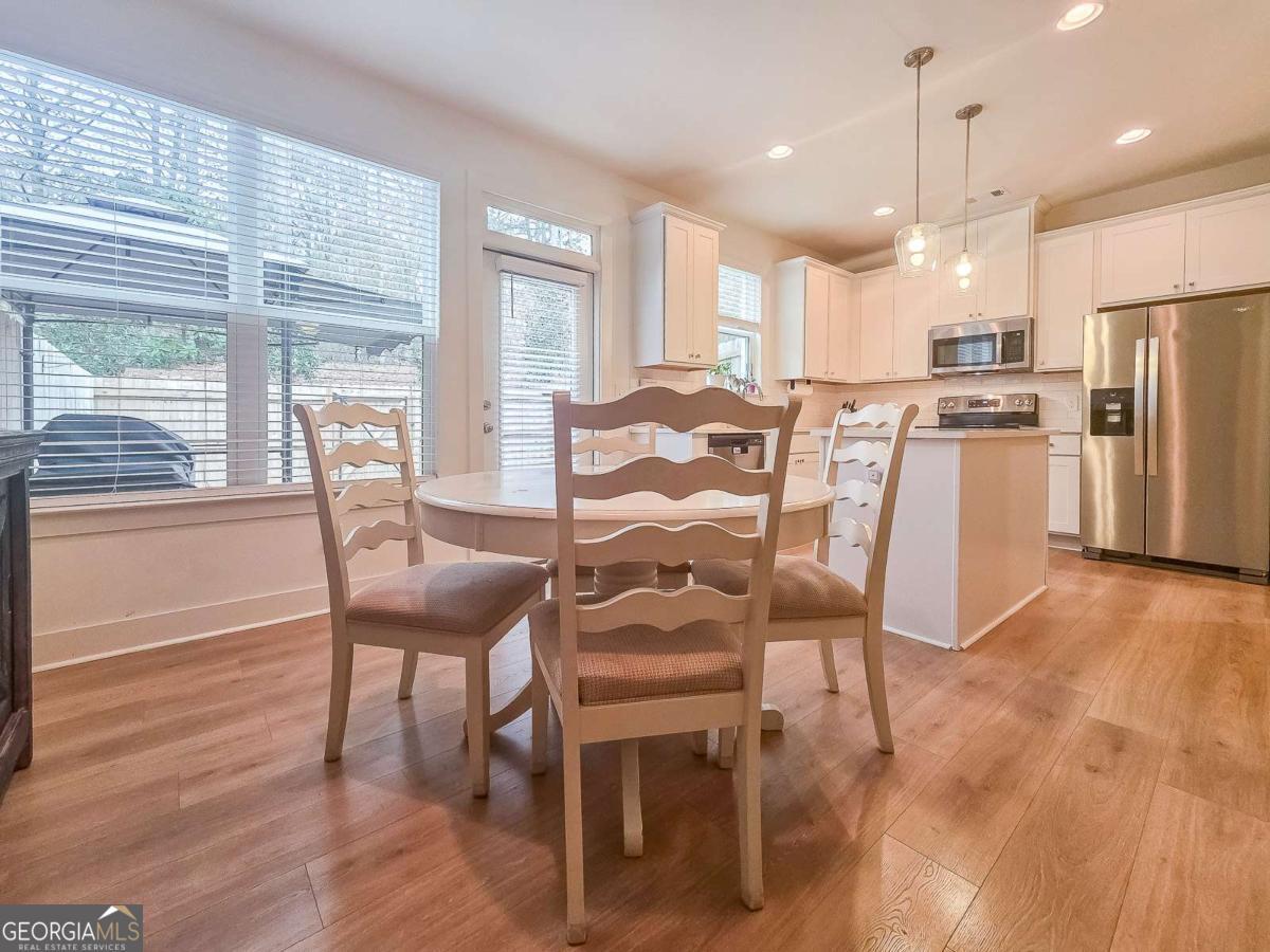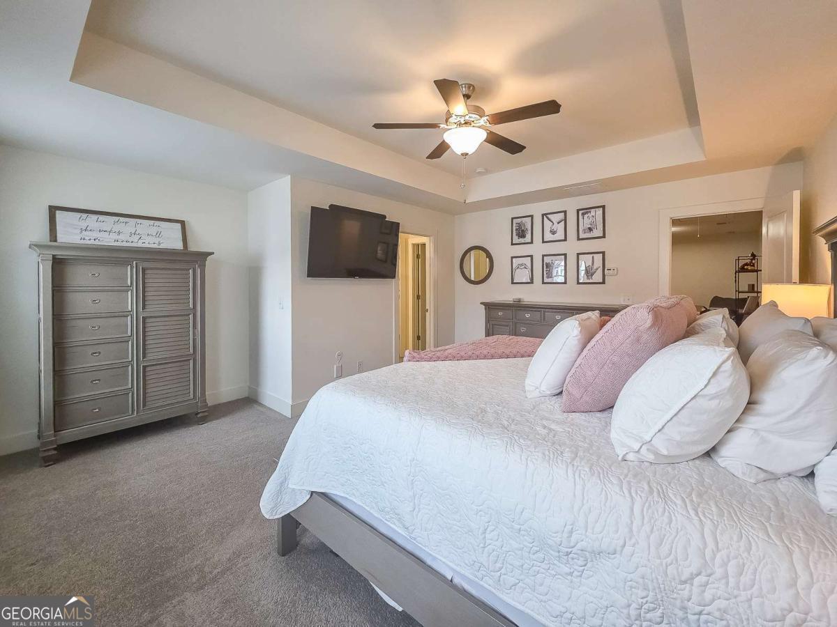 Welcome to this beautiful, like-new three-bedroom, two-and-one-half-bathroom townhome in the gated Townes of Auburn community! This bright and open floor plan matches functionality with cozy living! The main level features a kitchen and living area, a powder bathroom, two spacious closets, and access to the two-car garage and the fenced-in backyard. This is the ideal backyard to sit out and relax with privacy maximized by trees and natural landscaping outside of the fenced area. The kitchen features white cabinetry with ample storage space, a center island, quartz countertops, and stainless steel appliances. The adjacent family room is open to the kitchen and is centered around a gas fireplace and has a coffered ceiling. Upstairs, you'll find a wonderful loft space with LVP flooring, which makes for a great workspace, recreation area, or second den. Additionally, there are two generously sized secondary bedrooms that share a full bathroom, and a wonderfully spacious primary suite with a sitting area and a walk-in closet. The primary bathroom has an oversized shower, a soaking tub, and a double vanity with quartz countertops. The laundry room is also located upstairs and offers storage space as well. When it is time to relax and enjoy the outdoors, the community amenities have something for everyone, including a wonderful playground area, pool, pickleball and tennis courts, and a wonderful trail. With easy access to I-85, Highway 316, shopping, dining, and excellent schools, this home offers convenience, comfort, and low-maintenance living!