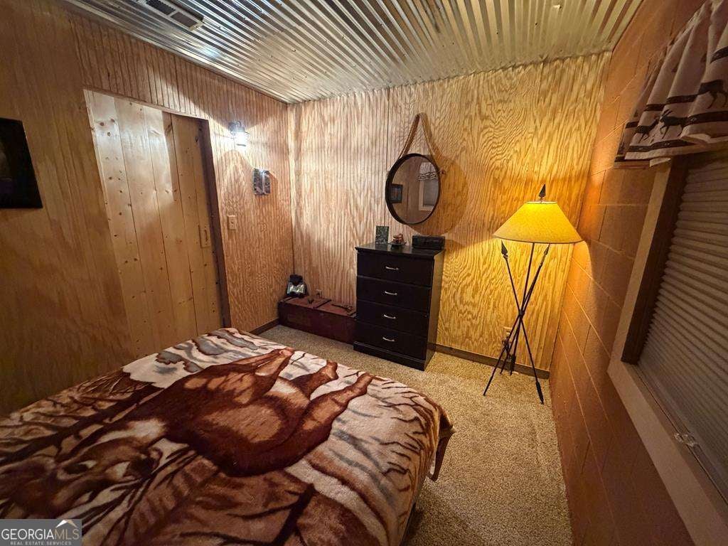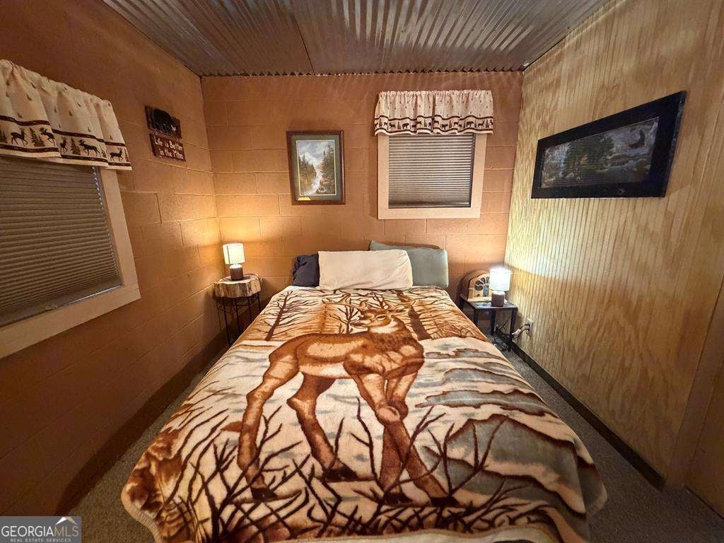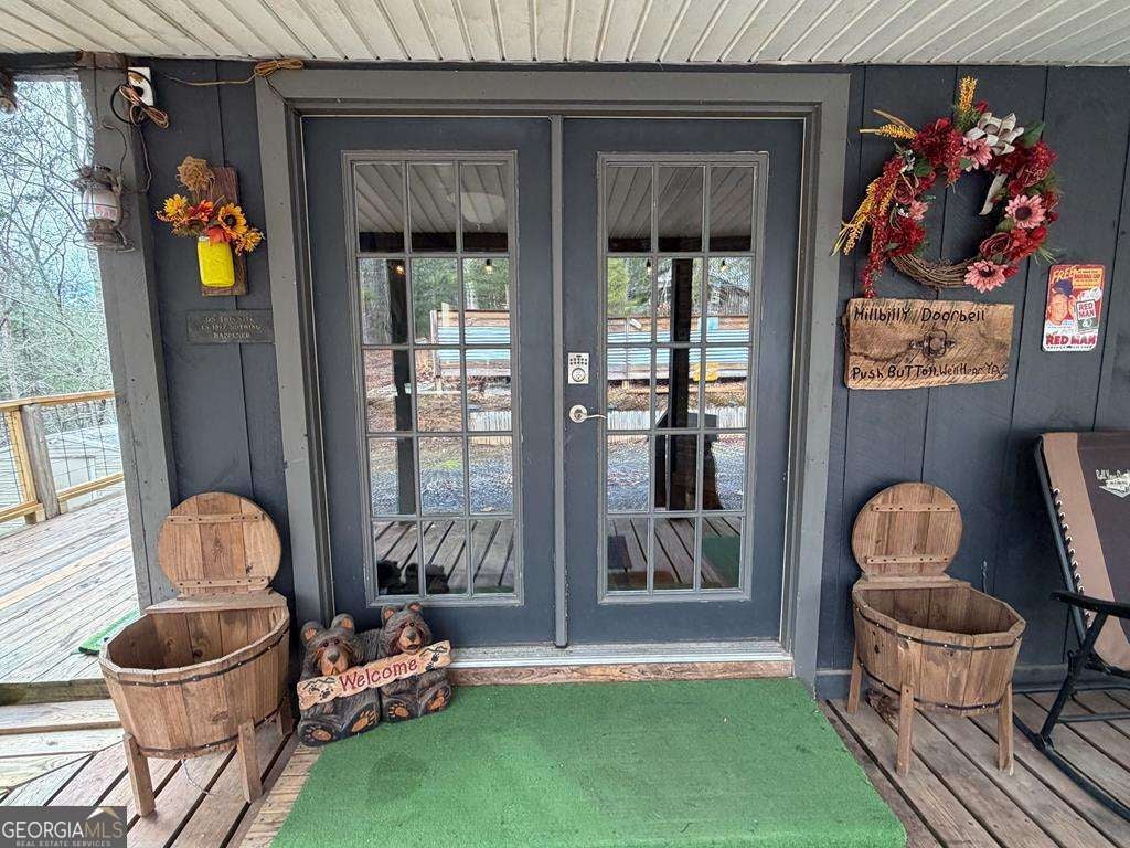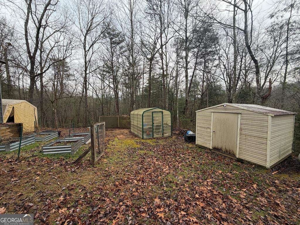 Breathe in the Mountain Air & Escape to a Simpler Way of Life with this Rustic, Wood-Sided 2-story Cabin/Cottage tucked away on 5+ Private Acres with a Wide Seasonal Mountain View & 334' of Stream Frontage (w/ Small Ponds). About 4.5 miles miles south of DOWNTOWN Blue Ridge & only 1.5 miles off the Hwy 515 Corridor... Accessed by County-Maintained Paved Roads. A new 2023 Metal Roof tops the Cabin while a full FOUR -Sided Wrap-Around Porch (One Covered at Entry) invites Morning Coffee or Quiet Evenings Overlooking your Private Nature Preserve in this Civilized Location. Double "French Entry Doors" open to a warm, ALL-Wood Interior Centered around a Striking BRICK Double-Chimney Flue and Stylish Metal Ceilings that enhance the Cabin's Rustic Character. Central HVAC provides Year-Round Comfort. The Main Level includes an 11x12 bedroom with a large closet, Full Bath with a one-piece tub/shower unit, stackable laundry hookup Plus a Large Pantry Closet. The Terrace level offers a finished 9x12 Bedroom ideal for Guests, plus 668 sq ft of unfinished Basement Space for future expansion. Quality features include vinyl soffit & fascia, insulated vinyl windows, a new hot water heater (2023) & a Whole-House Generator installed in 2020. Multiple Outbuildings include an 18x20 Metal Workshop (Garage), a 8x12 Greenhouse (2022) with Fenced-In Raised Garden Beds & a 10x10 Metal Equipment Shed (2002). There is an improved Firepit Area Under the Stars and an ATV Trail to explore. Enjoy the level area down by the Stream (seller currently parking equipment trailers) that features several flowing "Springs" that feed the Stream. A Gated Shared Driveway leads to a Private Homesite Above the Stream-offering Peace, Privacy & the ultimate Mountain Cabin Setting... tucked sweetly away in a very Convenient Location only 4 miles from the City Limits of Blue Ridge. Area features ETC Fiber Optic Internet. Unrestricted Acreage ..so bring the Chickens or build another Cabin in this fabulous location.