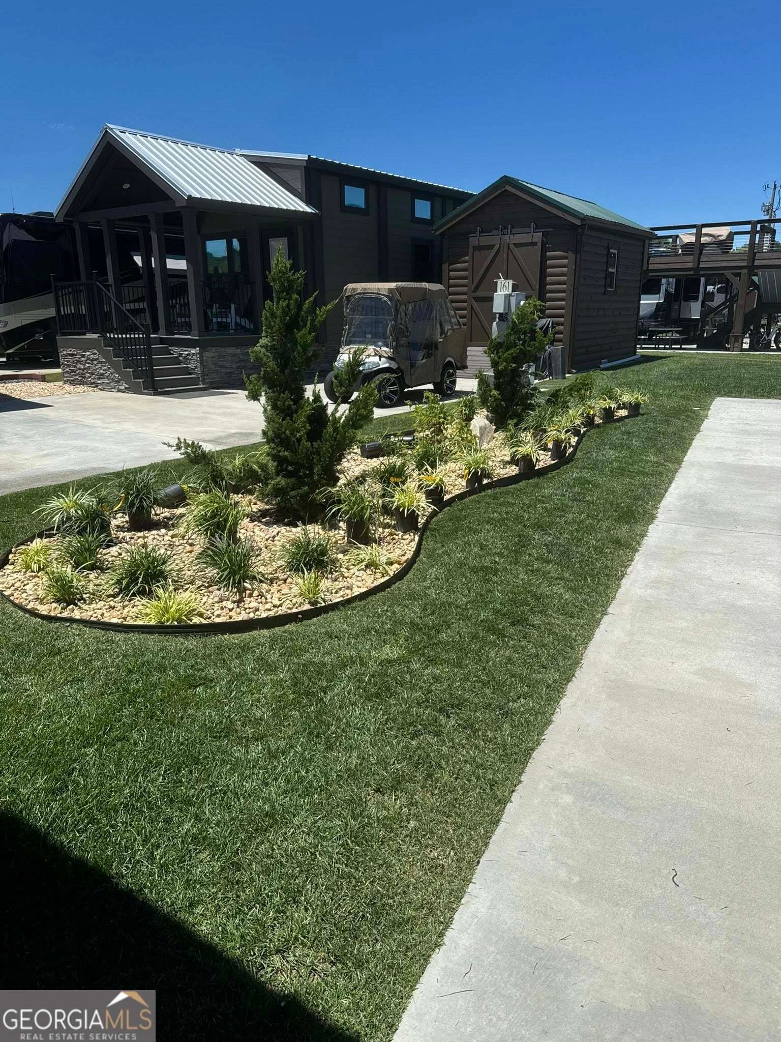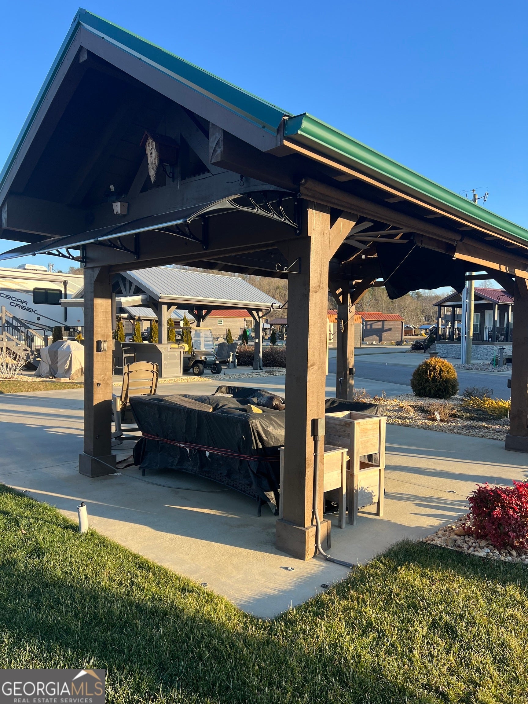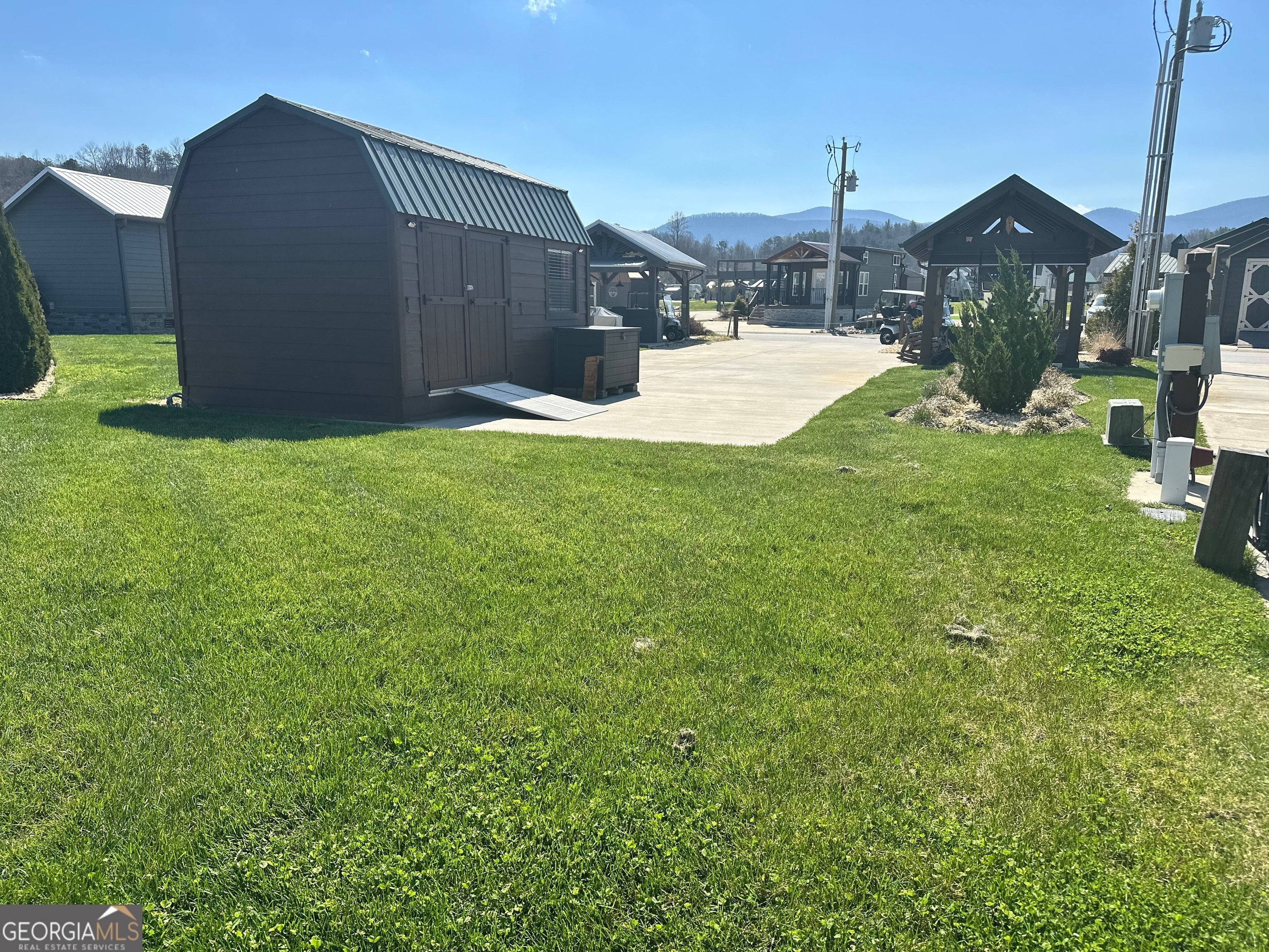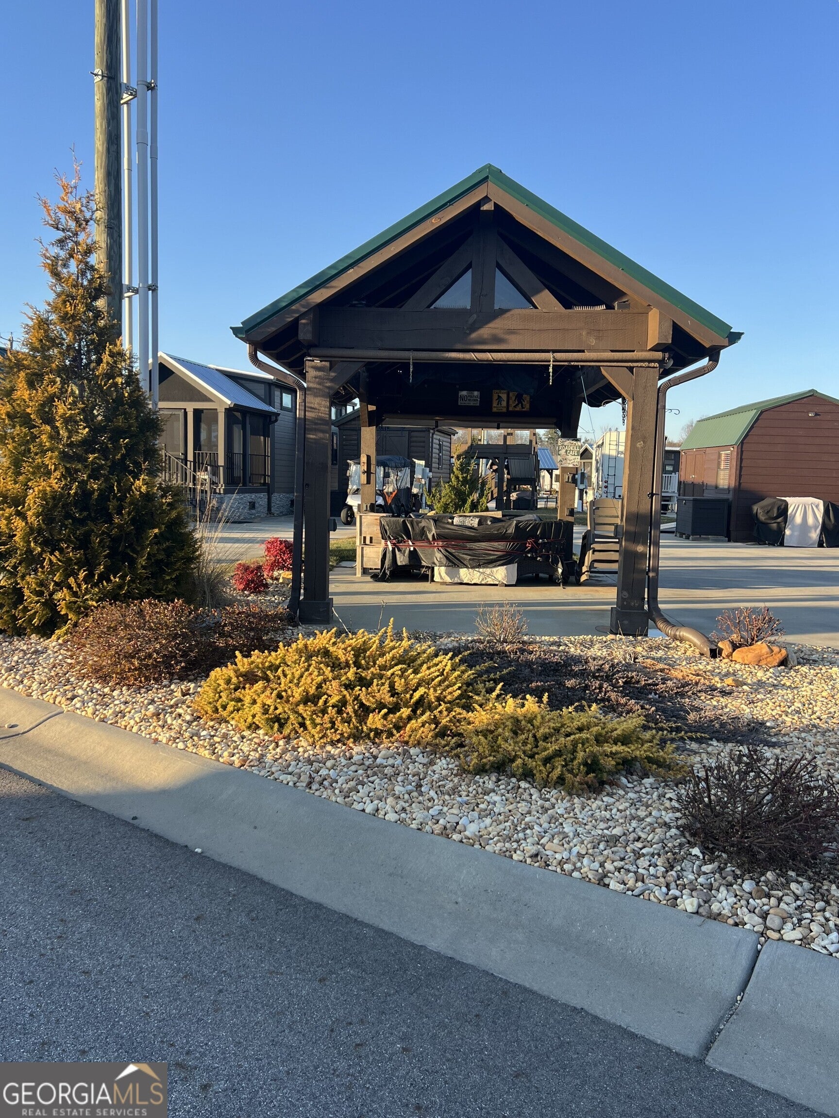Centrally located back in lot that's ready for your RV and/or a tiny home! Current improvements of a 16x10 pavilion with electric and TV for entertainment protection from the elements. Nicely finished 16x10 shed with electric and insulated office space, a workshop space, storage space and additional storage in the two loft areas. All accented with grassy softscape landscaped area for your pets. A beautiful vacation lot, future permanent residence or rental property. Local lender financing available! Crossing Creeks RV Resort and Spa welcomes class A,B and C RV's, as well as travel trailers and 5th Wheels!
