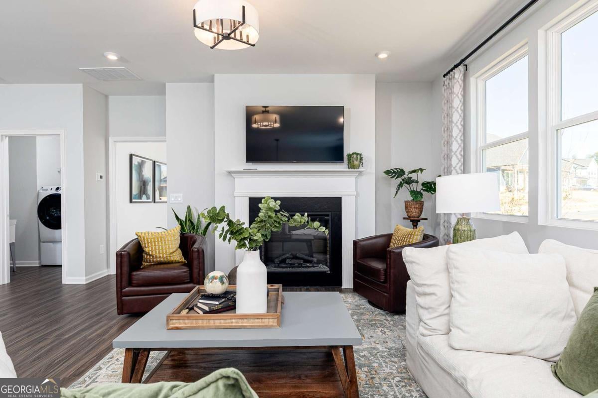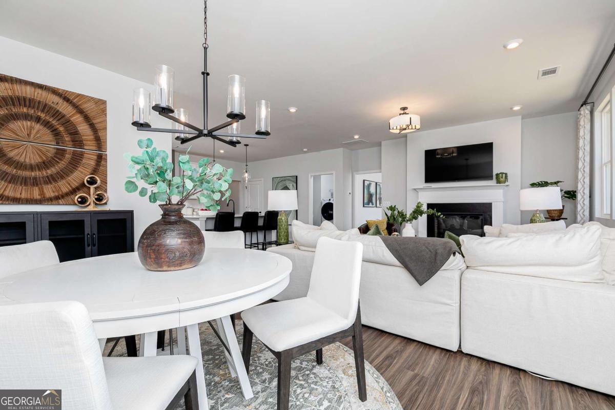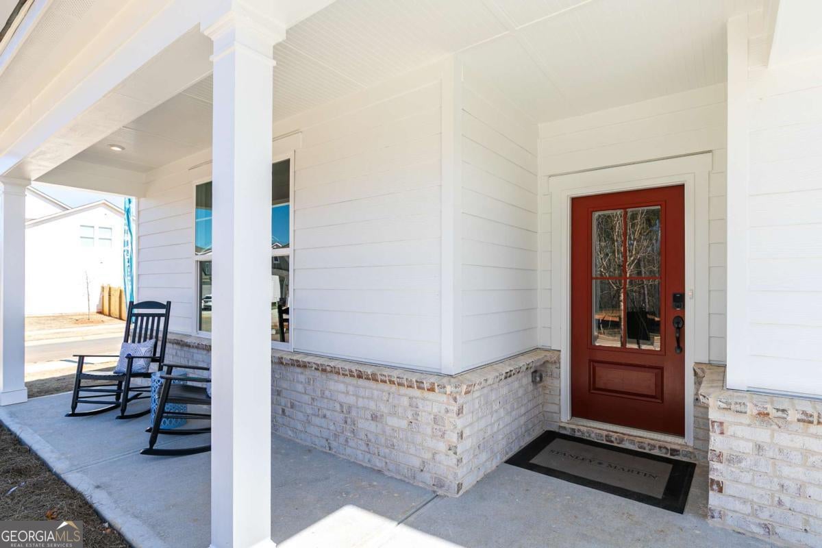 Welcome to River Oaks. The Easton on homesite 50 strikes the perfect balance of comfort and convenience with its thoughtfully designed main-level living and attached two-car garage. At the front of the home, two spacious bedrooms share a full bath, providing an ideal setup for family or guests. The private primary suite, located at the rear of the home, features a luxurious ensuite bath with a double-sink vanity and an oversized walk-in closet. The heart of the home is the stunning kitchen, a true showstopper equipped with a large island with seating, quartz countertops, a tile backsplash, 42in cabinets, a walk-in pantry, and stainless-steel GE Profile appliances. Whether you're whipping up casual meals or hosting elegant dinners, this kitchen is designed to meet all your needs. Adjacent to the kitchen, the well-placed mudroom offers seamless access to the garage, simplifying daily tasks like organizing and unloading groceries. The welcoming family room, complete with a cozy fireplace, provides the perfect space for relaxation or gathering with loved ones. The dining area, located just off the kitchen, opens to a rear patio, creating an inviting space for outdoor dining or enjoying morning coffee. For those who work from home, the pocket office offers a quiet and functional space to stay productive. Additional flexibility with upstairs loft with bedroom and ensuite. The Easton is carefully crafted to blend modern design, comfort, and functionality, making it an exceptional choice for today's lifestyle. River Oaks is perfectly positioned to offer the best of Locust Grove living. With easy access to I-75, you're minutes from: Tanger Outlets, Historic Downtown Locust Grove, Shopping and dining destinations. The area is also surrounded by popular attractions, including Noah's Ark Animal Sanctuary, High Falls State Park, and the Atlanta Motor Speedway. This home won't last long! Schedule your private tour today and ask about our incredible builder incentives! ***This home is currently under construction. Photos are of a similar completed model and are intended to showcase the home's layout and finishes***