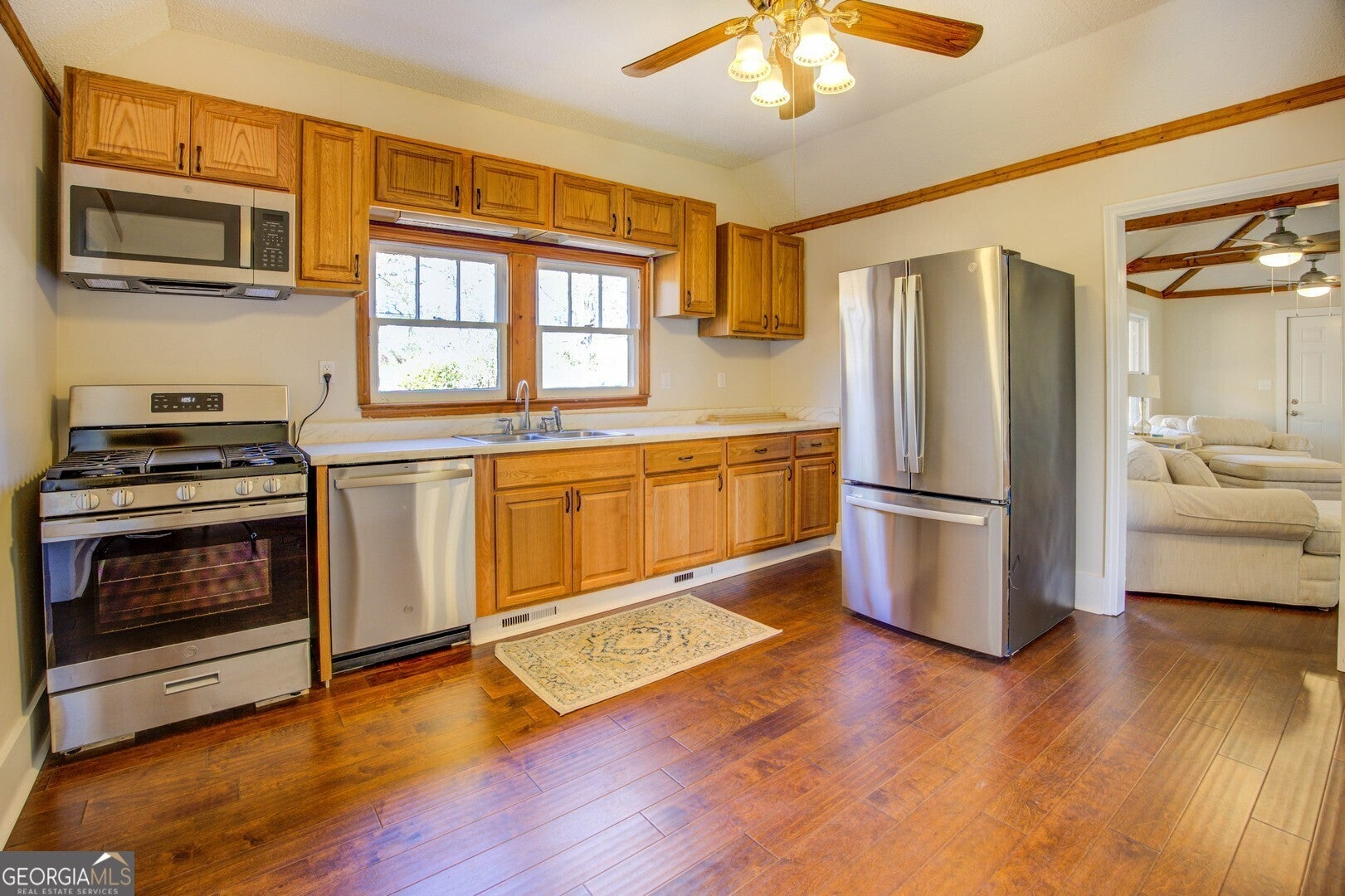- AppliancesDishwasher, Gas Water Heater, Microwave, Oven/Range (Combo), Refrigerator, Stainless Steel Appliance(s)