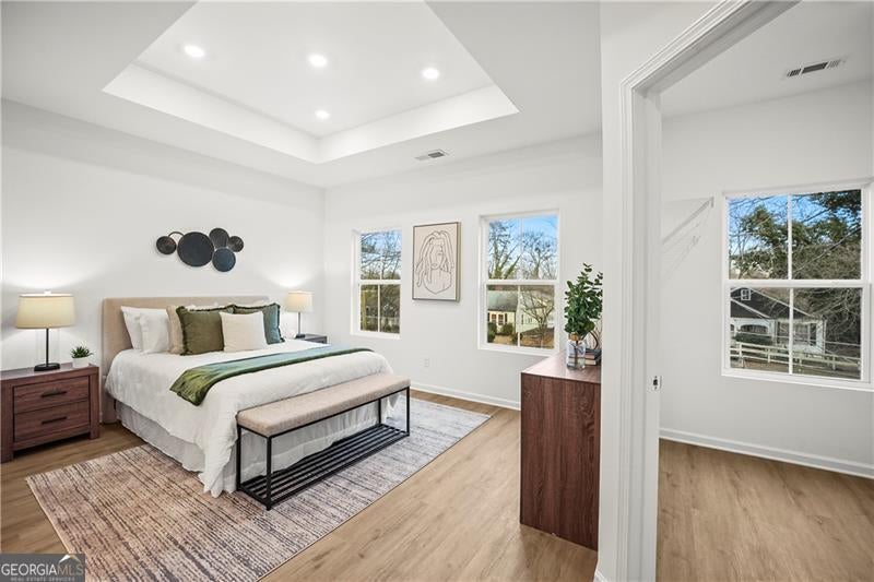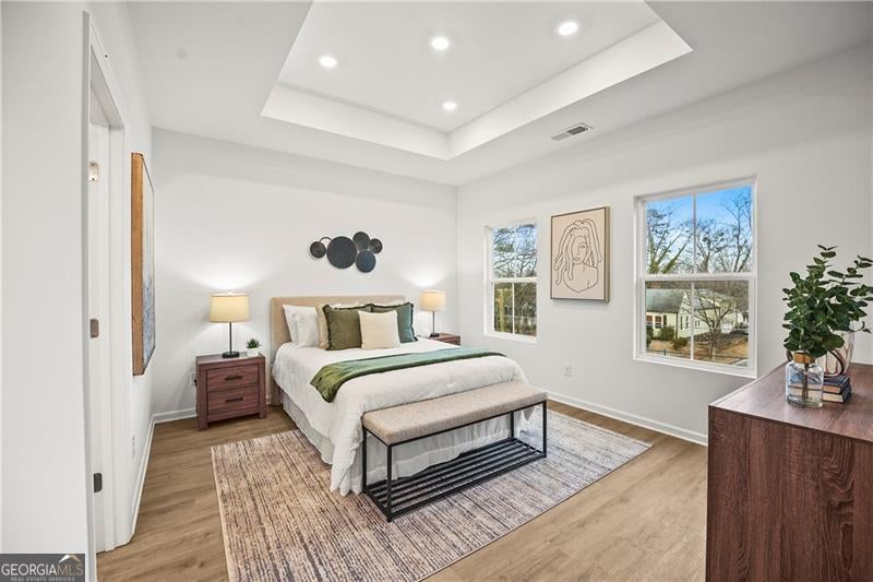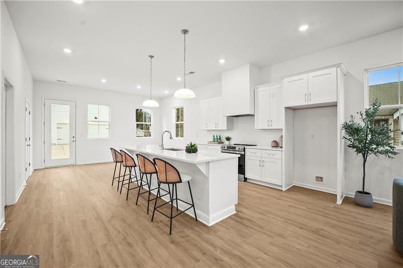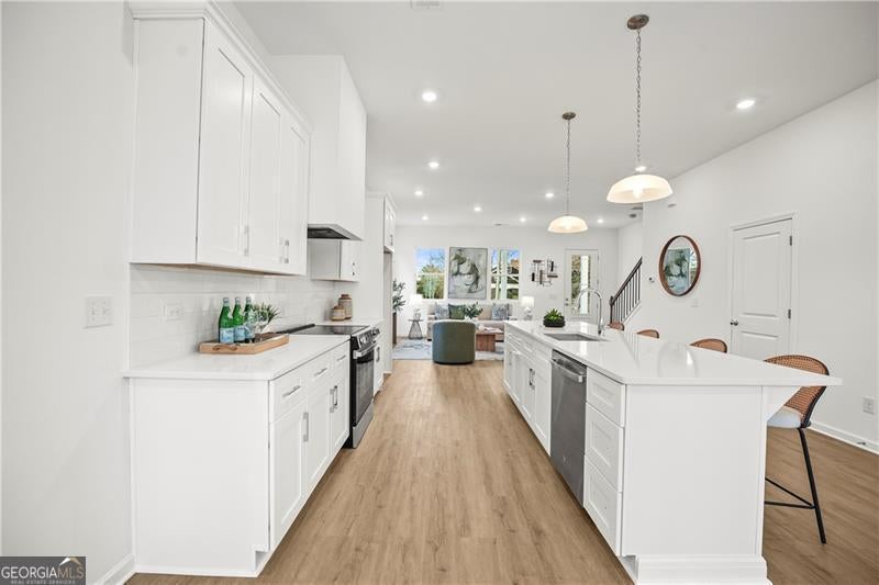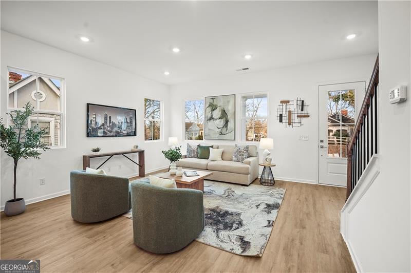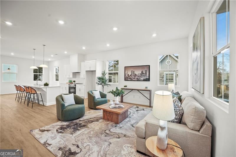 Exceptional custom new build by Altair Developments with a skyline view of downtown Atlant! A welcoming covered front porch leads you into a bright, modern open-concept layout designed for today's lifestyle. The main level impresses instantly with 10-foot ceilings, expansive living and dining areas, and a chef-ready kitchen featuring REAL wood cabinets and massive island with full quartz countertops, perfect for cooking, gathering, or hosting unforgettable parties. Designer can lighting and walls of windows flood the home with light day and night, creating an airy, uplifting atmosphere. Every detail has been thoughtfully crafted to support both lively entertaining and peaceful everyday living. The upper level continues the WOW factor with high ceilings and a luxurious owner's suite offering double vanities, a spacious walk-in closet with a window for added natural light providing a serene retreat! Additional bedrooms, a full guest bath with an oversized vanity, and a conveniently located laundry room complete this level with style and practicality. A major bonus is the detached 2-car garage, providing extra storage or space for a workbench. Plenty of yard space by the garage side and back so check it out! The long driveway adds even more parking flexibility. All of this sits on a quiet, serene street in Hot high demand West End location, just moments from I-20 and close to everything this vibrant neighborhood features.