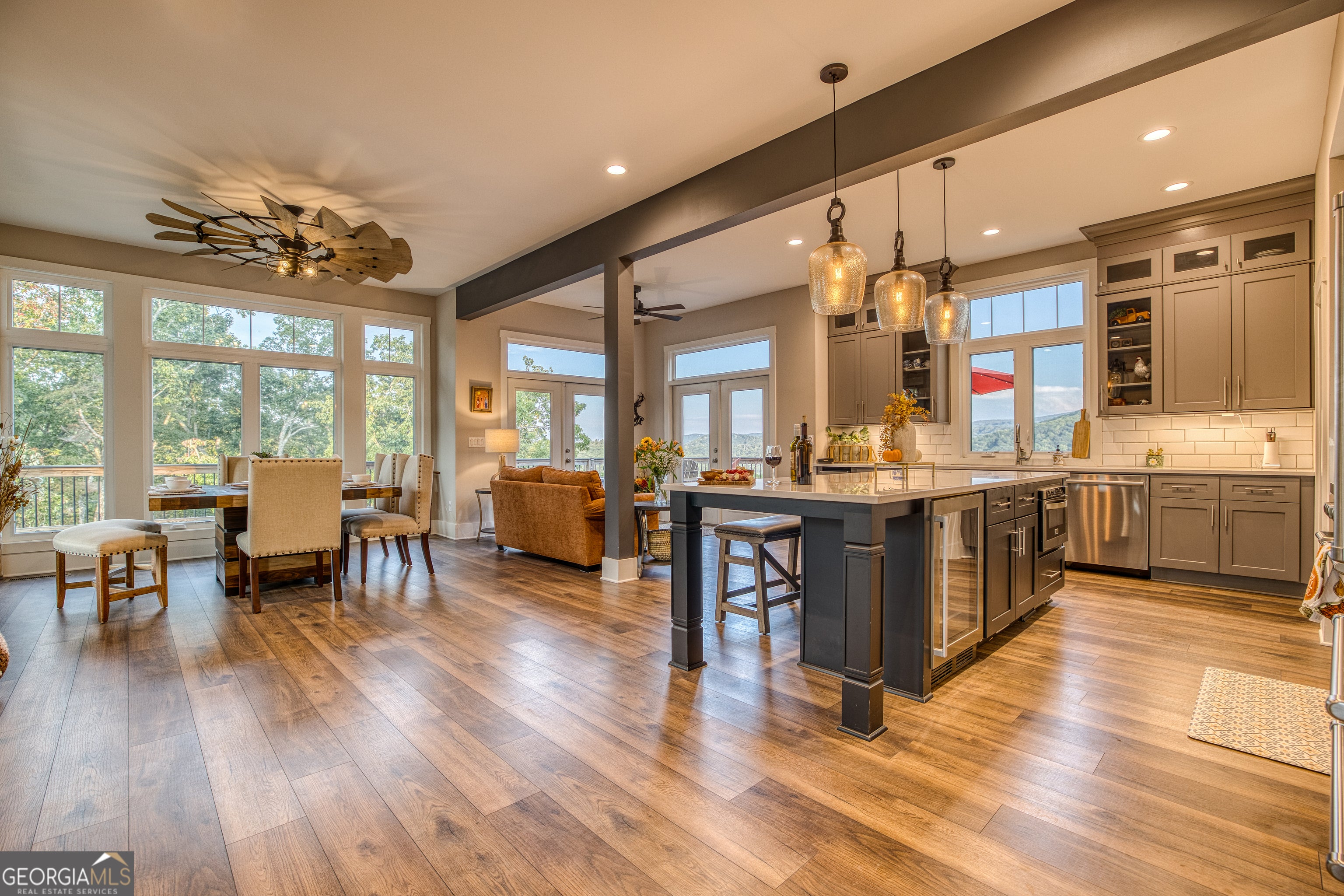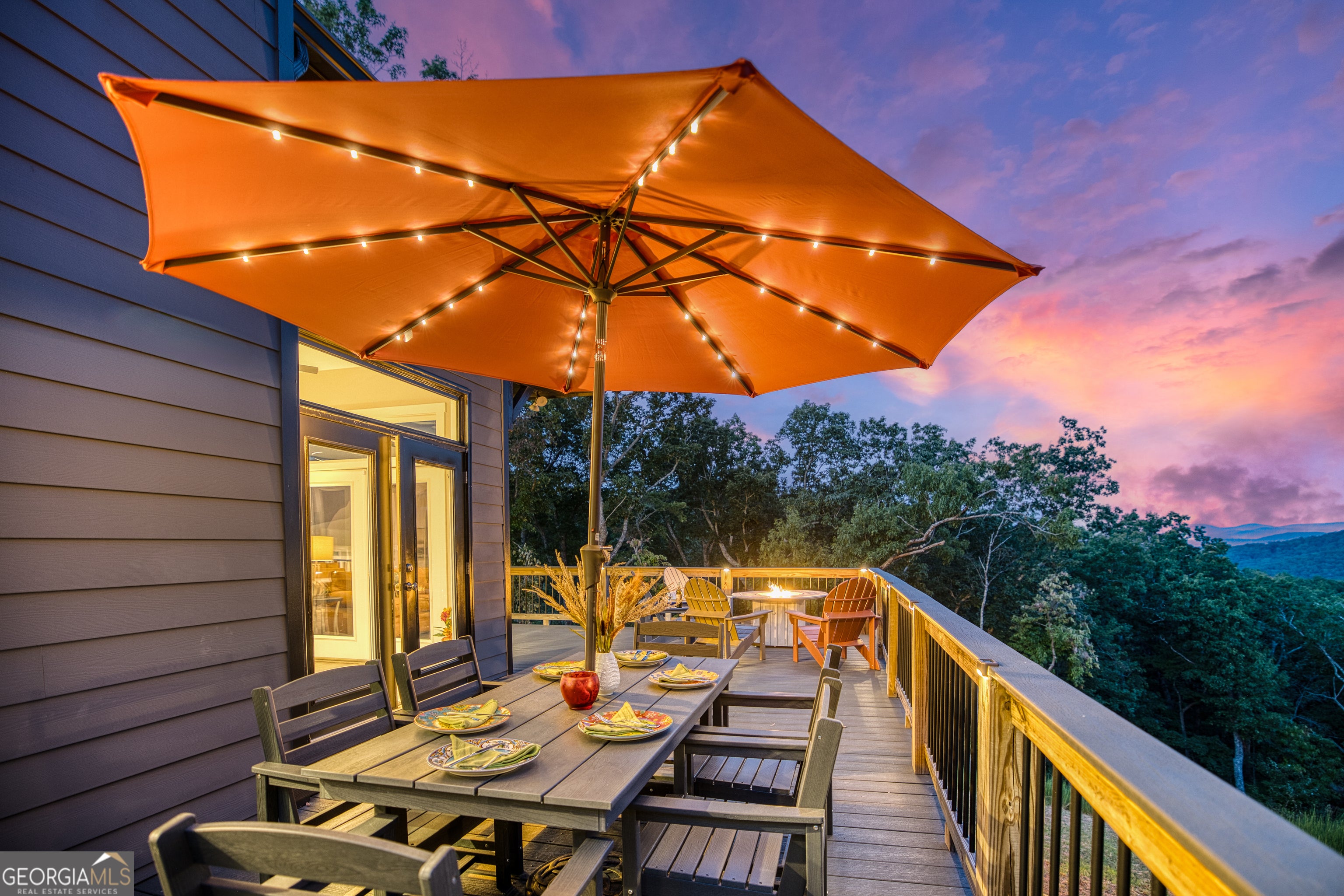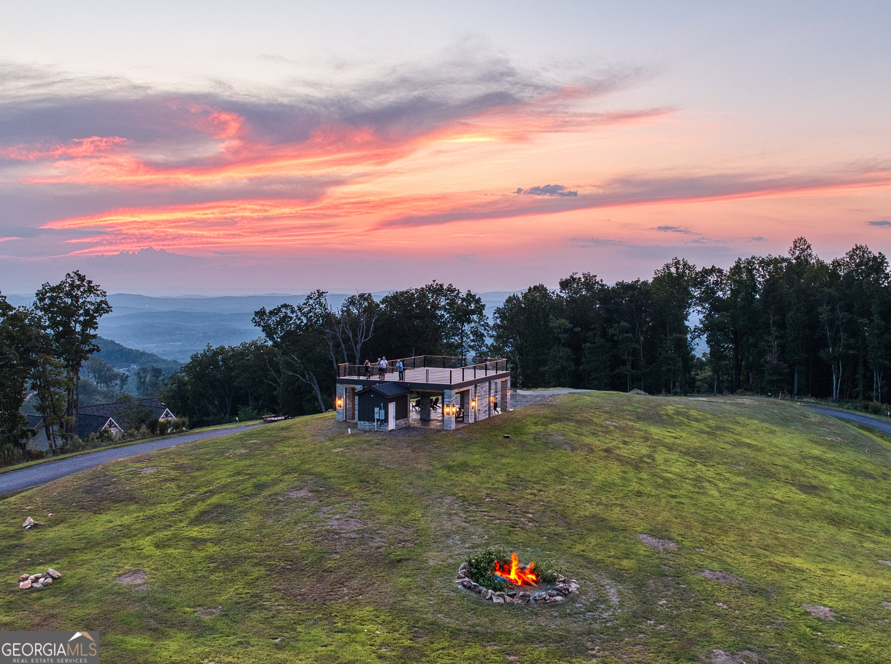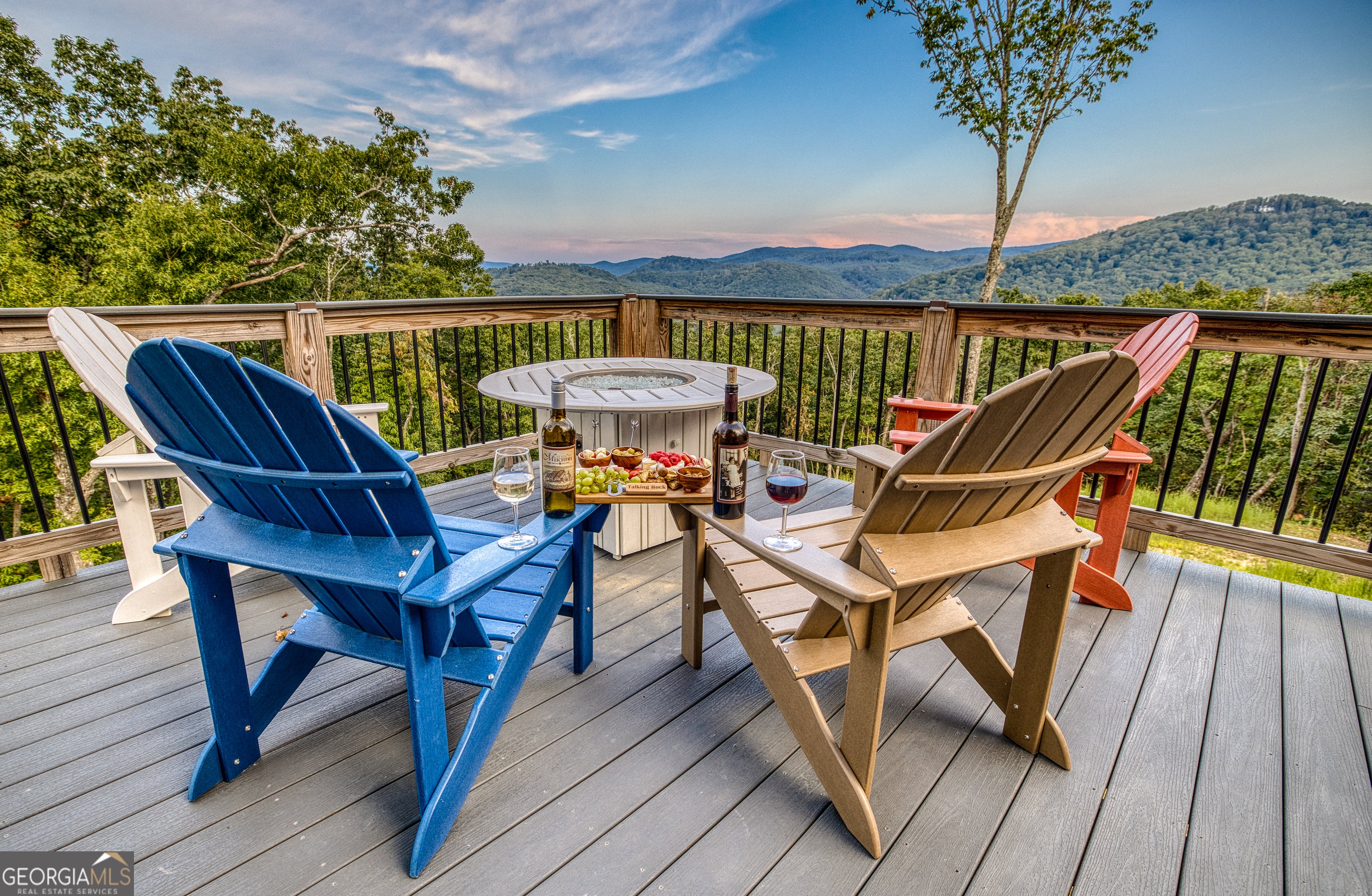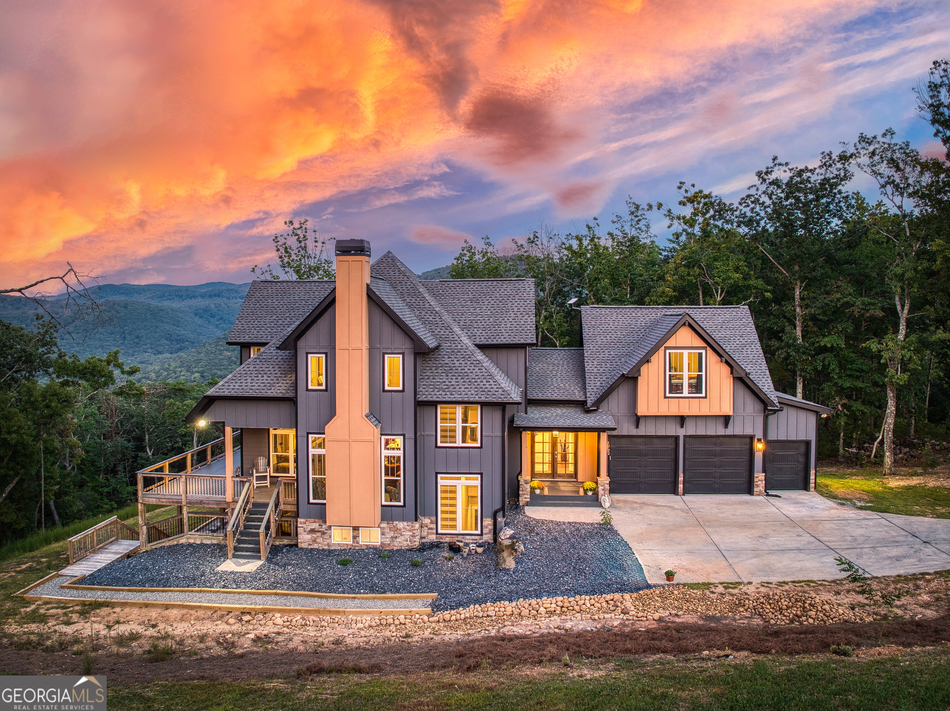 "Sunrise on the Ridge" is where mountain mornings, modern luxury, and effortless entertaining come together. Set within the gated community, The Vineyard at Yukon, this mountain retreat offers panoramic, long-range sunrise views that stretch across the ridgeline and define life in North Georgia's wine country. Thoughtfully designed for both gathering and quiet escape, the home blends modern finishes with rustic warmth, creating a space that feels equally suited for family vacations, full-time living, or a sought-after short-term rental. The main living level features an open great room anchored by a stone fireplace and expansive windows that frame the surrounding mountains. A chef's kitchen with modern appliances opens seamlessly into the dining and living spaces, making it easy to host everything from intimate weekends to unforgettable celebrations. Upstairs, the primary suite offers a peaceful sanctuary with sunrise views and a calming, spa-like atmosphere. Additional guest rooms provide comfort and flexibility, while the Summit Room, a fun dorm-style ensuite above the garage, adds a unique sleeping space ideal for guests, kids, or group stays. Outdoor living is a highlight of the home. A wraparound deck captures sweeping mountain views and is designed for lingering evenings with a dining area, cozy firepit, and private hot tub for stargazing after a day in the mountains or nearby vineyards. The location is equally compelling. The Vineyard at Yukon is known for some of the most breathtaking views in the region and sits directly across from the family-owned Chateau Meichtry Winery. The home is conveniently located across from the mountaintop pavilion and upcoming community pool. Downtown Ellijay is just fifteen minutes away, with a planned south gate offering easy access to downtown Jasper. "Sunrise on the Ridge" is your next peaceful mountain escape and a place to gather for generations.