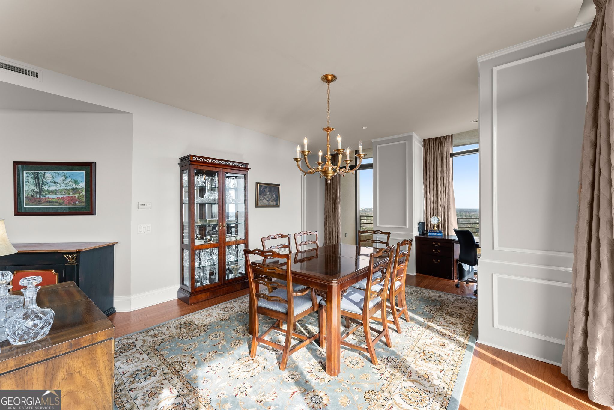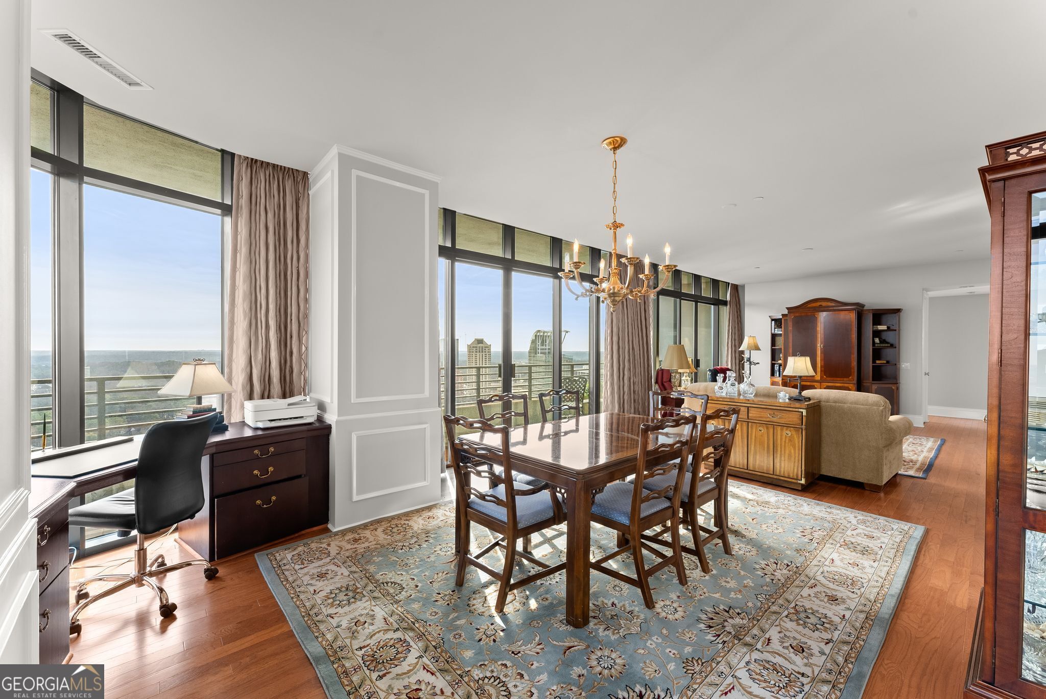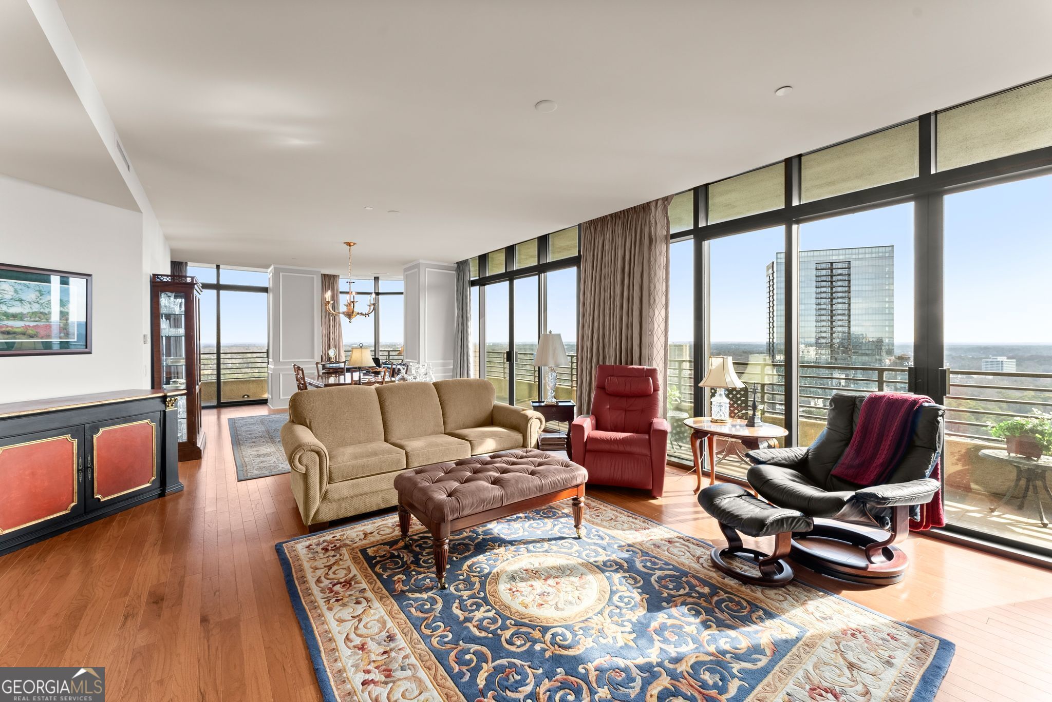Welcome to Residence 29E at the prestigious 750 Park Avenue - an elegant, spacious 2-bedroom, 2.5-bath home in one of Buckhead's most exclusive full-service high-rises. Featuring new hardwoods throughout, this nearly 2,300 sqft residence offers a private elevator foyer, multiple walk-out balconies with sweeping city views, and generously sized living and dining areas ideal for both relaxation and entertaining. The floor plan includes a bright primary suite with dual walk-in closets, a large bath with separate tub and shower, and access to a private balcony. The secondary ensuite bedroom offers excellent privacy for guests or an office. A separate powder room and a library/den provide additional flexible living space. Dedicated wine cellar, and storage unit are included. Park Avenue delivers an amenity experience more like a private club than a residence - featuring a heated saltwater pool with direct elevator access, a fitness center and sauna, climate-controlled wine cellar, two guest suites, an elegant event space with catering kitchen, EV charging, pet walk, and 24-hour monitored security. Its striking Art Deco design, accented by stained glass and brass details, brings a sense of enduring sophistication that pairs seamlessly with an effortless lock-and-leave lifestyle. Steps from Michelin-starred restaurants, premier shopping, and private clubs - and under 20 minutes to Hartsfield-Jackson - Residence 29E at Park Avenue places luxury, ease, and everyday convenience high above the center of Buckhead.