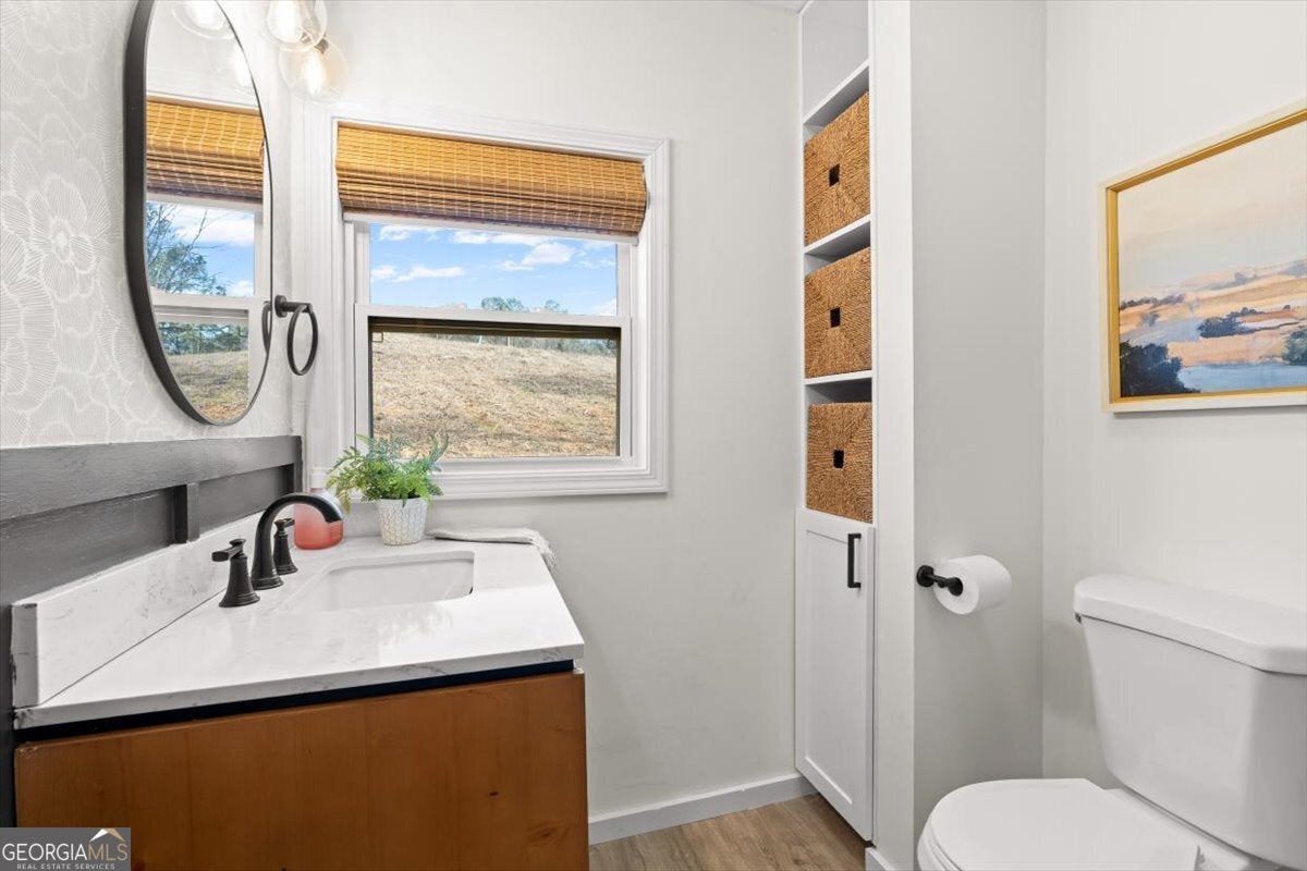 Tucked away in Bowdon yet just 8 minutes from I-20, this completely remodeled 4-bedroom, 2-bath ranch home offers the perfect blend of privacy, convenience, and recreational opportunity. Sitting nearly 800 feet off the road, the home is accessed by entering through your private gate and down long private driveway, creating a peaceful, secluded setting rarely found this close to town. Inside, the home has been thoughtfully renovated from top to bottom, featuring real hardwood floors throughout, brand-new kitchen cabinets and appliances, and both bathrooms fully remodeled with modern finishes. A gas tankless water heater adds efficiency and comfort for everyday living. The property spans almost 31 acres and is truly a sportsman's and nature lover's dream. In the backyard, enjoy a small landscaped area with river rock and a hot tub. Enjoy a 2-acre lake, established food plot, and wood duck boxes, offering excellent opportunities for hunting and outdoor recreation. An RV storage area with power, water, and septic hookups provides added flexibility for guests or travel enthusiasts. Adding even more value, the property includes a cleared 1-acre homesite ready to build, perfectly positioned to overlook the lake-ideal for a second residence, or to one day build your dream home. Whether you're looking for a private homestead, recreational retreat, or multi-use property with room to grow, this Bowdon gem delivers space, serenity, and unmatched versatility-all within easy access to I-20.