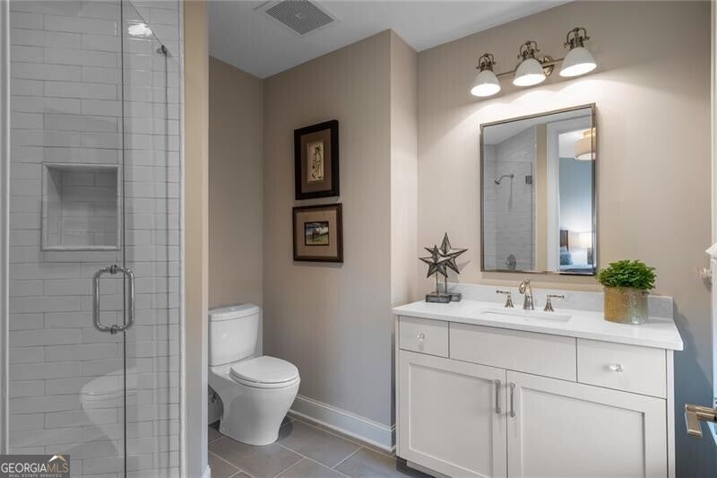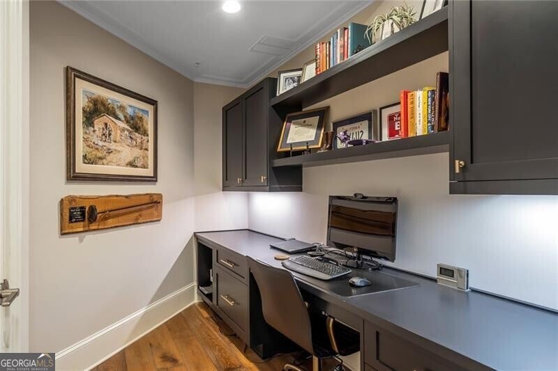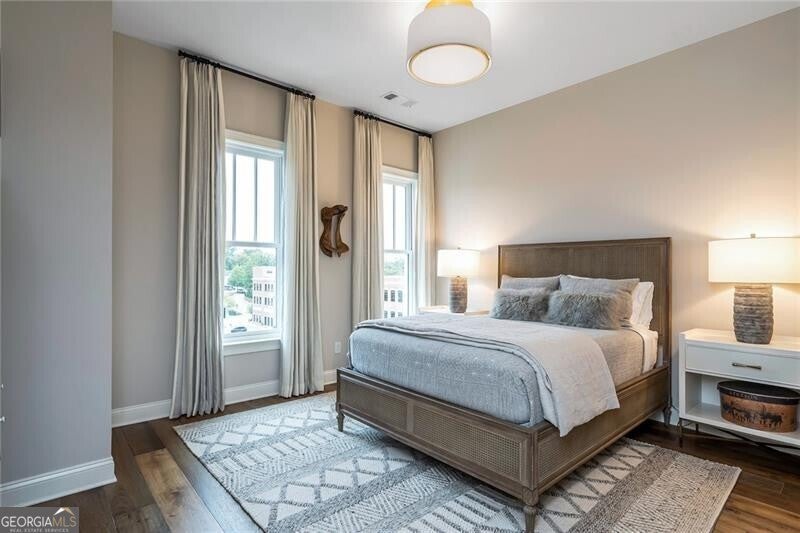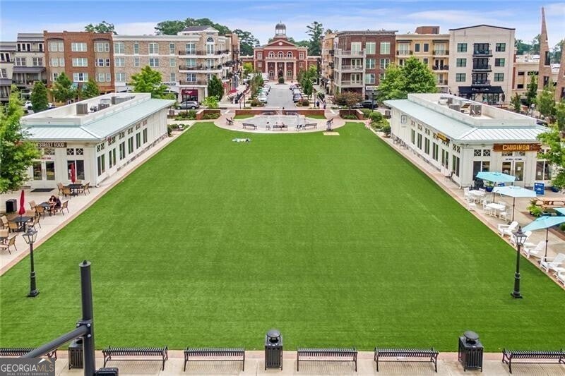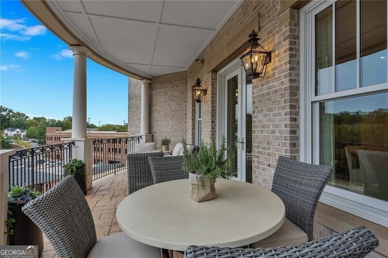 Rare Penthouse Opportunity in Downtown Alpharetta's Coveted Teasley Place - located in the very heart of Downtown Alpharetta. Experience one-level, low-maintenance luxury living with secure gated access and two designated parking spaces-just steps from premier shopping, dining, and entertainment. The current owners spared no expense in creating a home that blends refined elegance with modern comfort. Every detail has been thoughtfully curated, from upgraded trim and designer lighting to marble surfaces in the kitchen, primary bath, and fireplace surround. The chef's kitchen is a true centerpiece, featuring Wolf and Sub-Zero appliances, solid brass plumbing fixtures, custom handmade imported tile backsplash, premium hardware, and a custom walk-in pantry that maximizes both beauty and functionality. The primary suite is a serene retreat, showcasing added trim details, custom draperies, and custom-designed closets. The spa-like bath offers an elegant soaking tub, glass-enclosed shower, and luxurious marble finishes that create the perfect atmosphere for relaxation. Two additional bedrooms, each with ensuite baths, provide comfort and privacy for family or guests. Custom built-in cabinetry enhances the office, bar area, and vestibule leading to the primary suite, offering a seamless blend of design and organization. Enjoy the best of indoor-outdoor living with two spacious balconies overlooking Canton and Academy Streets. One balcony is designed for year-round enjoyment, complete with a fireplace, grill, TV, and custom privacy screen-perfect for entertaining or relaxing in comfort. Residents of Teasley Place enjoy access to exceptional community amenities, including a climate-controlled storage area, a park-like gathering space, bocce court, fire pit, herb garden, and a pavilion with fireplace and TV. A well-equipped fitness center completes the picture, providing the ultimate in convenience and lifestyle. The HOA includes Premium TV package with all channels, 50 Hours of cloud DVR storage, high speed internet, trash, and concierge. Teasley Place Penthouse homes are rarely available, and this exceptional residence stands apart for its craftsmanship, comfort, and premier location in Alpharetta's most desirable address.