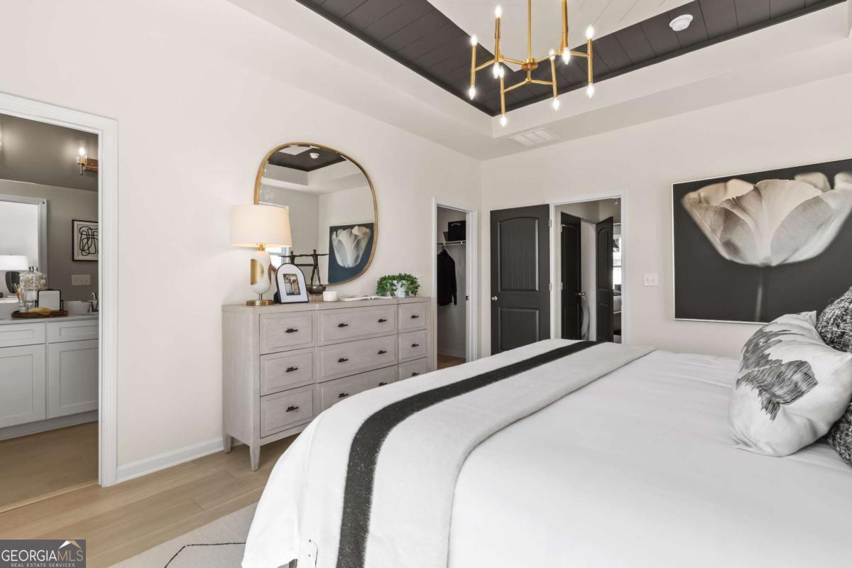 - Interior FeaturesHigh Ceilings, Pulldown Attic Stairs, Split Bedroom Plan, Tray Ceiling(s), Vaulted Ceiling(s), Walk-In Closet(s)