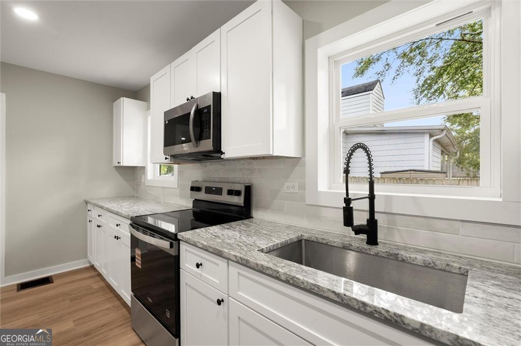 Fully renovated 3BR / 2BA home with approximately 1,700 sqft and a partially finished basement. Everything is brand new: roof, HVAC, kitchen, bathrooms, flooring, and systems. This home offers modern comfort with the charm of an established neighborhood. Enjoy a fenced backyard, private driveway parking, and extra flexible space in the basement, perfect for a home office, gym, or additional living area. Located minutes from downtown Atlanta, the BeltLine, Mercedes-Benz Stadium, and major highways, this home is ideal for tenants looking for space, convenience, and a move-in-ready property. Washer and dryer connections available. Large yard. Quiet street. Ready for immediate occupancy.