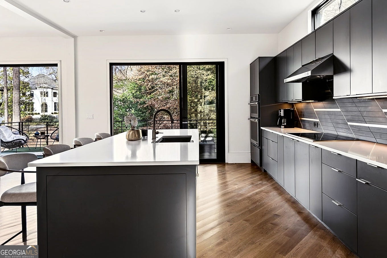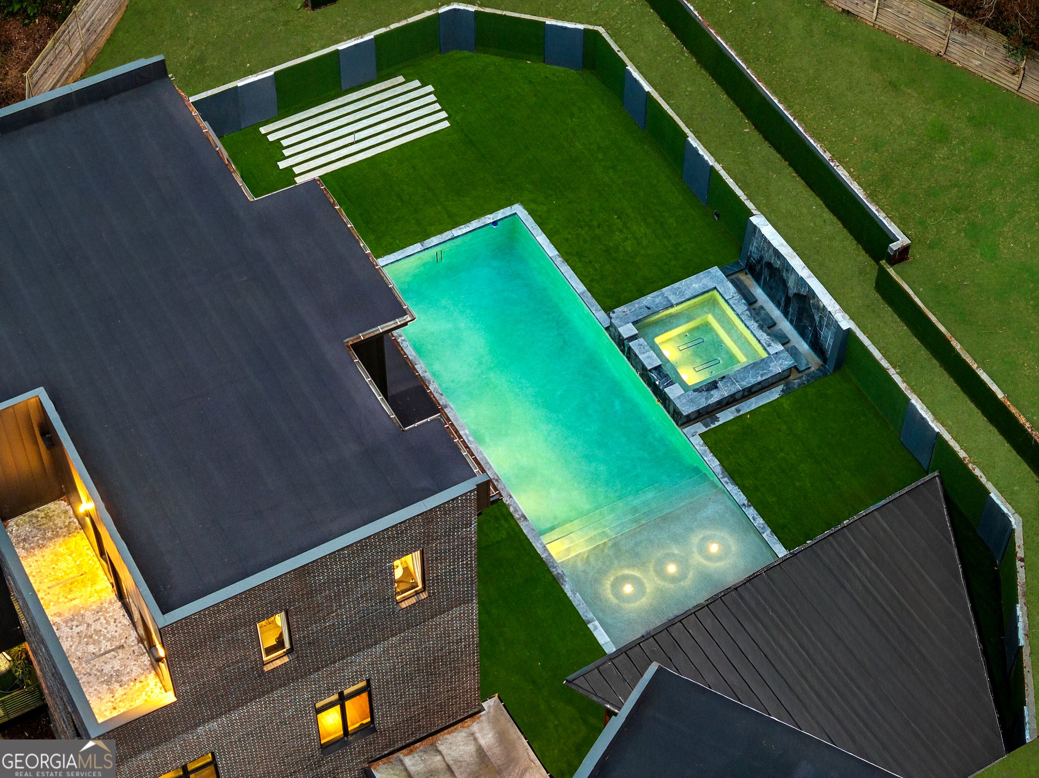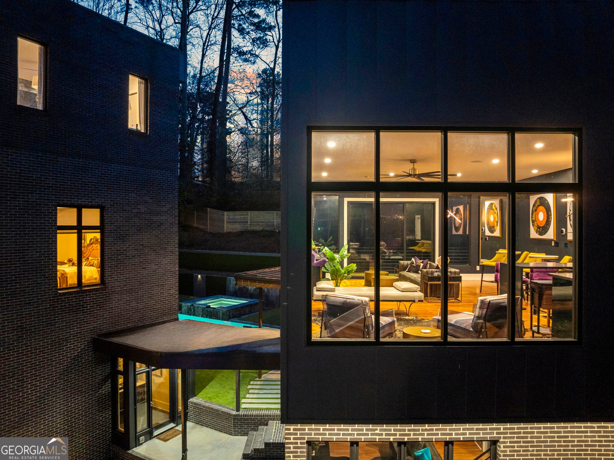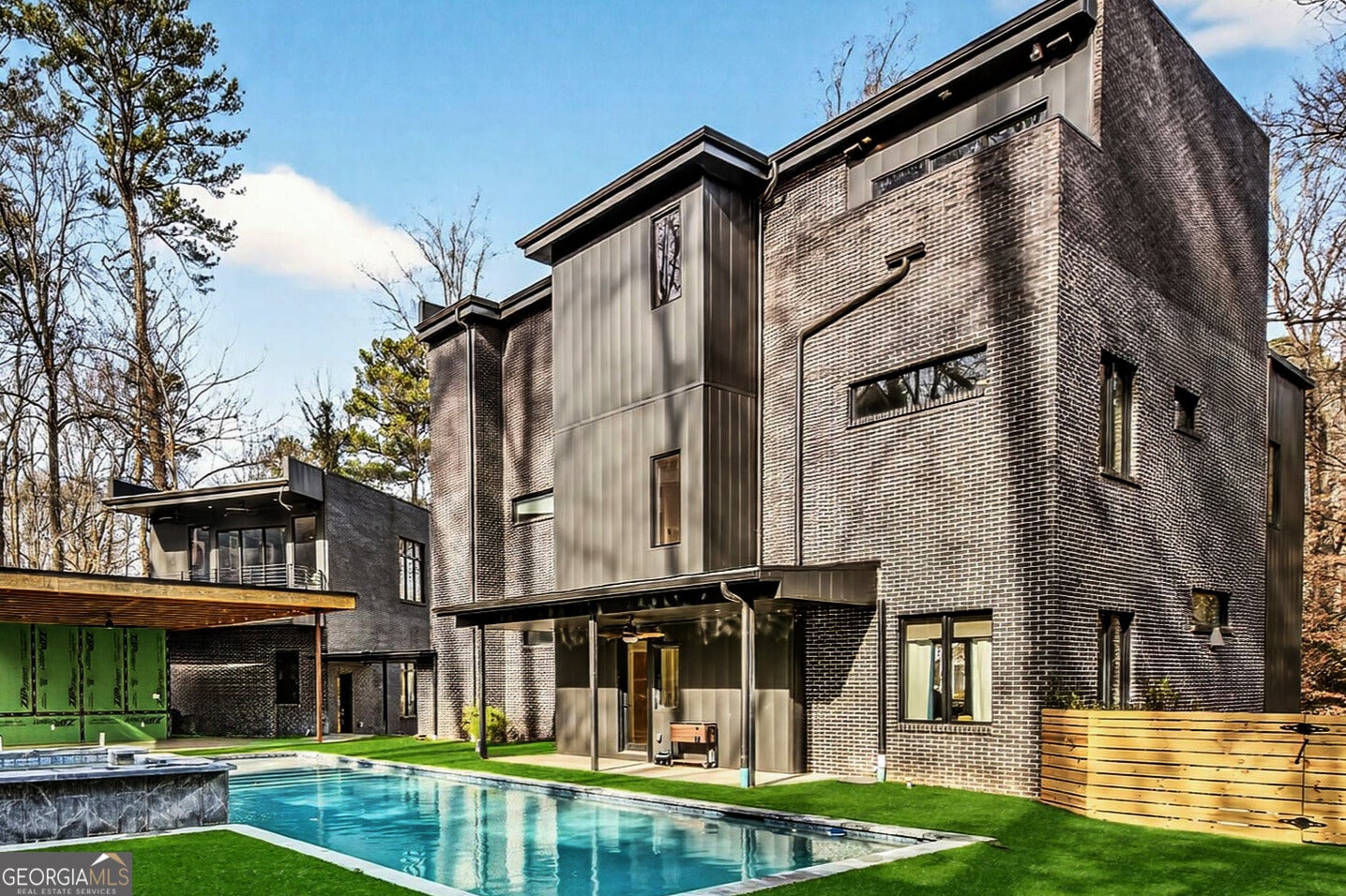 Tucked into one of North Buckhead's most coveted residential enclaves, this striking contemporary masterpiece by Bongers Homebuilders delivers architectural distinction, refined luxury, and exceptional privacy on a rare 0.75-acre estate lot. Thoughtfully elevated by the current owner with significant improvements-including the addition of a resort-style pool + spa and expanded living with a newly added 4th level on the main residence and 3rd level on the guest/pool house-this design-forward compound offers approximately 7,396 square feet of impeccably curated living space with a seamless flow for both everyday living and elevated entertaining. Set behind a gated entry with advanced security, the home pairs bold geometry with warmth and effortless indoor/outdoor living-zoned for Sarah Smith Elementary and moments to the city's best parks, shopping, and dining. From the moment you arrive, the design is unmistakable: a refined composition of dark brick, sleek metal cladding, and cantilevered volumes, punctuated by black-framed, floor-to-ceiling windows and curated exterior lighting that makes the home glow at dusk. A glass-enclosed foyer introduces soaring ceilings and an open, gallery-like interior where natural light moves beautifully across clean lines and premium finishes. Light-filled living spaces flow effortlessly-anchored by a stunning living room wrapped in oversized corner-window walls, and a refined dining space opening to a large covered terrace. The chef's kitchen is pure modern luxury with an oversized island, streamlined cabinetry, high- end integrated appliances (JennAir), beverage + wine refrigeration, and a dramatic linear backsplash complemented by sophisticated hardware and lighting details. A built-in keeping room/den adds the perfect everyday retreat. A sculptural open staircase keeps sightlines bright and airy across levels. The expanded owner's suite is a standout with statement corner glazing, a custom walk-in closet suite, and a spa- inspired bath with dual vanities and a large seamless-glass shower. Additional bedrooms are generously scaled with well-appointed baths and a convenient laundry level, while the newly added top floor offers incredible flexibility-ideal as an additional primary suite. The terrace level delivers everyday function with a spacious recreation area, a flex room currently used as a gym, a full bath, and additional unfinished space for future expansion. Practicality is exceptional with a third-car carport, oversized two-car garage, and a truly rare feature: an underground tunnel connecting the main residence to the guest/pool house, creating seamless all-weather access and an elevated compound feel. Outdoors, the backyard is a showpiece-a sleek rectangular pool and spa with water feature, multiple turf terraces, and modern retaining walls that create a private, resort-caliber setting for entertaining. The finished guest/pool house-expanded with its own additional level-offers ideal space for guests, au pair potential, or a dedicated work-from-home escape with oversized windows and bath amenities. Perfectly positioned for a true Buckhead lifestyle-close to Chastain Park, top private schools, premier shopping and dining, and everyday conveniences, with easy access to Midtown, Downtown, and the perimeter-this is a rare opportunity to own a design-forward, amenity-rich modern residence in one of Atlanta's most connected neighborhoods and most desirable school districts.