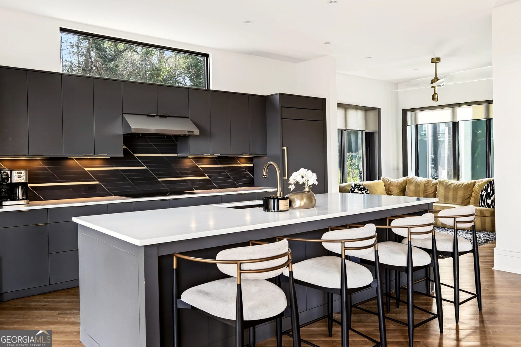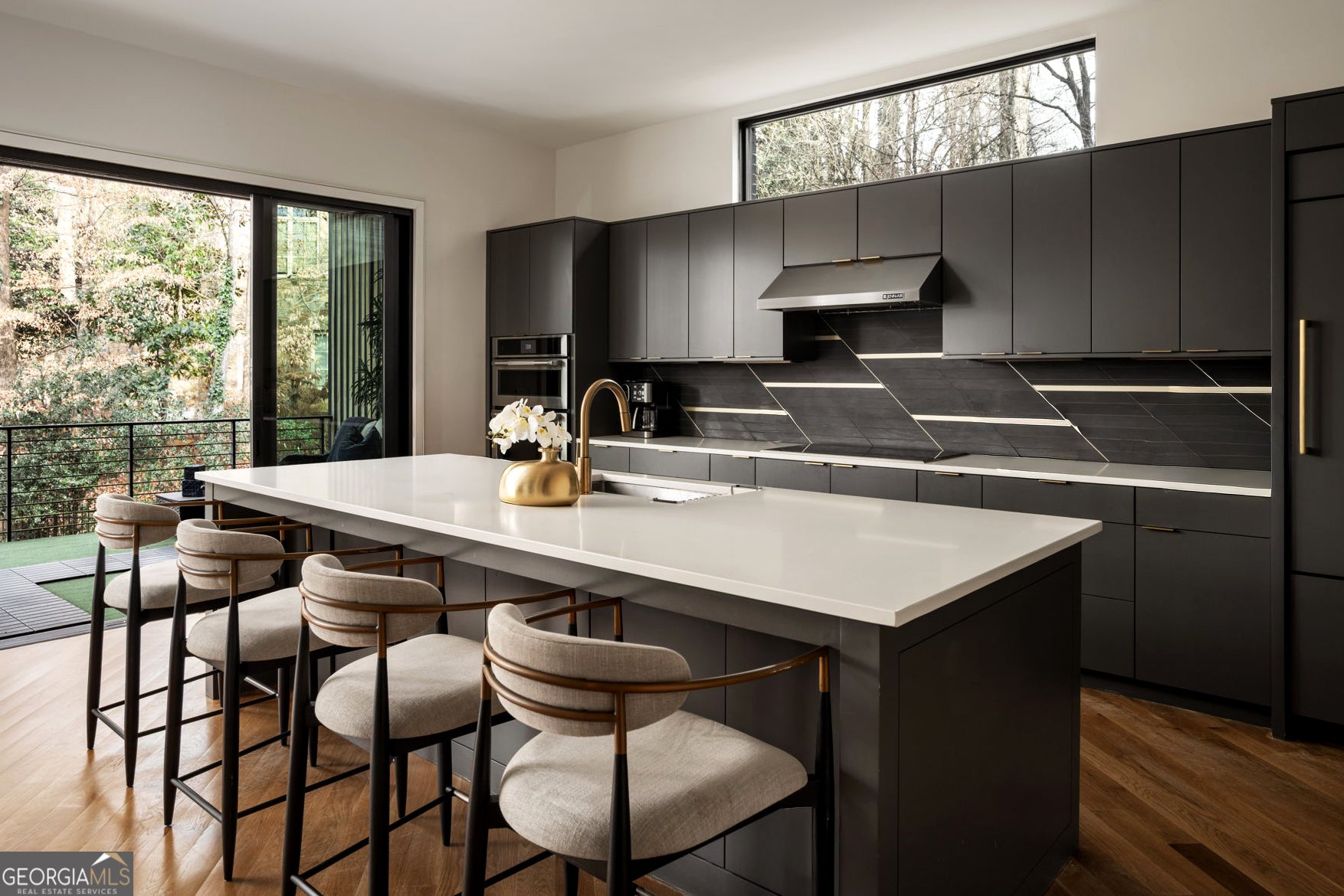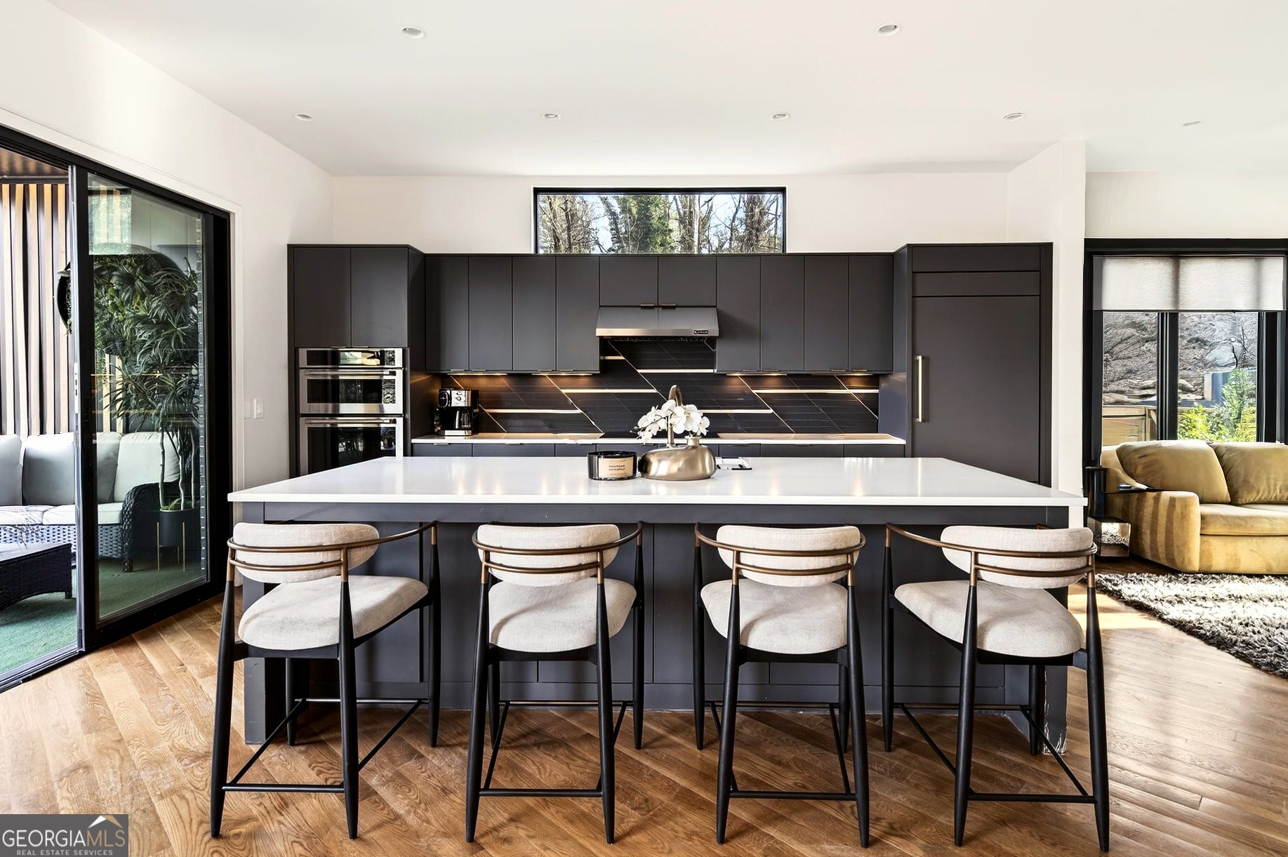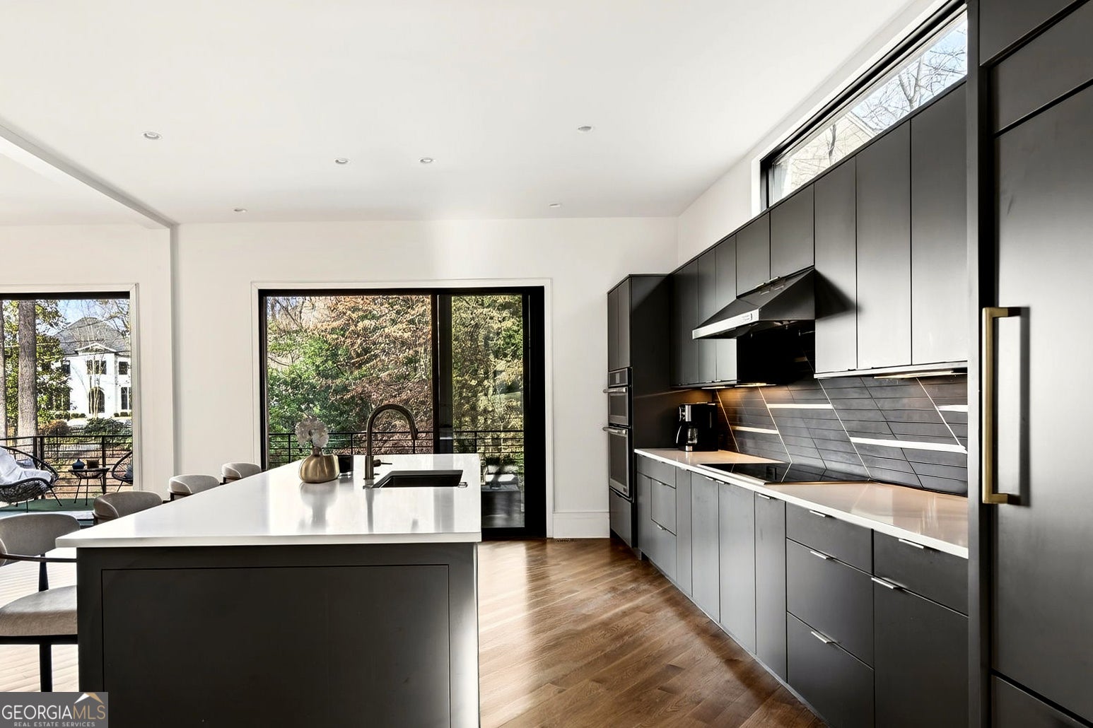 Tucked into one of North Buckhead's most coveted residential enclaves, this striking contemporary masterpiece by Bongers Homebuilders delivers architectural distinction, refined luxury, and exceptional privacy on a rare 0.75-acre estate lot. Thoughtfully elevated by the current owner with significant improvements-including the addition of a resort-style pool + spa and expanded living with a newly added 4th level on the main residence and 3rd level on the guest/pool house-this design-forward compound offers approximately 7,396 square feet of impeccably curated living space with a seamless flow for both everyday living and elevated entertaining. Set behind a gated entry with advanced security, the home pairs bold geometry with warmth and effortless indoor/outdoor living-zoned for Sarah Smith Elementary and moments to the city's best parks, shopping, and dining. From the moment you arrive, the design is unmistakable: a refined composition of dark brick, sleek metal cladding, and cantilevered volumes, punctuated by black-framed, floor-to-ceiling windows and curated exterior lighting that makes the home glow at dusk. A glass-enclosed foyer introduces soaring ceilings and an open, gallery-like interior where natural light moves beautifully across clean lines and premium finishes. Light-filled living spaces flow effortlessly-anchored by a stunning living room wrapped in oversized corner-window walls, and a refined dining space opening to a large covered terrace. The chef's kitchen is pure modern luxury with an oversized island, streamlined cabinetry, high- end integrated appliances (JennAir), beverage + wine refrigeration, and a dramatic linear backsplash complemented by sophisticated hardware and lighting details. A built-in keeping room/den adds the perfect everyday retreat. A sculptural open staircase keeps sightlines bright and airy across levels. The expanded owner's suite is a standout with statement corner glazing, a custom walk-in closet suite, and a spa- inspired bath with dual vanities and a large seamless-glass shower. Additional bedrooms are generously scaled with well-appointed baths and a convenient laundry level, while the newly added top floor offers incredible flexibility-ideal as an additional primary suite. The terrace level delivers everyday function with a spacious recreation area, a flex room currently used as a gym, a full bath, and additional unfinished space for future expansion. Practicality is exceptional with a third-car carport, oversized two-car garage, and a truly rare feature: an underground tunnel connecting the main residence to the guest/pool house, creating seamless all-weather access and an elevated compound feel. Outdoors, the backyard is a showpiece-a sleek rectangular pool and spa with water feature, multiple turf terraces, and modern retaining walls that create a private, resort-caliber setting for entertaining. The finished guest/pool house-expanded with its own additional level-offers ideal space for guests, au pair potential, or a dedicated work-from-home escape with oversized windows and bath amenities. Perfectly positioned for a true Buckhead lifestyle-close to Chastain Park, top private schools, premier shopping and dining, and everyday conveniences, with easy access to Midtown, Downtown, and the perimeter-this is a rare opportunity to own a design-forward, amenity-rich modern residence in one of Atlanta's most connected neighborhoods and most desirable school districts.