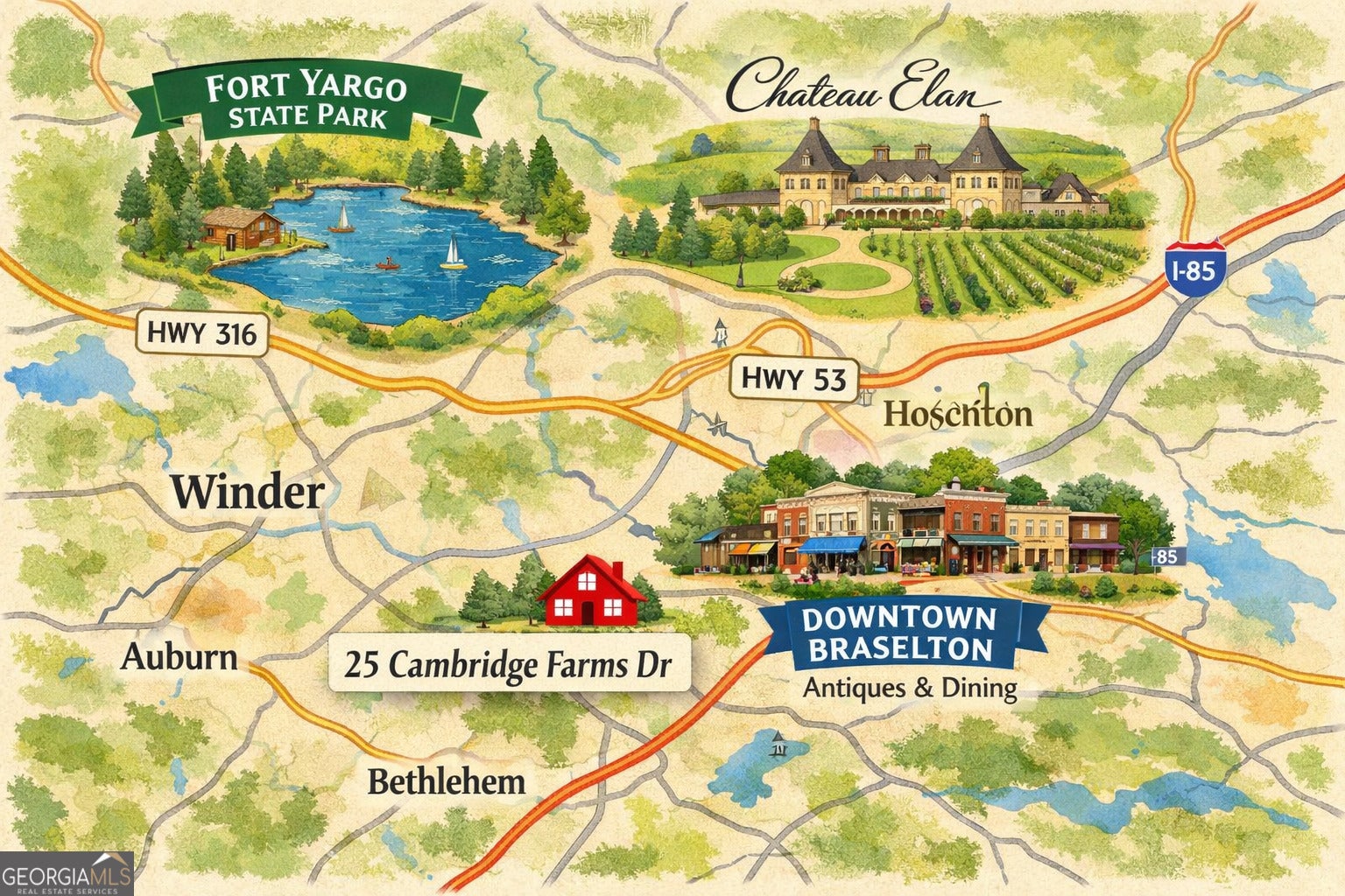 Over an ACRE in Jackson County - your second chance at something special! There's something about Hoschton...Maybe it's the space. Maybe it's the quiet. Maybe it's knowing you're minutes from everything, but not in the middle of it. Welcome to 25 Cambridge Farms Drive - where your next chapter begins. This home offers the kind of layout that just works. Room to gather, room to spread out, and room to grow. Whether it's mornings with coffee in the kitchen, evenings winding down after a long day, or weekends filled with friends and family - this is a home designed for real life. Located in one of the fastest-growing areas around, you're just minutes from Chateau Elan Winery & Resort, with quick access to I-85, making everything from dining to commuting simple. And here's the opportunity - this home is back on the market through no fault of the seller. Sometimes the right home comes around twice... but not often. Unlock your next chapter - before someone else does. ** Seller offering $5000 in Closing Costs ** **Buyers will receive $2,000 lender credit if using preferred lender Presidential Mortgage