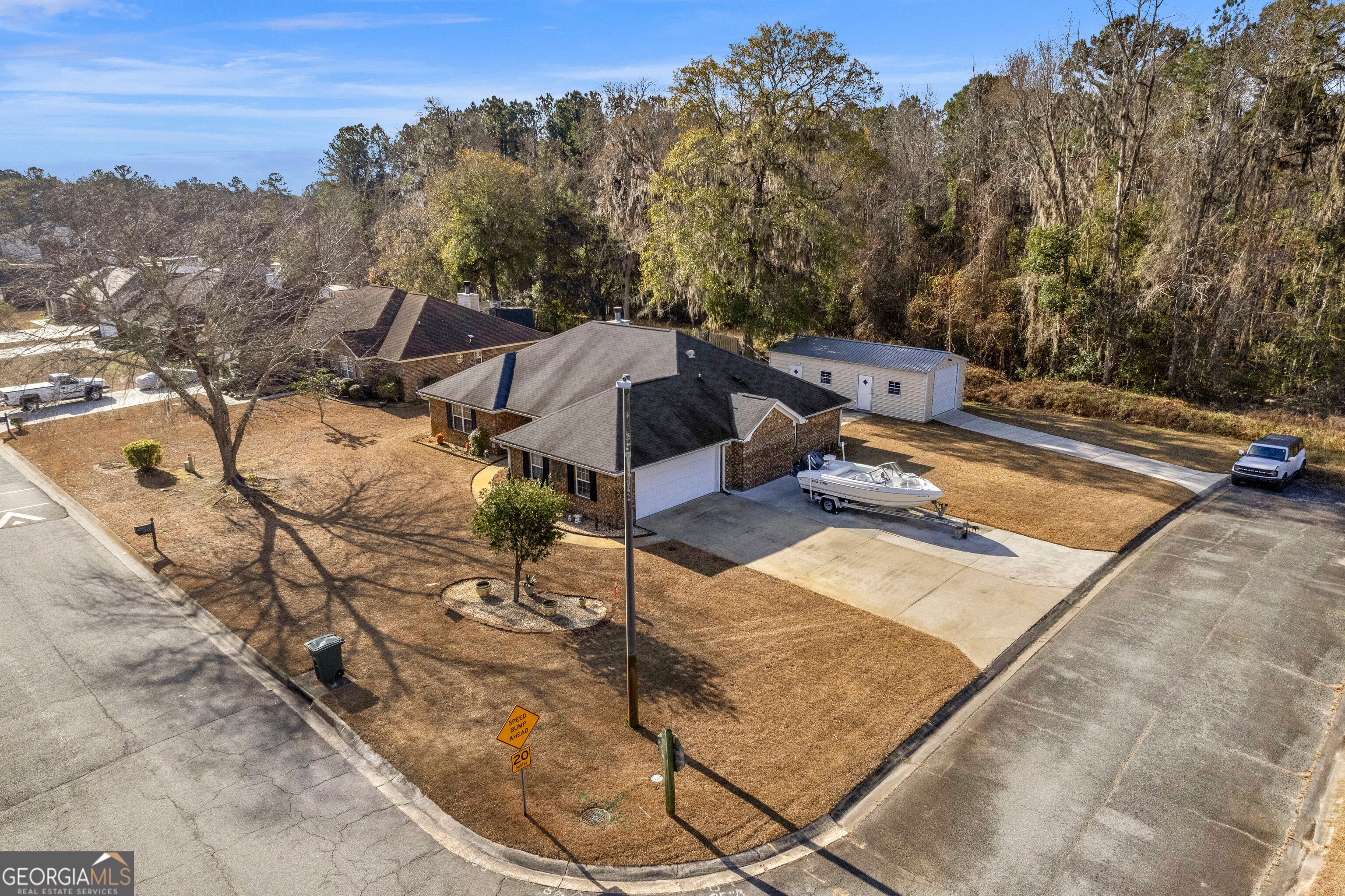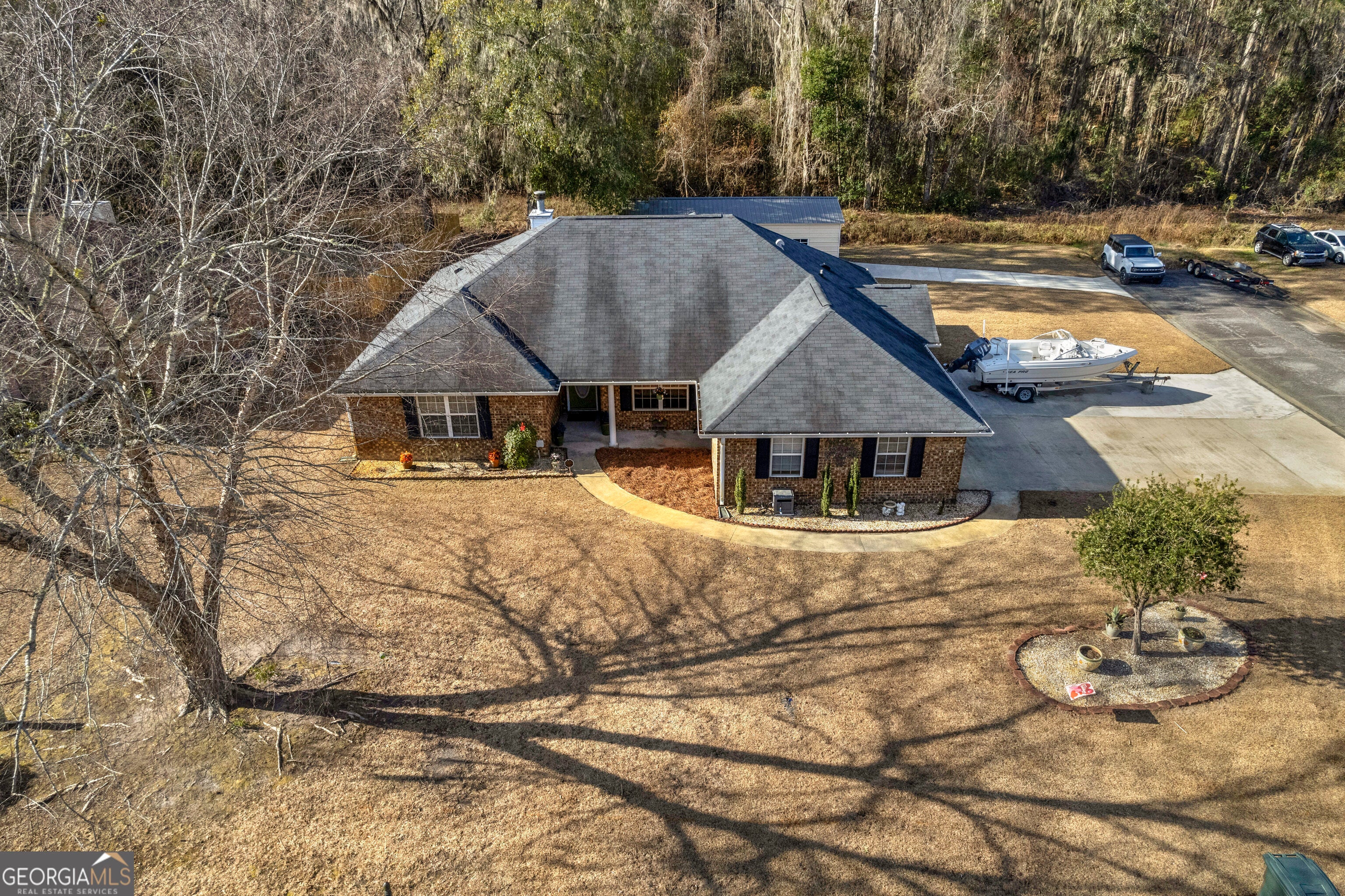 BACK ON THE MARKET AT NO FAULT TO THE SELLER! Welcome to this beautifully maintained all-brick home situated on a spacious .31-acre corner lot in a highly convenient Hinesville location. Offering 4 bedrooms and 2 full baths, this property blends comfort, functionality, and standout features that are hard to find. Step inside to discover wood flooring, all-wood cabinetry, and stainless steel appliances that bring timeless style to the heart of the home. A heated sunroom provides the perfect year-round retreat for morning coffee, relaxing evenings, or additional entertaining space. The home is equipped with a new HVAC system installed in 2023, ensuring comfort and efficiency for years to come. Outside, the property continues to impress with an outdoor entertaining area, an attached 2-car garage, and an additional metal building with its own separate driveway-ideal for storage, hobbies, or a workshop. Located minutes from Fort Stewart, as well as nearby dining, shopping, and countless amenities, this home offers convenience without compromise. NO HOA means more freedom to enjoy your property your way. A rare find with exceptional features and a prime location-this home is ready to welcome its next owner.