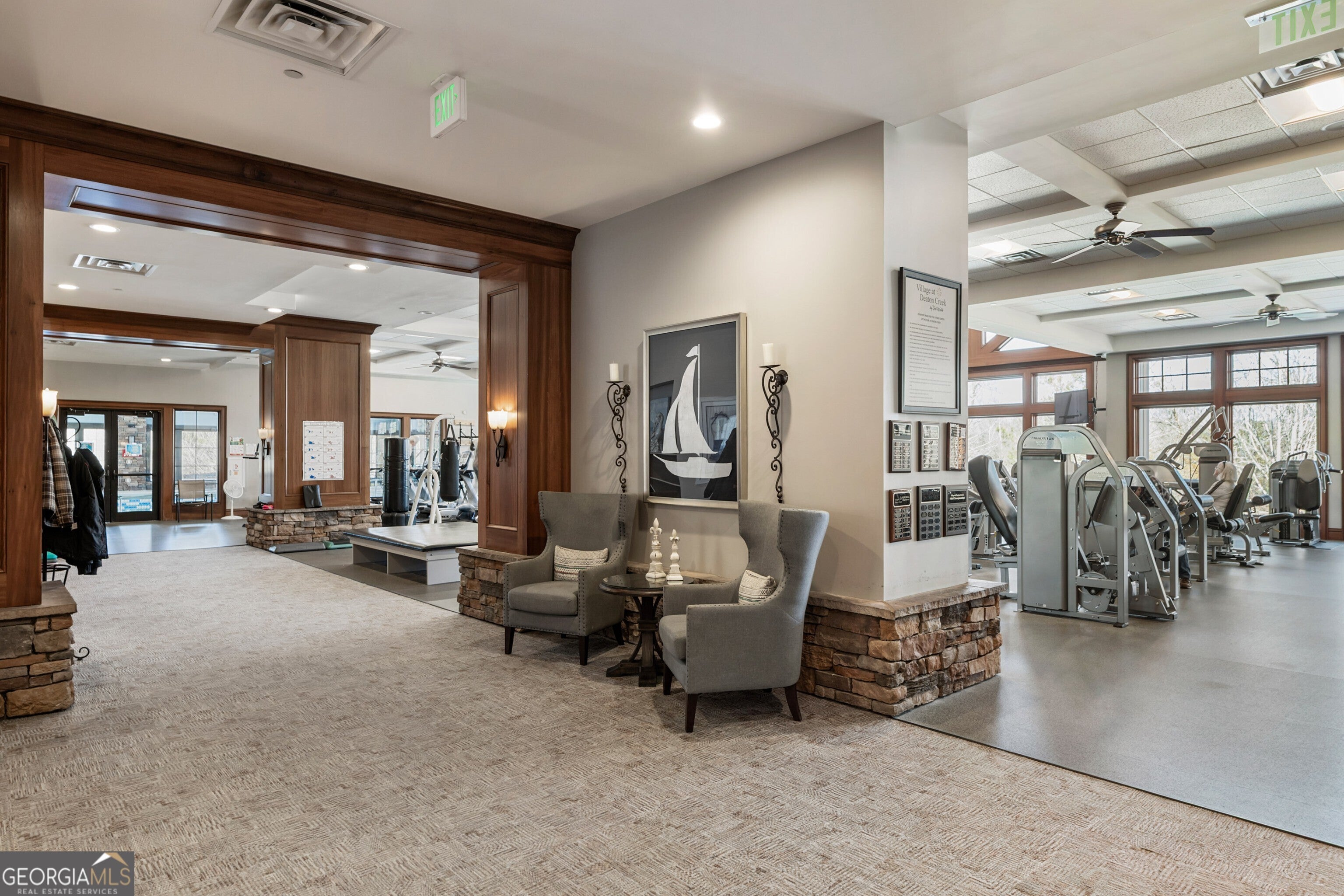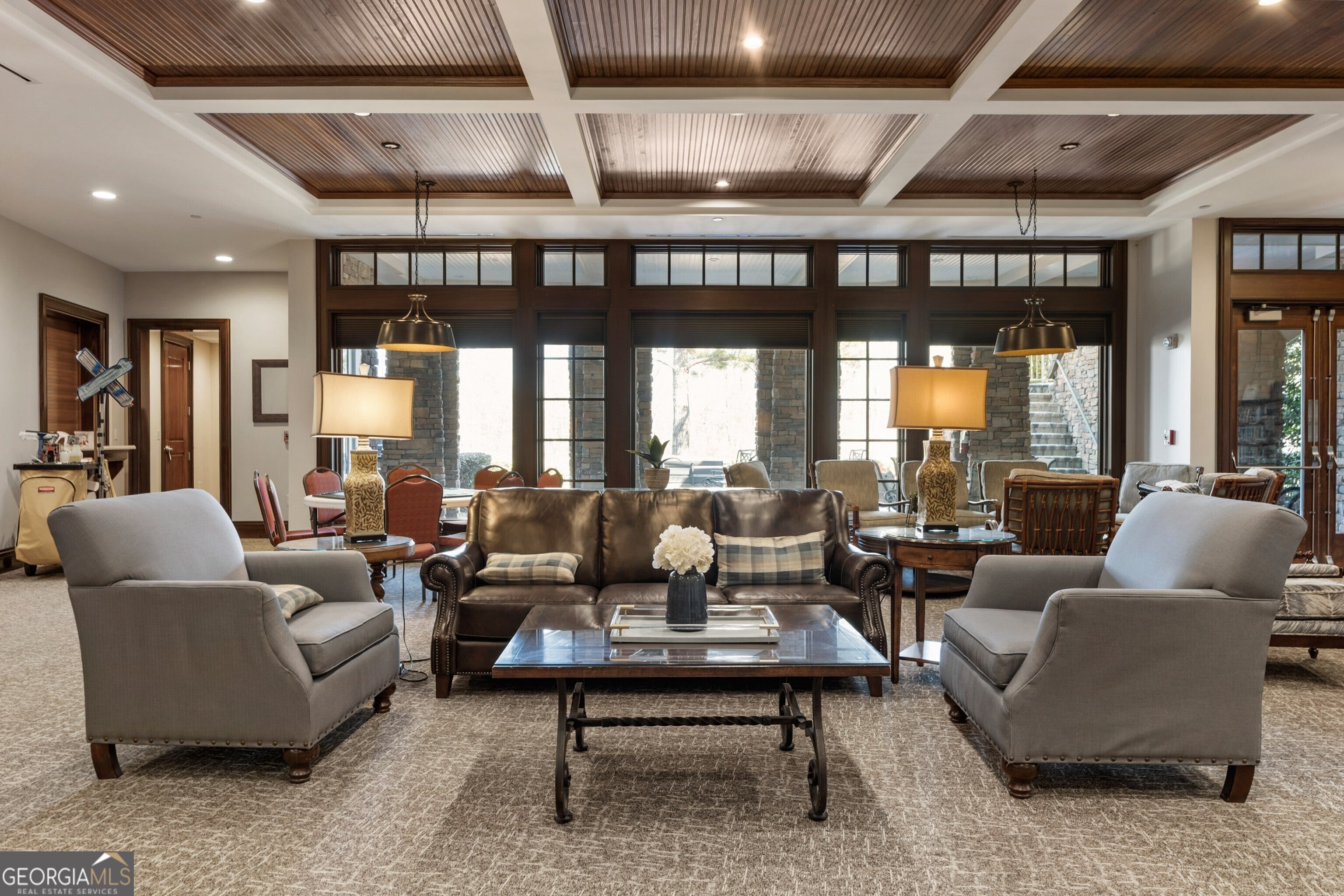 There's something immediately comforting about 5960 Chimney Rock Dr a home that feels thoughtfully cared for and ready to be enjoyed from the moment you arrive. Located within the sought-after Village at Deaton Creek, this beautifully updated ranch home offers an easy, relaxed way of living in one of North Georgia's most established 55+ communities. The Vernon Hill floor plan is designed with everyday comfort in mind, offering three bedrooms, two full baths, a dedicated office, and a dining room that invites you to linger over meals and meaningful conversations. The entrance foyer warmly welcomes guests and opens to the living room, which is centered around a fireplace, making the space feel like home year-round perfect for quiet evenings or casual gatherings with friends. The heart of the home is the kitchen, thoughtfully renovated in 2022 to be both timeless and functional. White cabinetry, quartz countertops, a classic herringbone backsplash, a farmhouse sink, and Bosch stainless steel appliances create a space that feels fresh, bright, and easy to enjoy. A breakfast bar opens to the living area, making everyday meals simple and entertaining effortless. Just off the main living space, the dining room offers a gracious setting for hosting while enjoying views of the backyard an ideal backdrop for dinner parties, holidays, or relaxed Sunday meals. Step outside to the rear patio, where mornings begin with coffee and evenings wind down in a peaceful outdoor setting that extends the living space beyond the walls of the home. Privately positioned with peaceful views of the backyard, the primary suite offers a quiet retreat. The bathroom features dual vanities, a separate tub and zero entry shower, and a generous walk-in closet. Two additional bedrooms offer comfortable accommodations for guests or hobbies, while the dedicated office provides flexibility for organization, creativity, or quiet moments of focus. The home has been carefully updated with new flooring and a new roof in 2022, along with a new HVAC system in 2024 that includes an upgraded air purification system, adding comfort and peace of mind. Life at Village at Deaton Creek is about more than just a beautiful home it's about staying connected, active, and engaged. Residents enjoy access to an expansive clubhouse filled with spaces designed for both activity and relaxation, including indoor and outdoor pools, tennis and pickleball courts, a softball field, fitness and dance studios, a ballroom, card and game rooms, and welcoming social areas. With a full calendar of clubs and activities each month, it's easy to find opportunities to stay social, explore new interests, and enjoy each day at your own pace. Golf-cart friendly and pet friendly, the community is professionally managed with on-site staff and a staffed guard-gated entrance, offering both convenience and peace of mind. Whether you're drawn to the lifestyle, the community, or the comfort of one-level living, 5960 Chimney Rock offers a place where you can truly settle in and enjoy what's next.