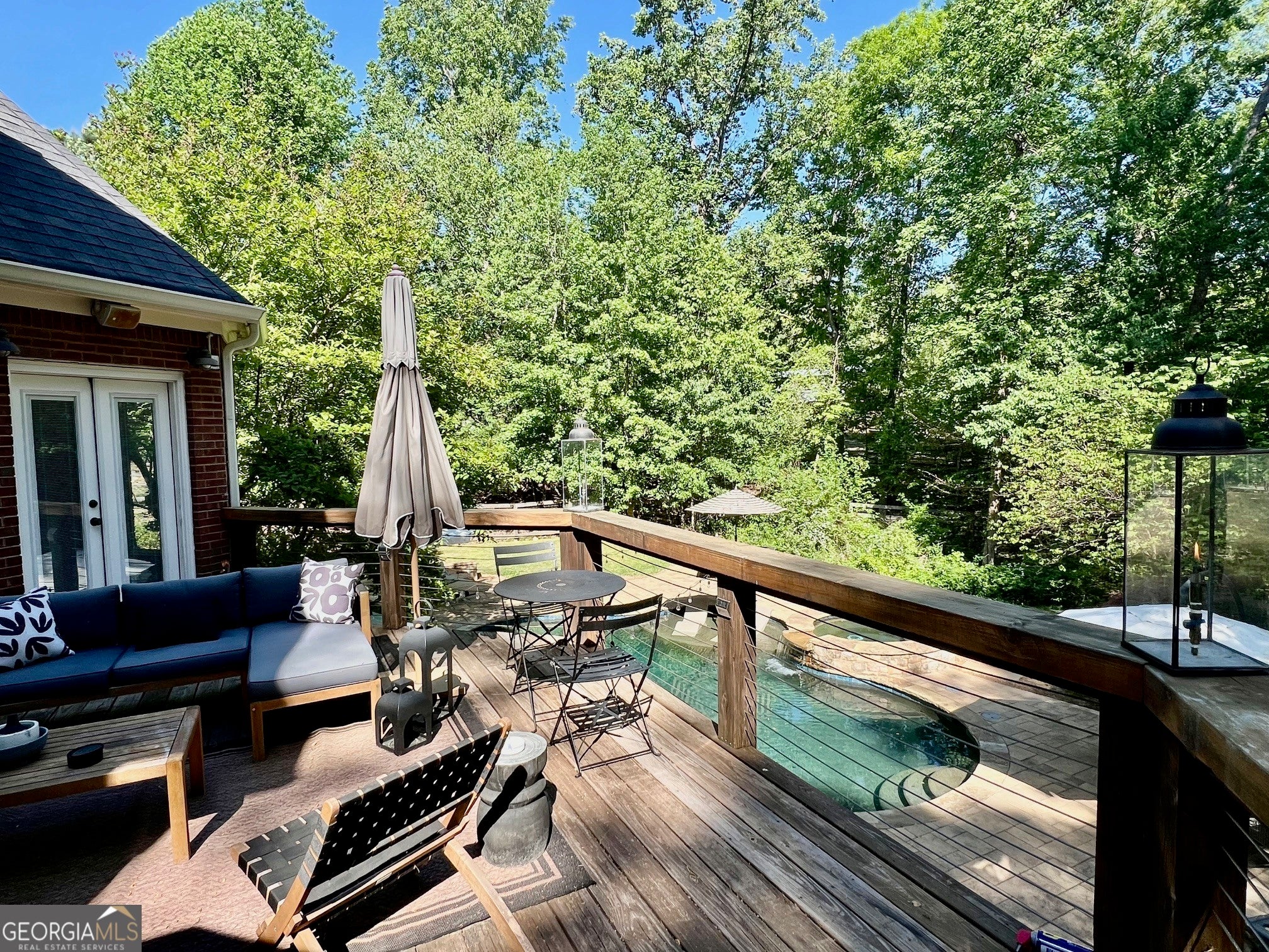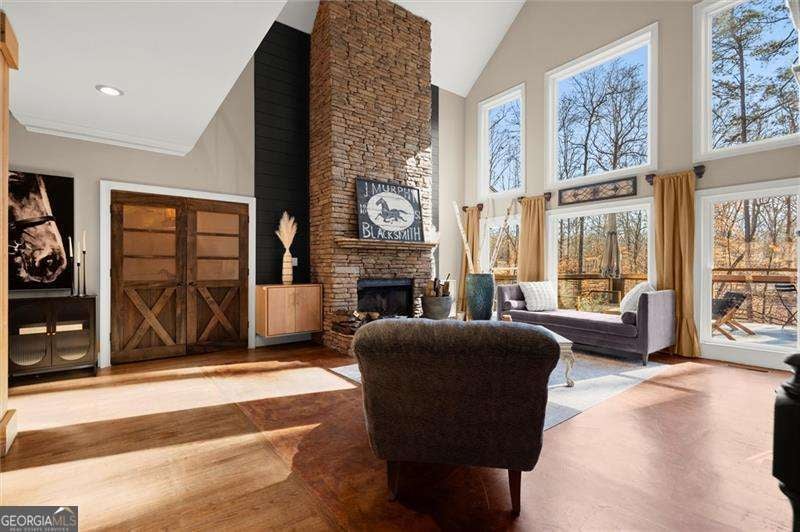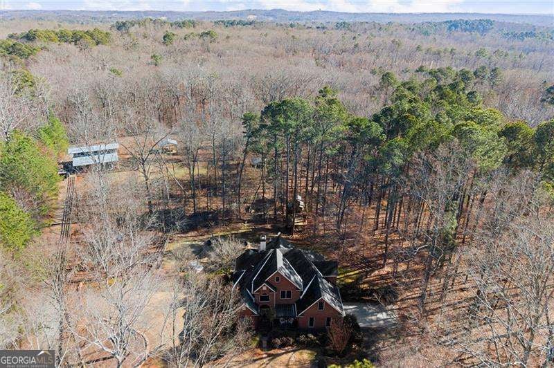 Nestled among mature trees and located just minutes from the Milton line, this stunning, 5 acre, 4 sided brick estate offers exceptional privacy on one of the most exclusive streets in Canton. From the moment you arrive at the impressive custom, African wood double doors, you are welcomed into a two-story entryway that opens to the formal dining area with custom posts and hardwood flooring. The soaring two-story family room features a striking stone fireplace and expansive panoramic windows that flood the home with natural light providing serene views of the wooded landscape. The chef's kitchen is ideal for entertaining and everyday living, showcasing granite countertops, double ovens, a butcher block island with gas cooktop, and a breakfast area with panoramic windows. The main-level owner's suite is a true retreat, featuring an updated spa-like bath with dual vanity, tiled steam shower, a gorgeous clawfoot tub, toilet and bidet, plus a spacious walk-in closet that is every owner's dream. The main level laundry room and 1/2 bath complete the main level. Upstairs, three generously sized secondary bedrooms share a guest bath with double sinks and a separate tub/shower combination. Downstairs, the terrace level is perfect for entertaining offering a large granite kitchenette with 2 dishwashers, oversized walk-in pantry, game room, office, gym, and a dedicated home theater. Every area of the home is thoughtfully designed with distinct custom features that add depth, character, and personality. Step outside to the covered lanai overlooking the heated saltwater pool and spa, complete with a fun outdoor bar as well as a fire pit area. Children will love the custom-built treehouse with electricity, adding even more charm to this incredible property. Additional highlights include 2 fenced pastures, a 2 level storage barn and a spacious chicken coop (chickens included!) and an adorable bunny hutch. Recent improvements include 2 BRAND NEW HVAC Systems (a 4 ton unit and 2 ton unit), new granite kitchenette in terrace level, as well as all new windows replaced in 2021. All of this is located within an award-winning school district. This rare gem offers a lifestyle few properties can match-schedule your private tour today!