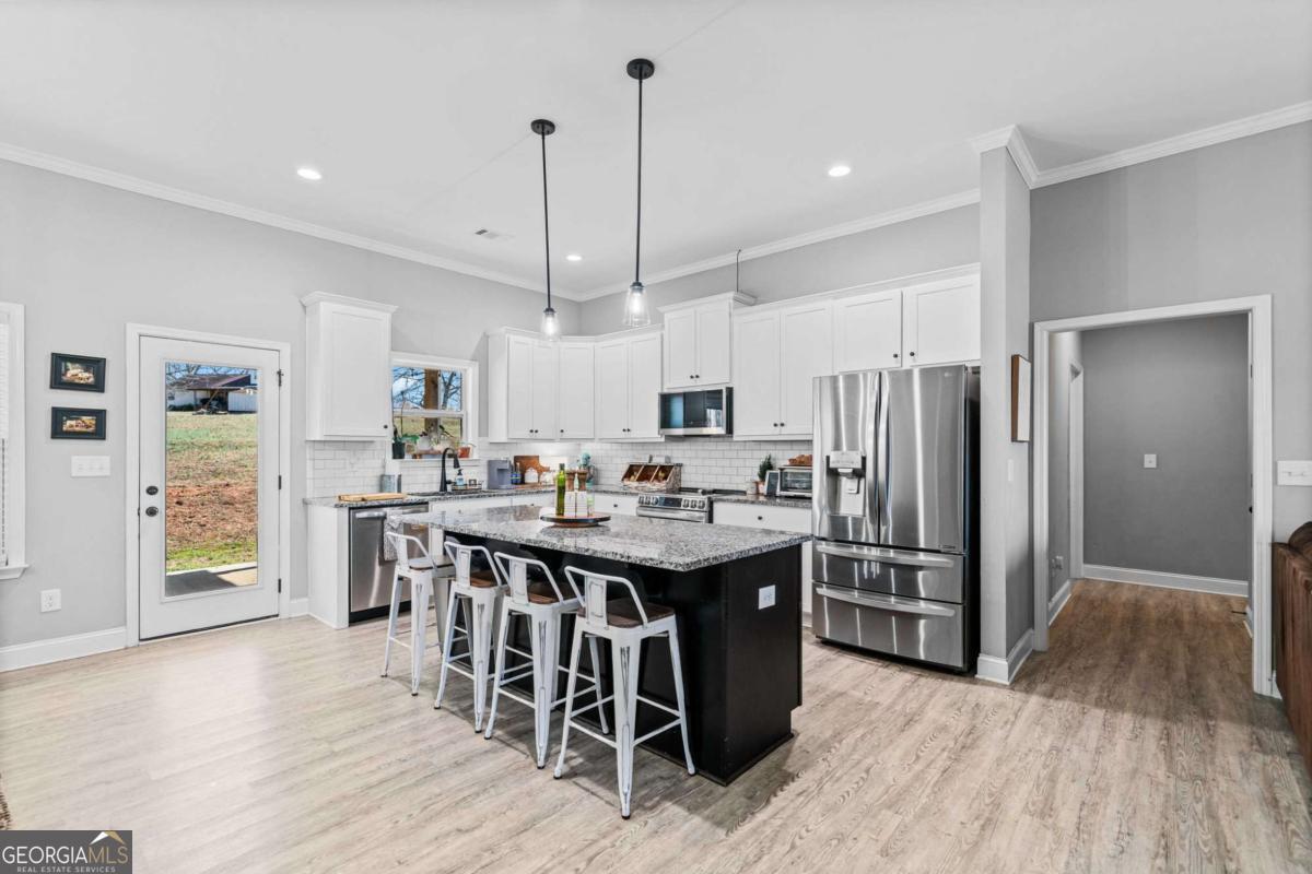 Your dream home awaits! Built in 2021 and meticulously maintained, this like-new 3-bedroom, 2.5-bath Craftsman Ranch offers the perfect blend of modern luxury and peaceful country living. Step inside to a warm and inviting stone fireplace, setting the tone for the open-concept living area and gourmet kitchen. The chef's kitchen boasts an oversized island, gleaming stainless steel appliances, upgraded light fixtures, and a spacious dining area-ideal for hosting family and friends. The primary suite is a true treat featuring a tray-ceiling bedroom, spa-like ensuite bath with double vanities, a tiled stand-up shower, a soaking tub, and a huge walk-in closet with direct access to an oversized laundry room. On the other side of the home, you'll find two amply sized secondary bedrooms with a shared full bath. The covered back porch is the perfect spot for morning coffee or evening gatherings while enjoying the serenity of your expansive 2-acre property. Don't miss out on this rare find-schedule your private tour today! Closing Cost Incentive available with use of Preferred Lender: Shaun Lynch at The One Brokerage.