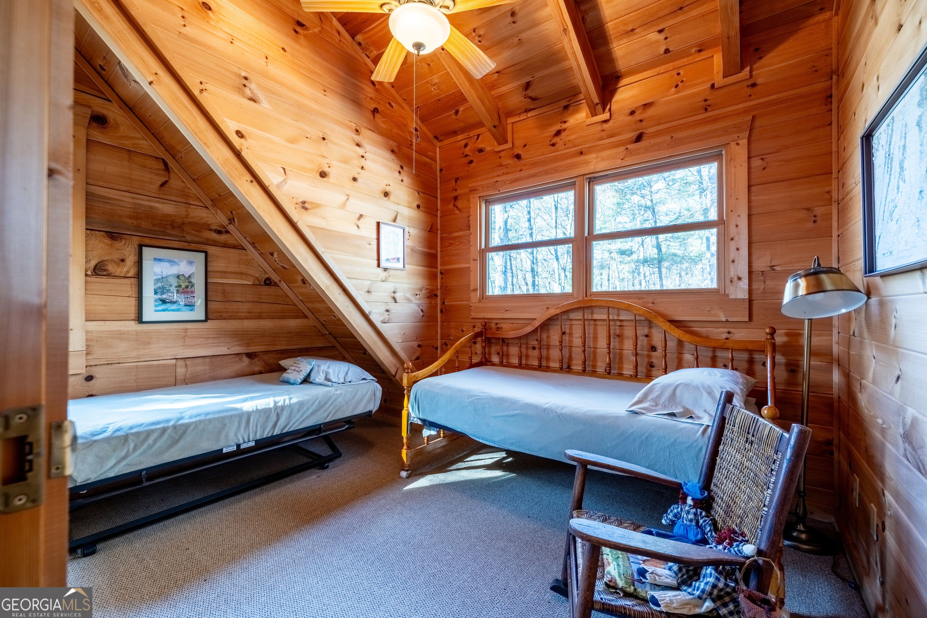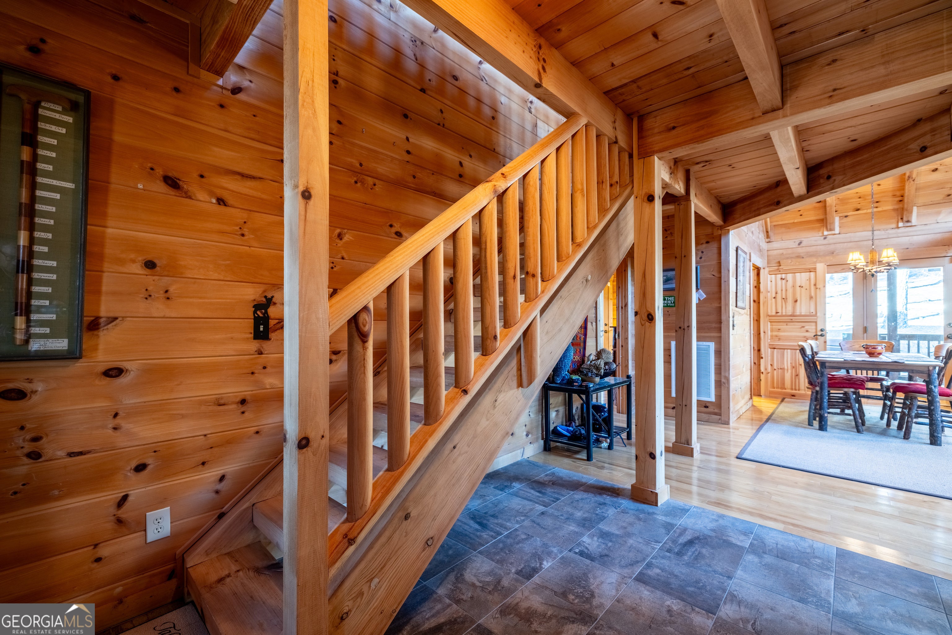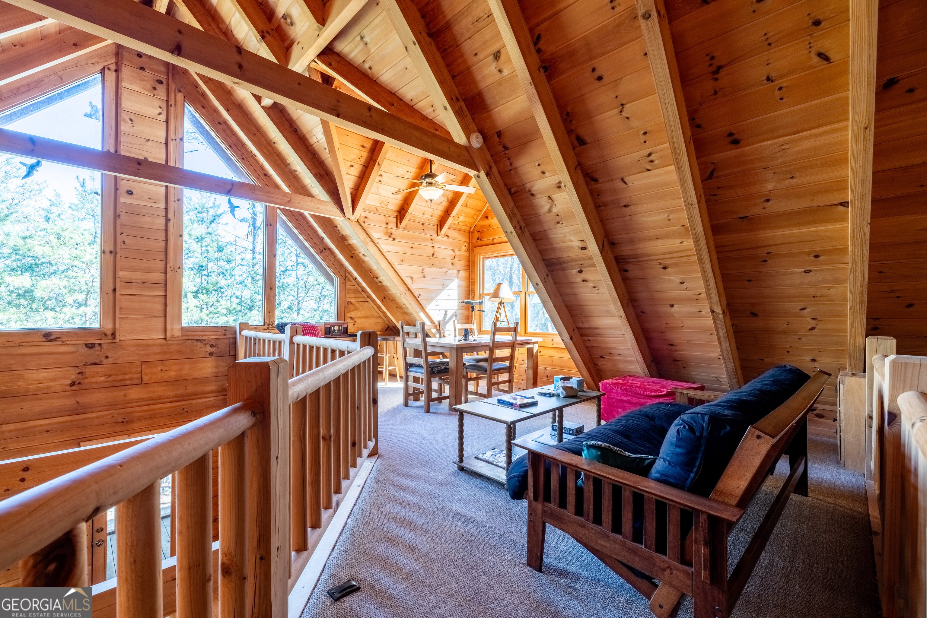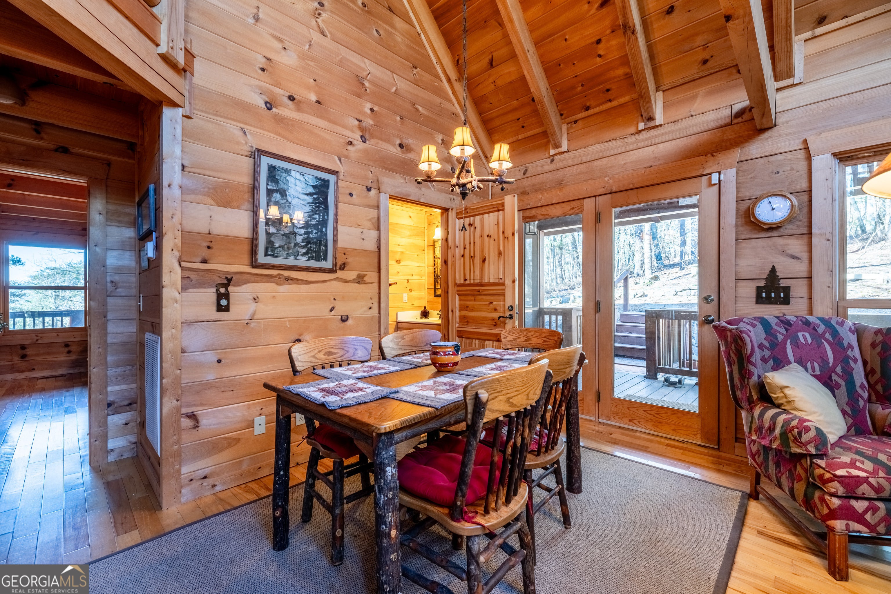 Tucked into the heart of scenic Big Texas Valley on Simms Mountain, this impeccably maintained one-owner log cabin offers a rare combination of privacy, mountain views, and 168 acres of recreational land in Northwest Georgia. Just outside historic downtown Rome and within easy reach of Atlanta and Chattanooga, the property is surrounded by mature hardwoods and pines, with elevation rising to a scenic mountain ridge. The 1,974-square-foot cabin features three bedrooms and two and one-half baths, vaulted wood ceilings, abundant natural light, maple hardwood floors and a warm, rustic interior centered around a custom rock fireplace. A country kitchen with solid surface countertops opens to the great room and wraparound porches, both open and screened-in, creating seamless indoor-outdoor living. The main-level primary suite, kitchen and great room offer direct access to the screened-in porches, while a loft overlooking the great room serves as a game and gathering space with two additional bedrooms and bath upstairs. Carefully planned walking and ATV trails lead through the property to the mountain ridge and a covered 3-sided elevated structure, ideal for camping or deer and turkey hunting. Multiple structures provide storage and support for recreational and land management needs. The cabin is positioned on a private 2.12-acre homesite within the larger tract, offering sweeping forest and mountain views with no visible neighbors and the peaceful sounds of nature. Furnishings and lawn/garden equipment remain with the property as well as a recreational vehicle and kayak. This property includes 4 parcels: 3 parcels in Floyd County - cabin and 73.3 acres and 1 parcel in Chattooga County - 95 acres. Located just 4 miles from the 5,000-acre Rocky Mountain Recreation Park with 3 lakes known for fishing and ample hunting opportunities within the Chattahoochee National Forest. This turnkey mountain property is perfectly suited for a private family getaway, hunting and outdoor recreation, or a primary residence.