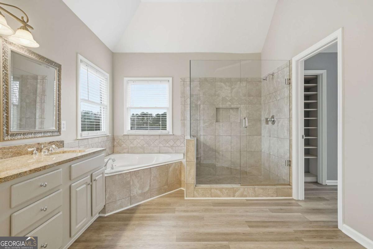 Don't miss the opportunity to own this gem in Towne Lake Hills East! This impressive 5-bedroom, 4-full bath pool home is bound to leave a lasting impression! Nestled off a cul-de-sac street within the back of the neighborhood, this residence provides a serene escape while maintaining convenient access to both the front and back entrances. Upon arrival, you'll appreciate the ample parking, enhanced by a second driveway that offers significant additional parking space. Inside, the home greets you with a bright, updated floor plan that includes a fully finished basement. The main level features hardwoods, a bedroom with a full updated bathroom, an office area, a dedicated dining space, a gourmet kitchen that has been updated, a breakfast room, and a family room that opens to a charming screened-in porch overlooking the pool. The pool/hot tub combination boasts a new pebble tec finish, new pool tile and is saltwater. Surrounding the pool is a stunning flagstone patio, ideal for sunbathing, along with the added convenience of a boat garage for toys and pool equipment. The Trex decking adjacent to the kitchen, the beautiful pool area, the fenced yard, and the terrace-level patio create perfect venues for entertaining friends and family. Upstairs, the owner's suite offers a true sanctuary, featuring a sitting area filled with natural light, a large ensuite bathroom, and two additional bedrooms with a full updated bathroom. The finished basement expands the living space, providing a large recreational area suitable for a pool table or ping-pong table, a media room with a wet bar, and a bedroom with a full bathroom. Towne Lake Hills East is a well-planned community that includes a golf course, an active tennis program, a park, a restaurant, and is conveniently located near local schools, shopping, greenway trails, and Lake Allatoona. Hurry, don't delay in exploring this beautiful property and discover what makes it truly exceptional!