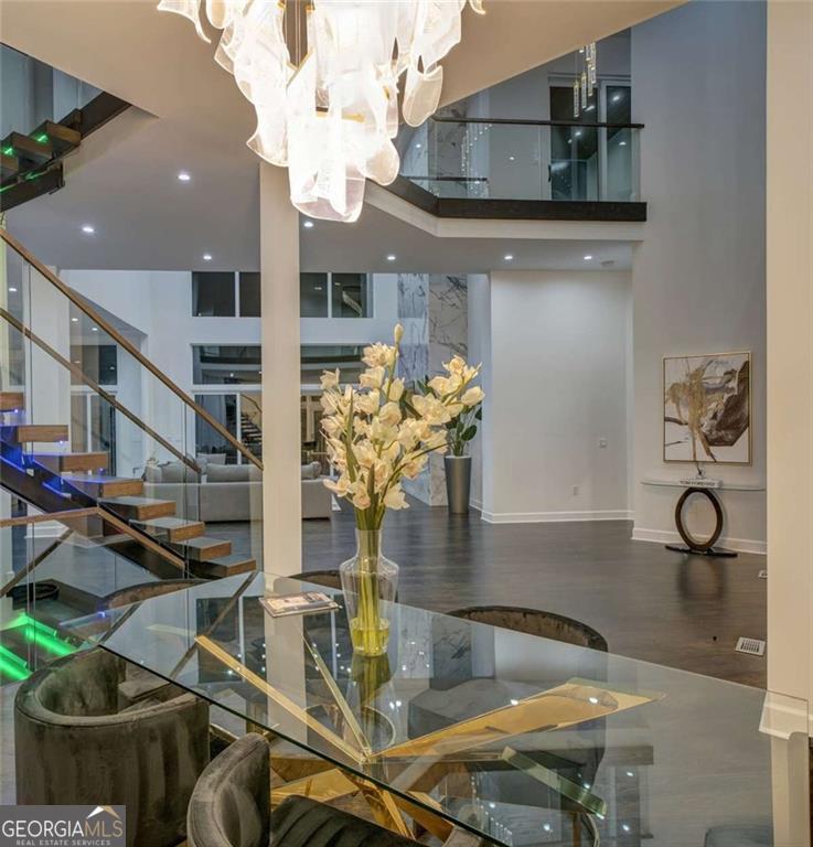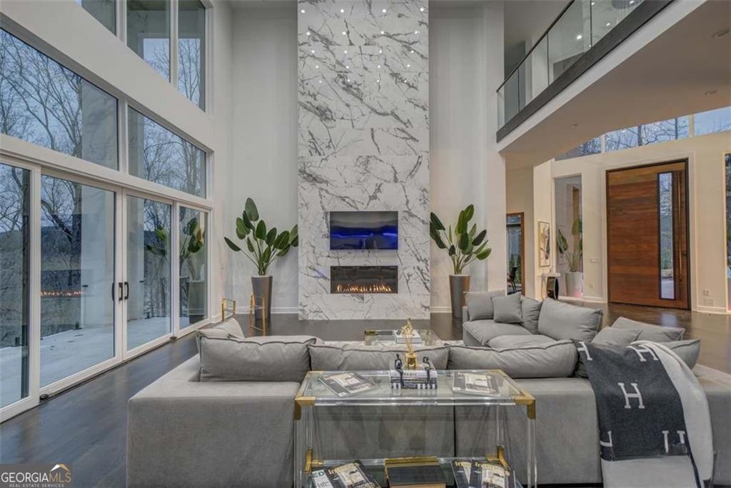 Modern Luxury Lifestyle Living on the Chattahoochee River boasting breathtaking views, this newly constructed, exquisite residence features large, floor-to-ceiling windows that showcase the river's beauty from nearly every room. The home's sleek, sophisticated design combines innovative craftsmanship with tasteful elegance-from the 15-foot pivoting front door to the impressive three-level floating staircase. The exterior of this one-of-a-kind property is adorned with Japanese Nichiha fiber cement siding, fire rock exterior steps, and Pella windows and sliding doors. The oversized three-car garage offers ample space, making this home both stylish and practical. The open-concept layout is perfect for modern living and entertaining, with a state-of-the-art security and entertainment system, plus a Cibes A-5000 air elevator with an EcoSilent drive system. Inside, you'll enjoy European soundproof interior doors, soft-close cabinets in the top-of-the-line kitchen, stone-topped countertops, and premium appliances, including a Sub-Zero climate-controlled wine refrigerator, extra-large Sub-Zero refrigerator with stack kits, Wolf double ovens, microwave drawer, and Sub-Zero/Cove dishwasher. All nine bathrooms feature Wi-Fi and humidity-controlled fogless mirrors, while the luxurious primary bath includes a multi-head, full-body shower. For ultimate relaxation, enjoy the home gym, followed by a session in the Wi-Fi-enabled Sauna logic dry sauna or the aromatherapy steam spa shower. The family room is anchored by a majestic, all-marble fireplace that reaches from floor to ceiling, perfect for cozy evenings watching the sunset over the river. Over 9,000 square feet of living space, a finished terrace level complete with a surround-sound home theater, three expansive balconies, and an infinity-edge pool with a hot tub, this home is an entertainer's dream. Ideally located just minutes from fine dining, upscale shopping, and with easy access to downtown Atlanta, this breathtaking, spacious residence has already been appraised, allowing you to benefit from its exceptional value.