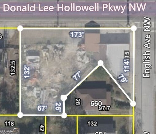 This prime 0.40-acre parcel is a corner lot, zoned C2, that offers significant development potential with approximately 173 feet of frontage on Donald Lee Hollowell Parkway and 114 feet of frontage on English Avenue. The property includes a fenced brick building; however, the structure is deemed to hold no contributory value, making the land ideal for redevelopment. This high-visibility location presents an excellent opportunity for commercial ventures. IMPORTANT NOTE: The owner has a court appointed Personal Representative that has never occupied the property, therefore, the Seller does not know specifics about property conditions, hazards, or needs. The land and any improvements are being sold in "as is" condition. This MLS includes Seller Required Special Stipulations. The Seller Required Special Stipulations page must be included in all offers. Submit offers to the listing agent in pdf format only, so that your offer can be forwarded to the Personal Representative for consideration. The Personal Representative says we can close without delay with an accepted offer.