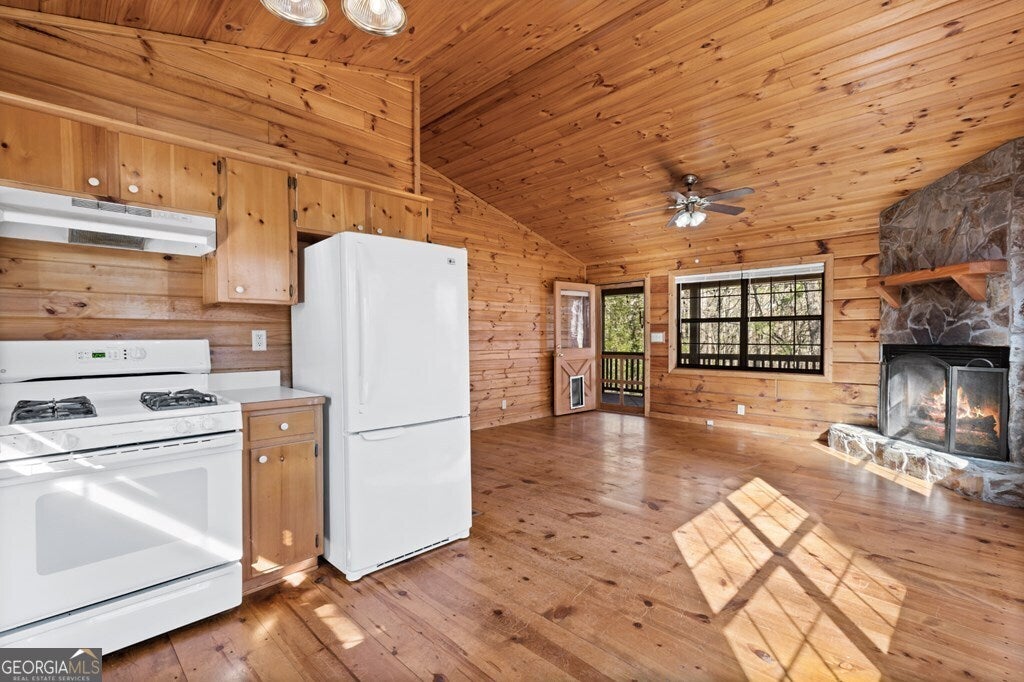 ALL YOU NEEDthis affordable and beautifully newly stained 2-bedroom, 1-bath cabin is the perfect mountain retreat. Featuring wide-plank floors and a vented gas log fireplace (can be converted to wood burning), it offers warm cabin charm with everyday comfort. Conveniently located between Ellijay and Blue Ridge, you'll enjoy easy access to dining, shopping, and outdoor adventures. Take in peaceful seasonal mountain views and explore the nearby hiking trails and small lakes that make Cherry Lake so special. An added bonus is the ample crawlspace storage-ideal for stowing all your outdoor gear and mountain toys. Nestled in the desirable Cherry Lake community in Cherry Log, this affordable property is your gateway to relaxed mountain living.
