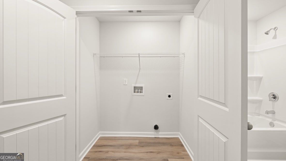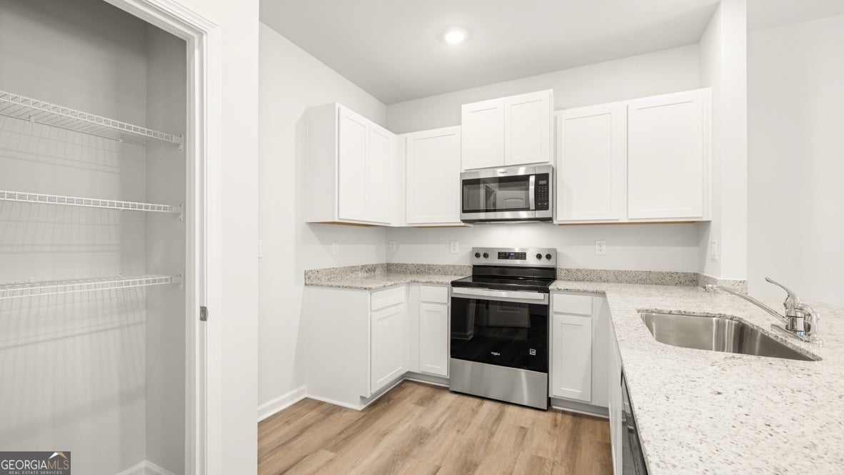 Welcome to 2012 Roseleigh Drive in Douglasville, GA. The Pearson II two-story plan features 3 bedrooms and 2.5 bathrooms in 1,508 square feet along with a 1-car garage. As you step off the front porch, a long foyer welcomes you and leads you into the main living area as you pass by a half bathroom in the front hallway. The large living room is the perfect space for family and friends to gather or for a quiet night with a movie or book. Enjoy easy access to the back patio where you can relax with coffee in the mornings. The living room flows seamlessly into the contemporary designed kitchen with an attached island, white cabinets, and granite countertops. Homeowners will appreciate the durable, laminate wood flooring throughout the main level, that is perfect for any active household. Up the stairs you'll turn from the landing into the primary suite. A spacious bedroom is complimented by the en suite bathroom featuring a granite topped, dual vanity and roomy walk-in closet. Across the landing you'll be led into one of the two additional bedrooms, both with walk-in closets. The laundry room and an additional bathroom round out the upper floor. Call us at Roseleigh Park today to see the Pearson II at 2012 Roseleigh Drive in Douglasville, GA in person! By Appointment Only Mondays & Tuesdays. NOT ACTUAL HOME. Sample same plan and elevation. Interior photos are from model home of same plan.