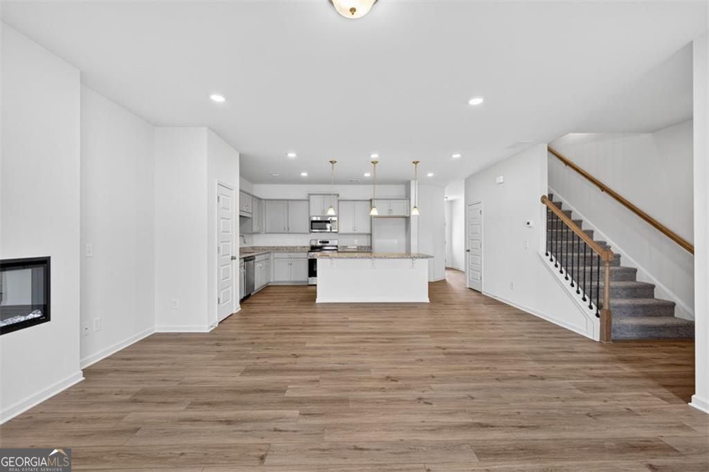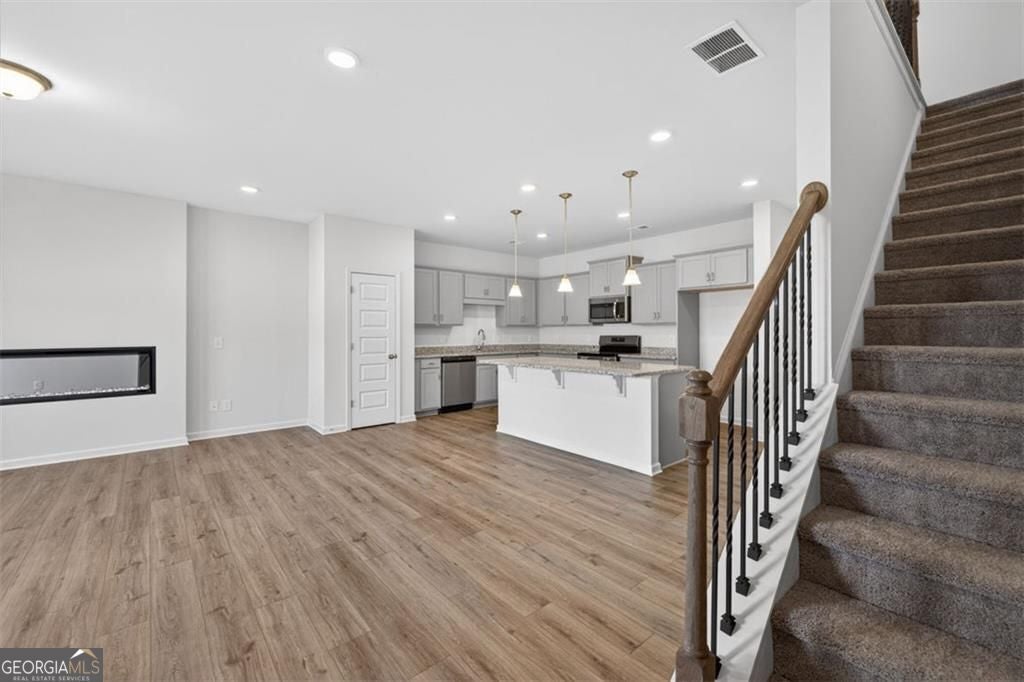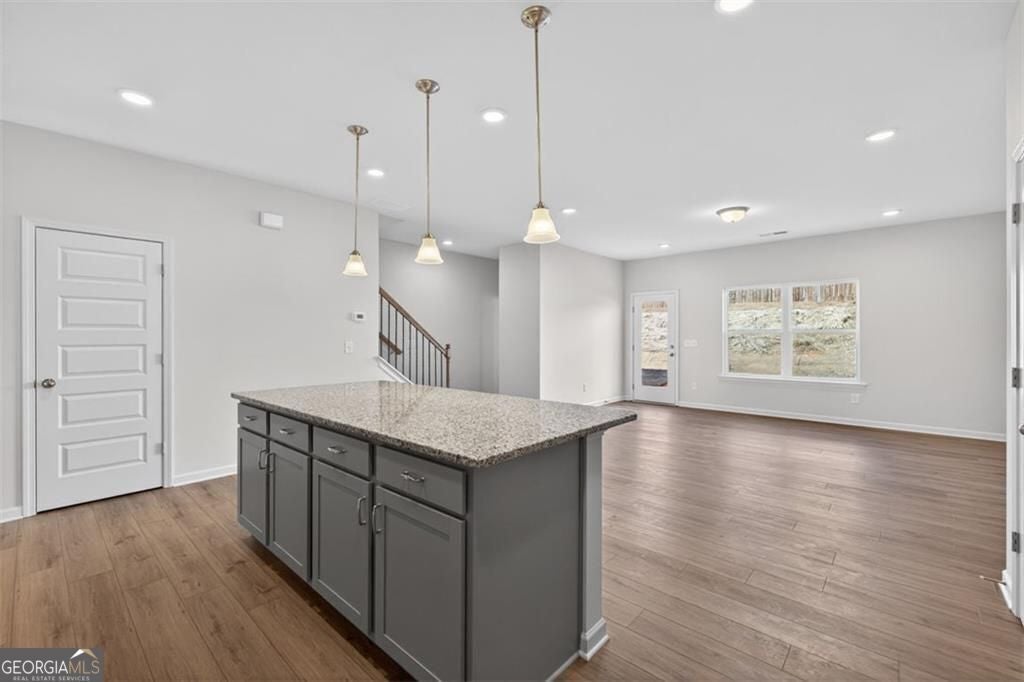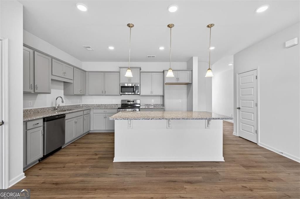 Move in Ready! The Ellison II plan by Smith Douglas Homes, located in the highly sought-after Townes At The Stiles community in Cartersville, GA. Welcome home to the beautifully designed move-in ready new construction townhome offering the perfect combination of modern style, open-concept living, and low-maintenance convenience-ideal for today's lifestyle. Step inside and experience a stunning loft-inspired layout created for effortless entertaining and everyday comfort. The spacious open-concept kitchen is truly the heart of the home, featuring upgraded Stone Gray cabinetry, elegant Luna Pearl granite countertops, and stylish pendant lighting that highlights the oversized island with seating for four. Whether hosting friends, enjoying casual meals, or preparing family favorites, this kitchen delivers both beauty and function. The airy main living space flows seamlessly from kitchen to dining and family room, enhanced by an impressive open iron rail staircase that adds a modern architectural touch. Upstairs, enjoy 9-foot ceilings throughout the second floor, creating a bright and spacious feel in every room.etreat to the luxurious primary suite, complete with a tray ceiling, spa-like bath with a tiled shower, and a huge walk-in closet offering abundant storage. Two additional secondary bedrooms provide flexibility for guests, a home office, or growing households. A conveniently located upstairs laundry room adds everyday ease. Residents of Townes At The Stiles enjoy access to a wonderful swim community lifestyle, perfect for summer relaxation and neighborhood fun. Plus, HOA-included lawn maintenance means you can spend more time enjoying your home and less time on upkeep-true low-maintenance townhome living. Seller incentives available with the use of a preferred lender. Photos of the home available.