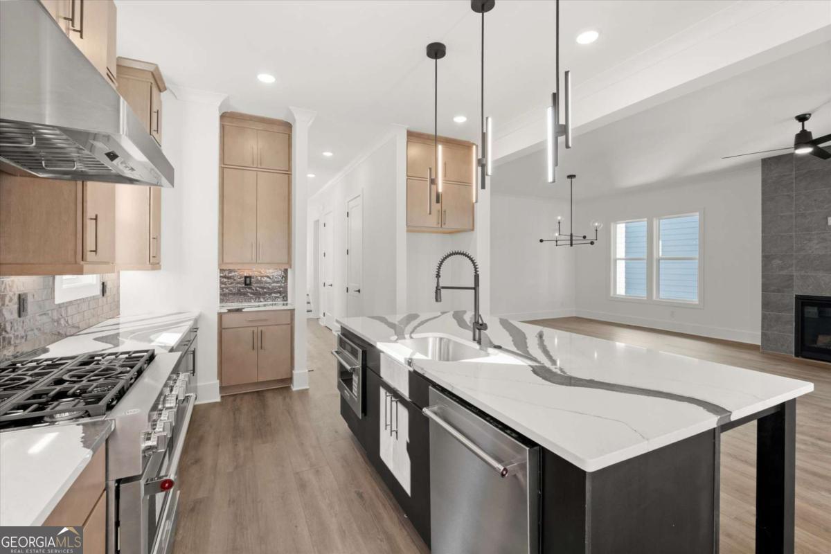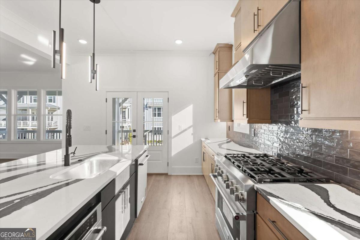 New BeltLine extension just opened and right out your front door! One of the last 3 single-family homes available in this area! The Mya Plan by Brock Built Homes delivers modern design, natural light, and walkable city living in the heart of West Midtown's West Town community-just steps from the Atlanta BeltLine and minutes from top restaurants and shops. Situated on a corner lot with BeltLine views, this move-in-ready home features 5 bedrooms, 4 baths, and 3 levels of living space. The exterior showcases a covered front porch, 8-foot double entry doors, and professional landscaping that make a great first impression. Inside, enjoy hardwood floors throughout, 9-10 ft ceilings, and oversized windows that fill the home with light. The entry level offers a guest suite with private bath, perfect for visitors or a home office. The second level is built for entertaining, featuring a chef's kitchen with quartz countertops, ceiling-height cabinetry, premium KitchenAid appliances, and a large island overlooking the open dining and family room. Relax by the fireplace or step out to the oversized deck with city views. Upstairs, the primary suite offers tray ceilings, a spa-style bath with frameless glass shower, dual quartz vanities, and treetop views. Two additional bedrooms share a Jack-and-Jill bath with a double vanity and separate shower. This home is elevator-ready for future convenience and long-term ease. Live steps from the new BeltLine extension in one of the most desirable West Midtown locations. Schedule your tour today and experience Brock Built's signature craftsmanship and urban style.