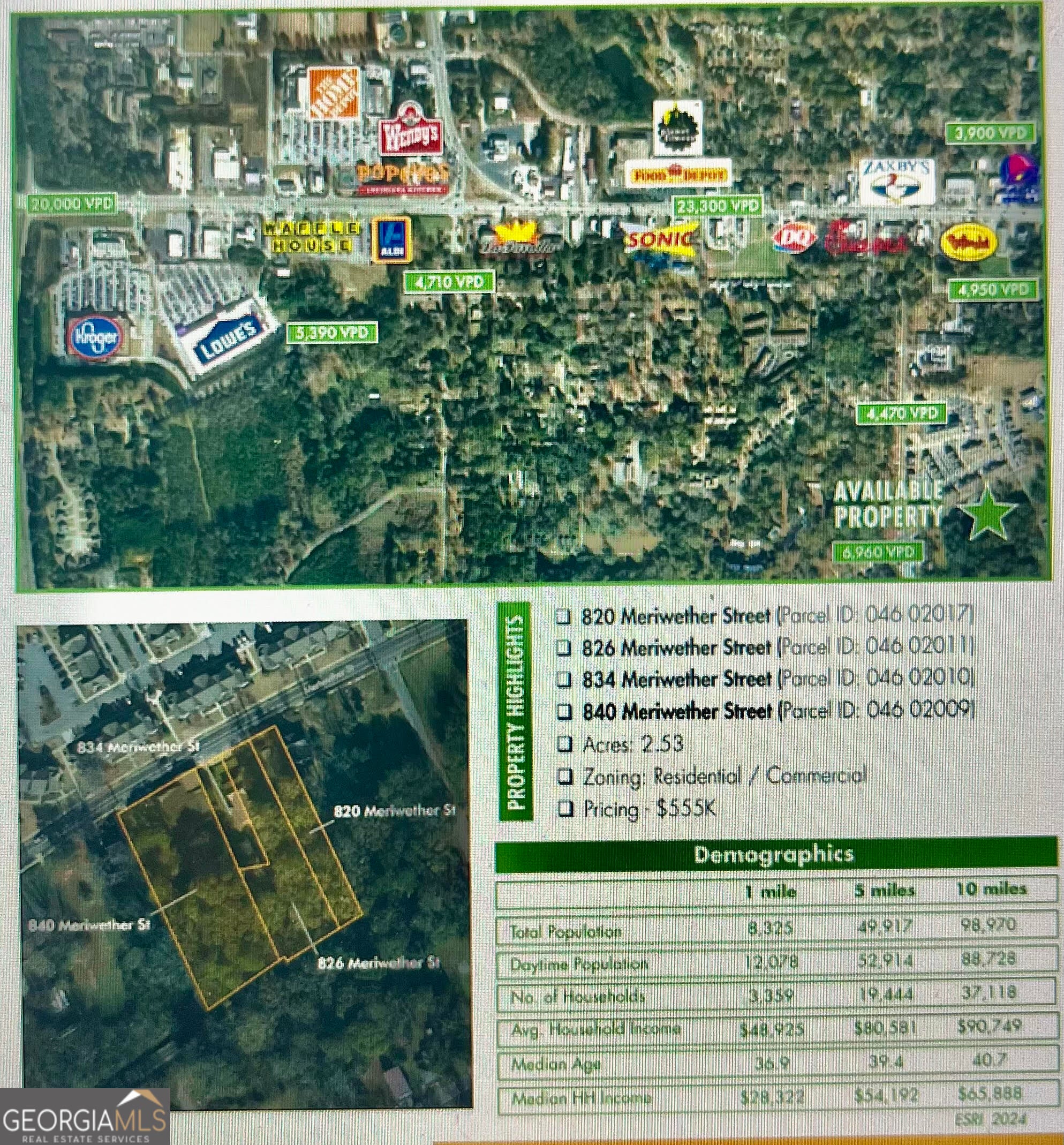 PRIME COMMERCIAL LOTS WITH 2.53 ACRES ON HIGH TRAFFIC STREET AND HIGH VISIBILTY. ALL UTUILITES ARE AVAILABE. OWNERS HAVE REMOVED OLD HOUSES AND STRUCTURES OFF THE PROPERTY AND HAS BEEN MOSTLY CLEARED READY TO BUILD. ZONED C-3. JUST PASS THE HISTORICAL BAILEY TEBAULT HOUSE, SALVATION ARMY HEADQUEATERS AND NEWLY BUILT APARTMENT COMPLEX AND OTHER BUSINESSES. GREAT LOCATION FOR SERVICE STATION, LIQUOR STORE, SMALL BUSINESS OR IF APPOVED THIS LOT WOULD BE GREAT FOR DUPLEXS OR MULTI FAMILY USE. MANY OPTIONS. CONVENIENT TO DOWNTOWN GRIFFIN AND 19/41. ALL 4 LOTS MUST BE SOLD TOGETHER.