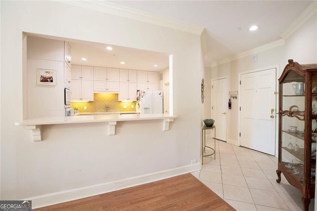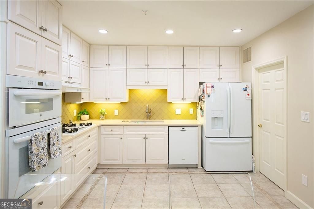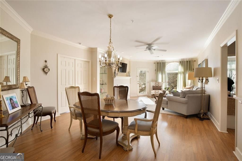 A main-level corner unit in the sought-after, gated community of Brooke Ridge, this residence is a rare opportunity to enjoy privacy and convenience just minutes from the shopping, dining, and charm of Dunwoody Village. Thoughtfully designed, the home offers 2 bedrooms, 2 full bathrooms, and a spacious living and dining area that is both functional and inviting. Step through your private entry into a welcoming living room featuring a cozy gas fireplace and access to an expansive private deck, perfect for relaxing or entertaining. The open living and dining area provides an ideal setting for hosting friends and family. The chef's kitchen is well-appointed with a gas cooktop, abundant cabinetry and storage, tile backsplash, and a convenient breakfast bar. A desirable split-bedroom floor plan ensures privacy for all. The guest suite features a full bath and closet, while the oversized owner's retreat is a true sanctuary, complete with its own private deck, generous closet space, and a spa-like bathroom with walk-in tile shower, soaking tub, and dual vanities. Additional highlights include hardwood floors throughout, a spacious laundry room, and a well-maintained, move-in-ready condition. Residents of Brooke Ridge enjoy resort-style amenities, including a community pool, tennis courts, and pickleball, all within a beautifully landscaped, gated setting. A rare blend of privacy, comfort, and convenience, this home is a standout offering in one of Dunwoody's most desirable communities.